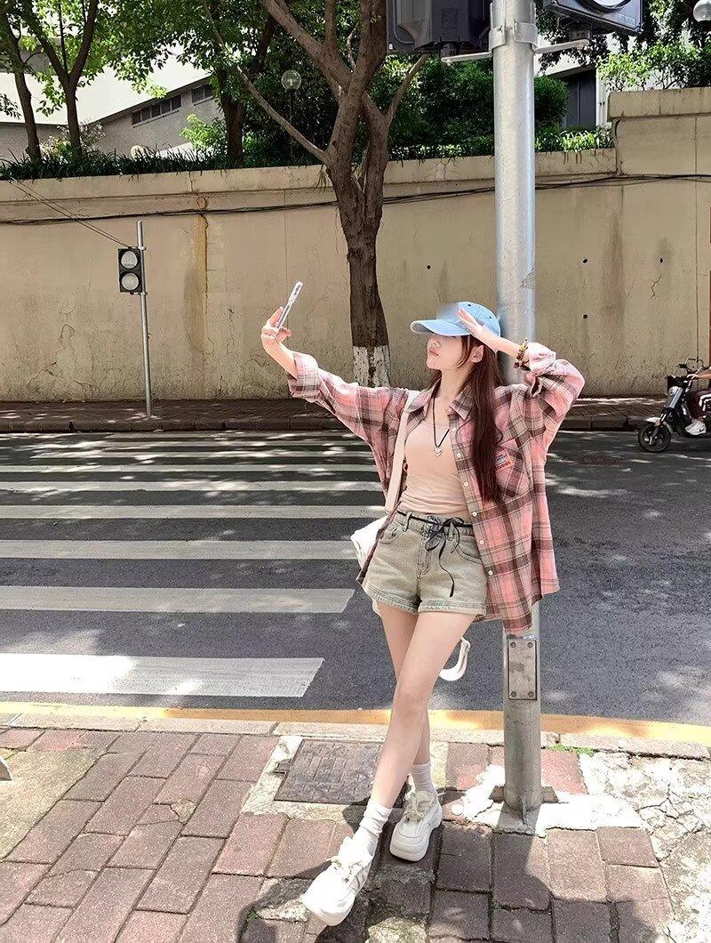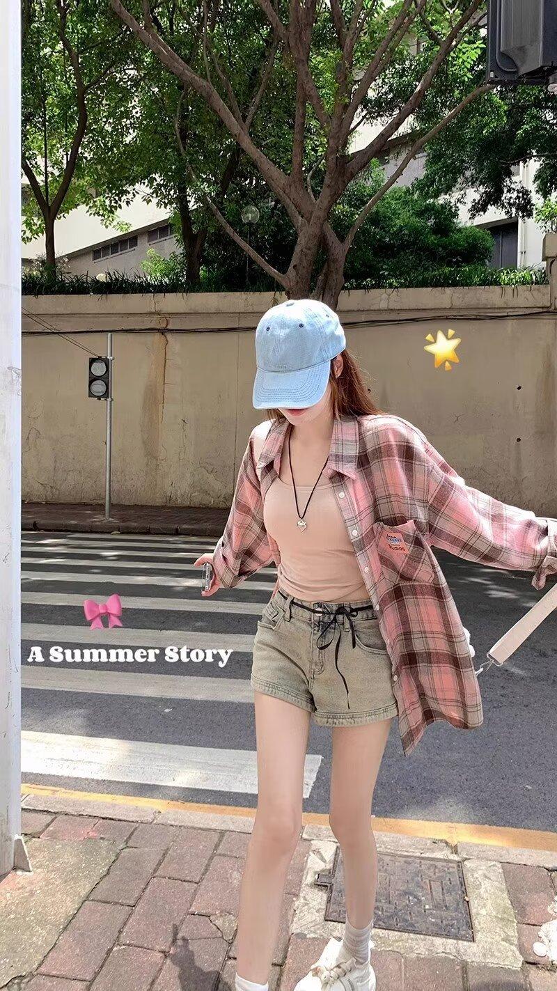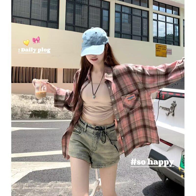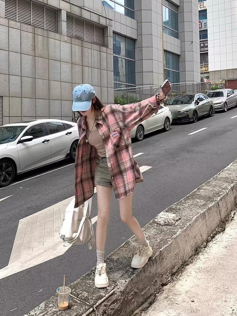Camisa a cuadros de manga larga para primavera y otoño, cárdigan de moda, camisa informal holgada, abrigo que combina con todo, protector solar, ropa exterior.