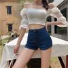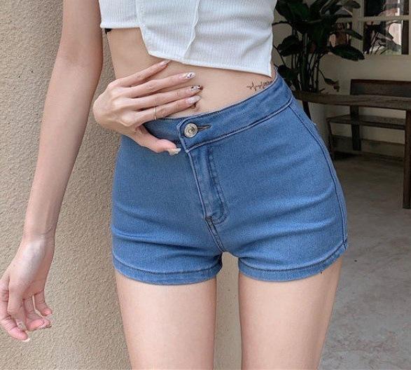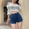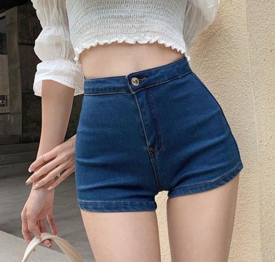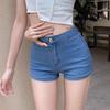 Shorts de mezclilla sexys de cadera melocotón de tiro bajo europeos y americanos para mujer en verano, Versátiles, con aspecto adelgazante, pantalones cortos azules ajustados a la cadera