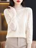 Primavera y Verano Nuevo Hueco Bordado Cuello Medio Alto Camisa de Gasa Encaje para Mujer Camisa de Punto de Manga Larga Camisa Base de Malla Nicho