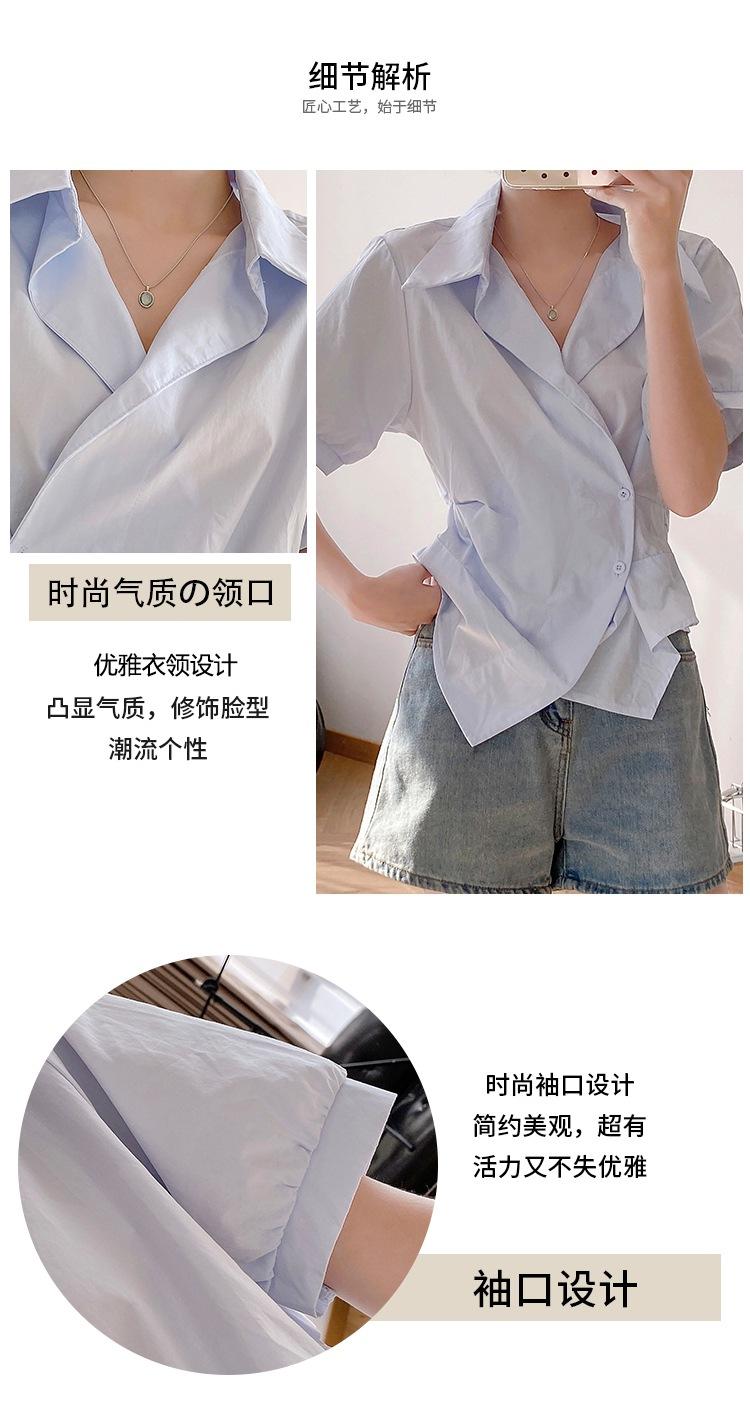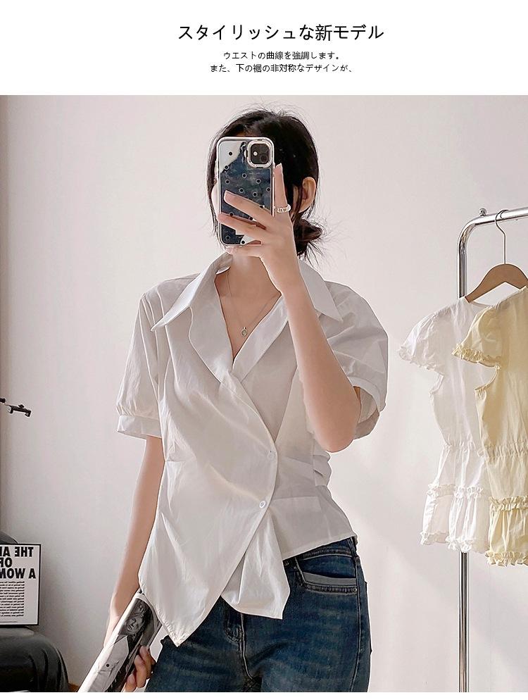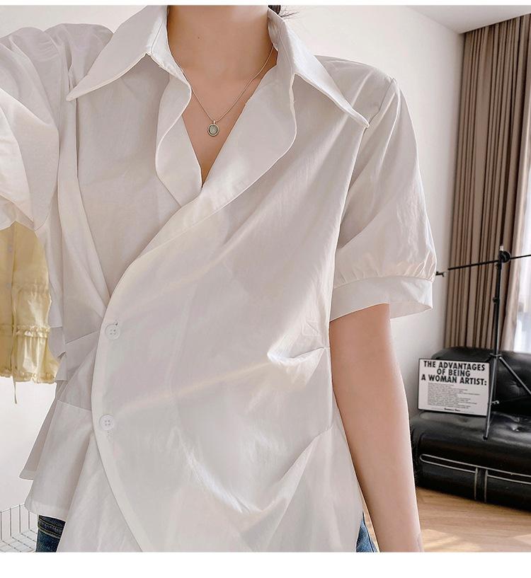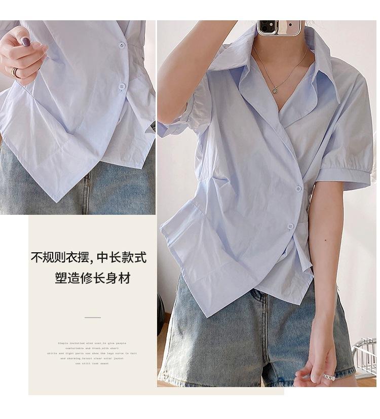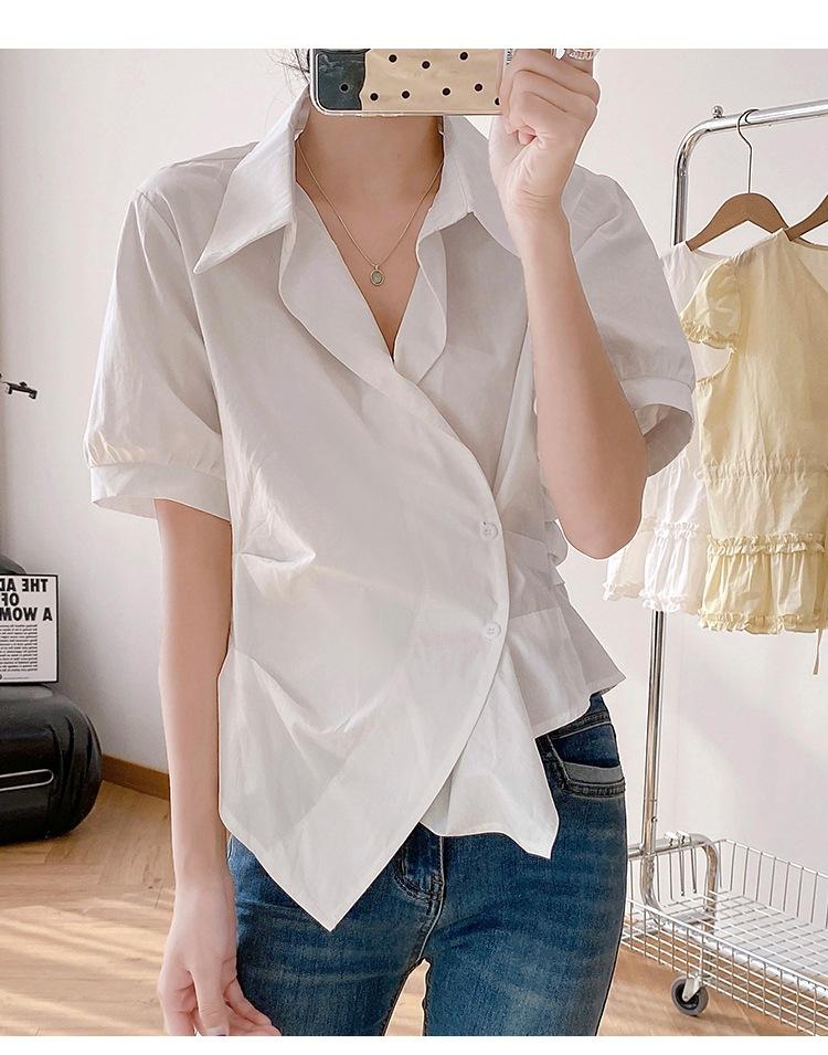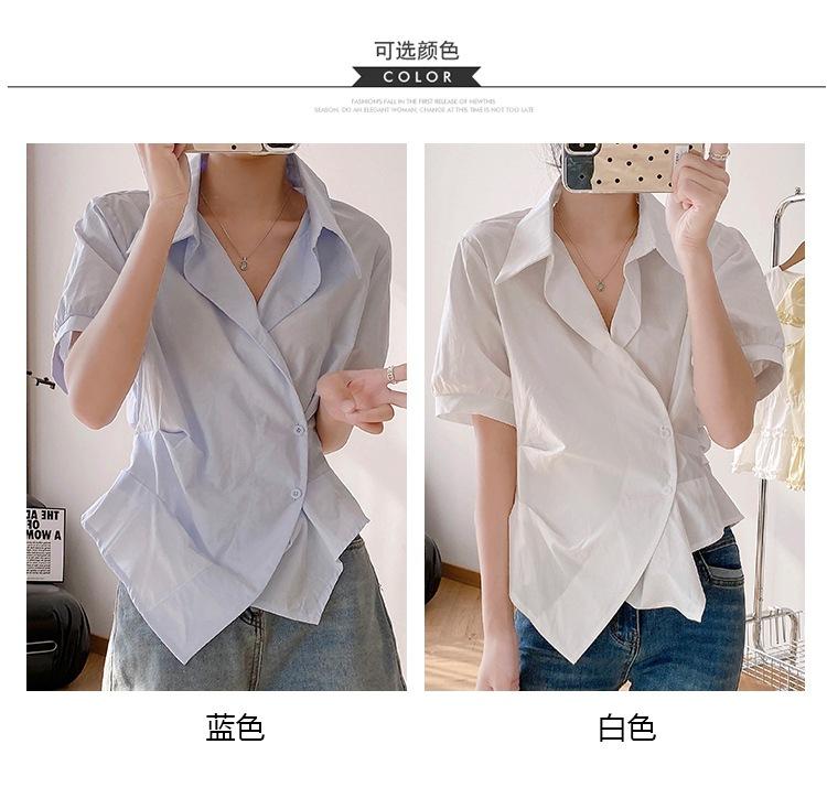 Camisa de manga corta para mujer, elegante, francesa, irregular, con cintura que combina con todo, con nuevo diseño transfronterizo.