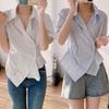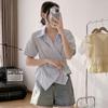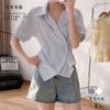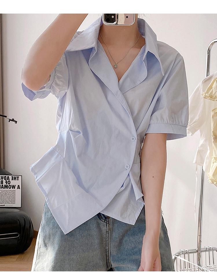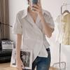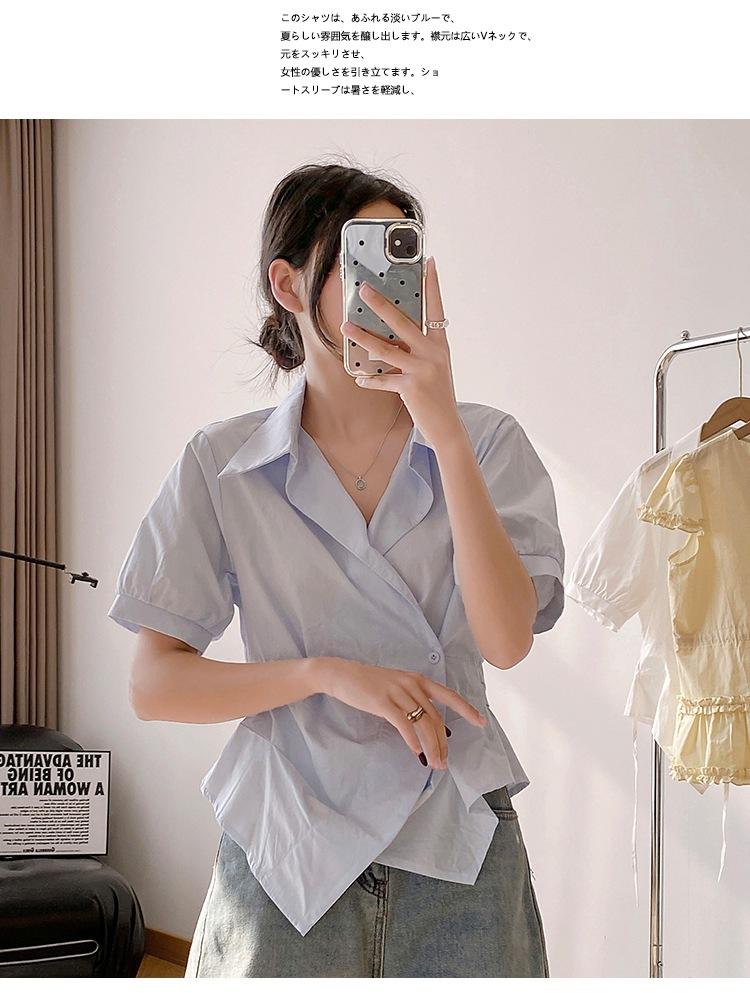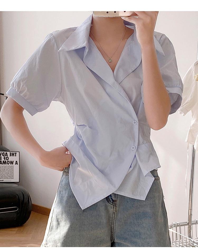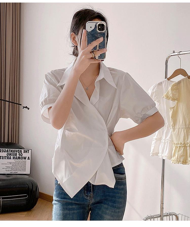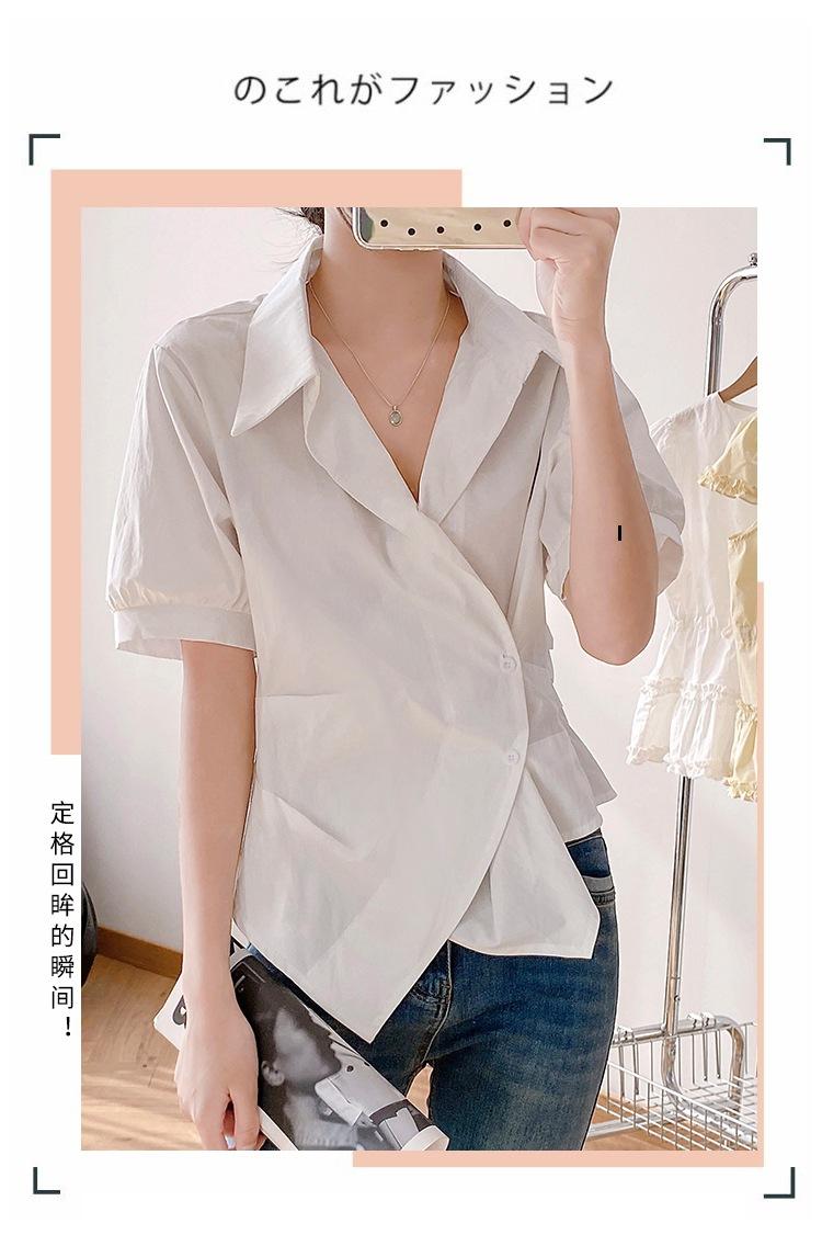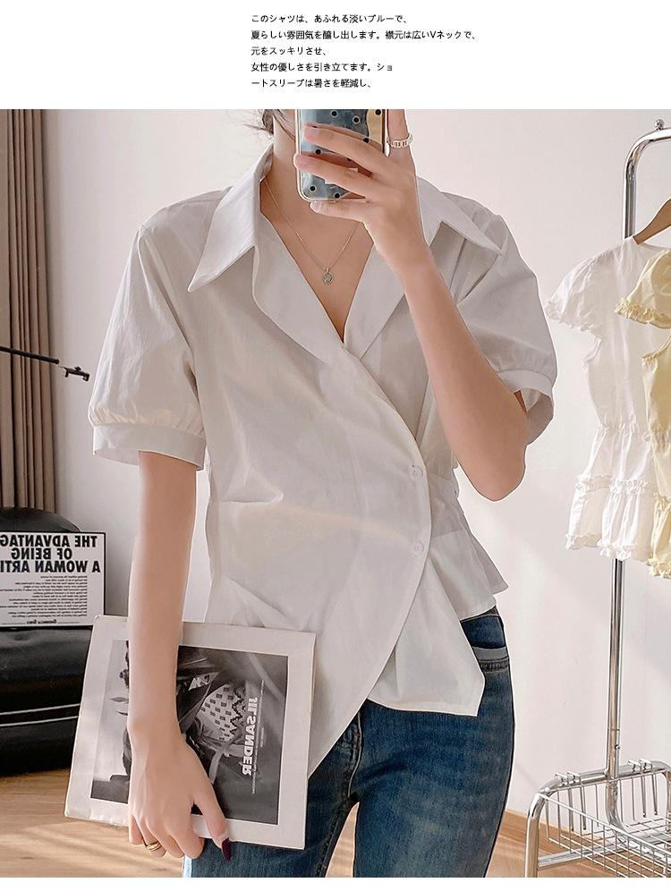 Camisa de manga corta para mujer, elegante, francesa, irregular, con cintura que combina con todo, con nuevo diseño transfronterizo.