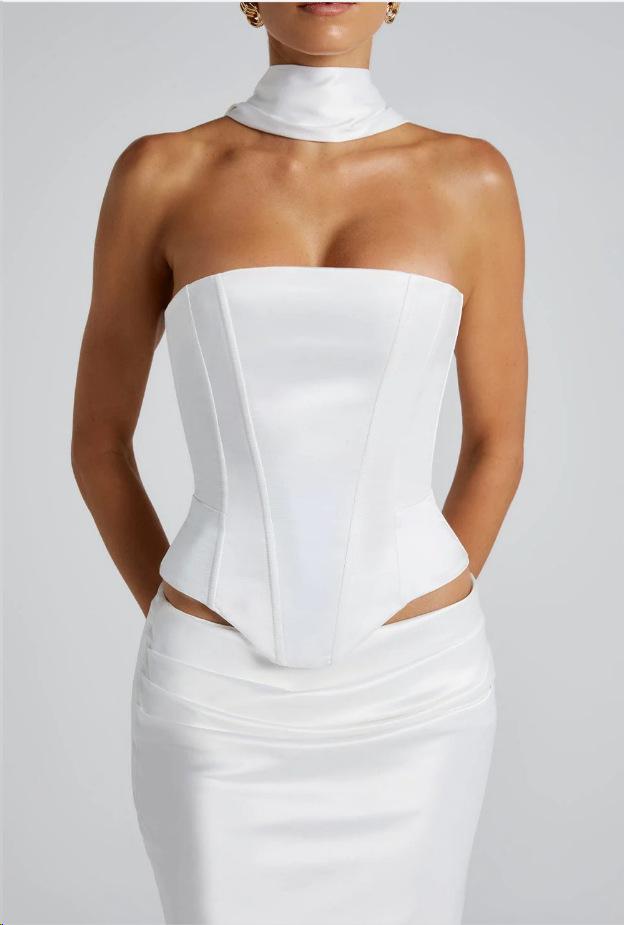 Vestido sexy sin mangas sin tirantes con espalda descubierta y diseño de espiga para mujer, primavera y verano 2025, nuevo vestido largo ajustado de color liso.