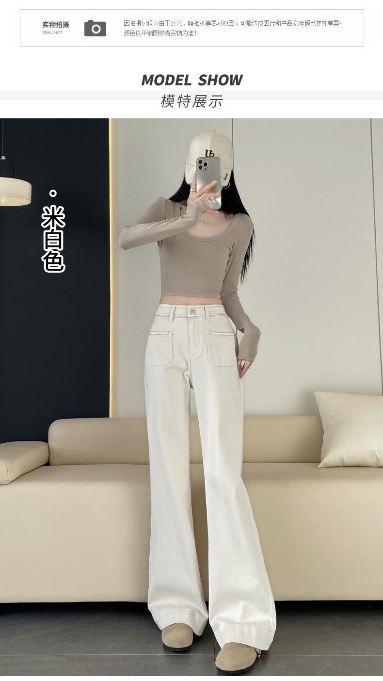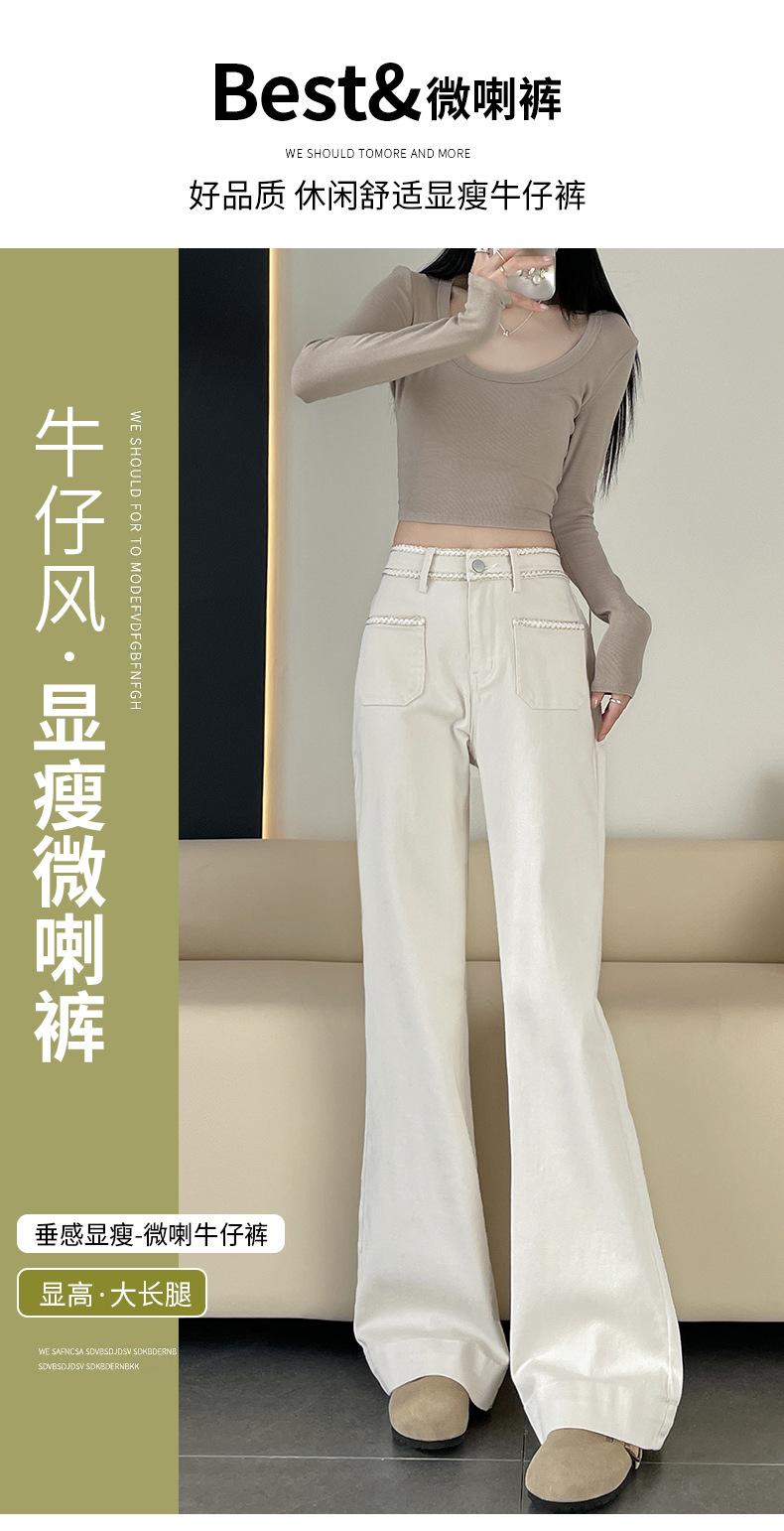 Jeans Primavera Mujer 2025 Cintura Alta Corte Slim Casual Pantalones Micro Acampanados Blancos Moda Jeans Rectos A3017