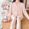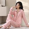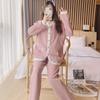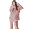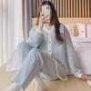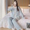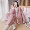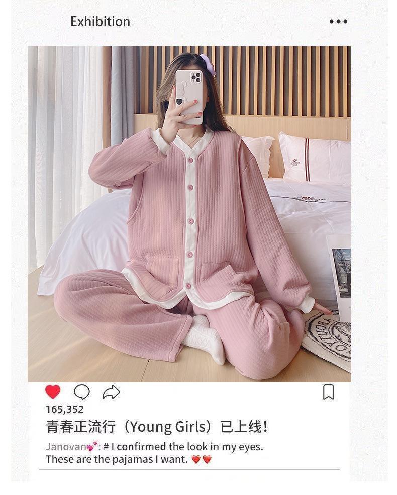 Pijama de algodón de tres capas para embarazadas, de invierno, cálido, con cuello en V, estilo sándwich, estilo sándwich, para lactancia y posparto.