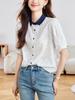 Camiseta de manga corta ajustada para mujer, estilo coreano, con bordado de mariposa hueca y diseño de nicho Minute
