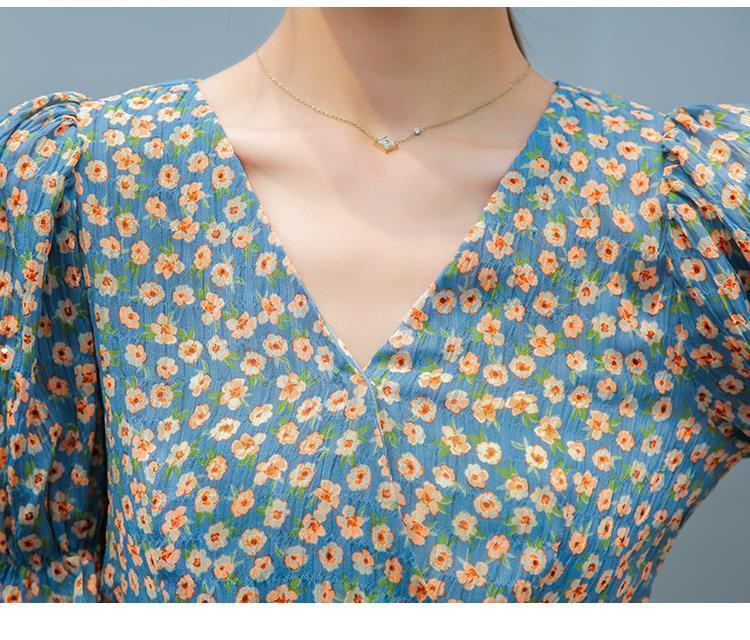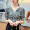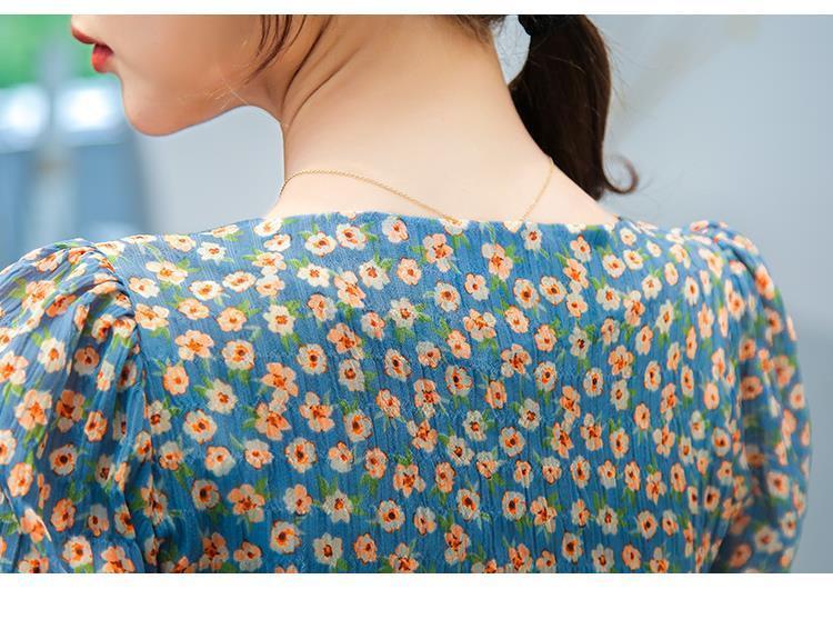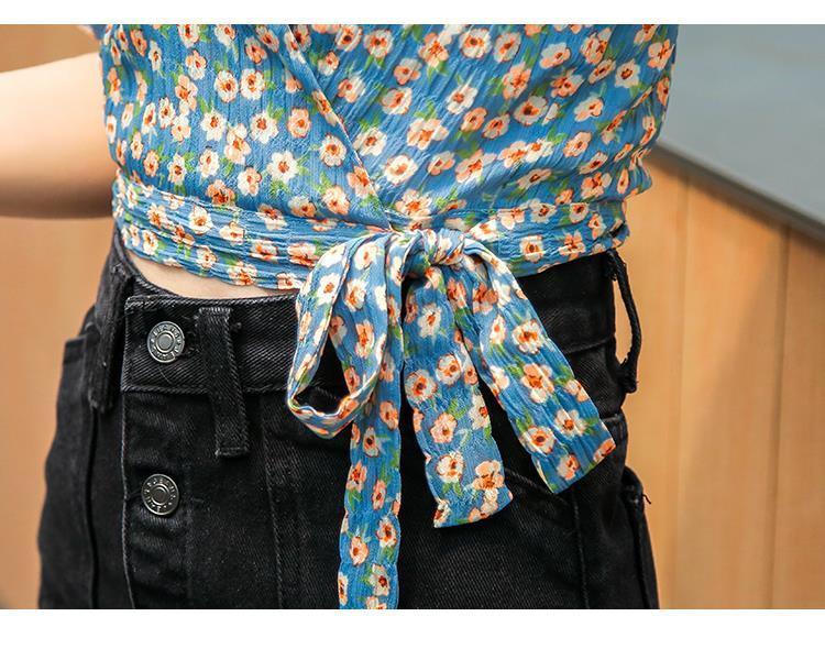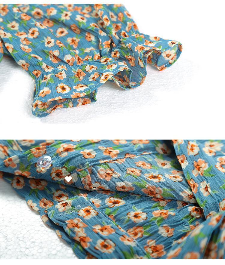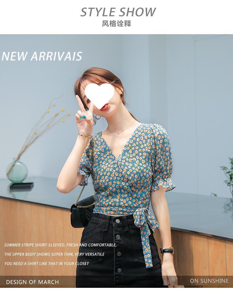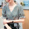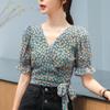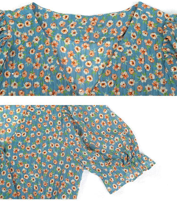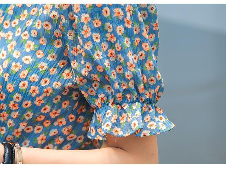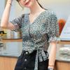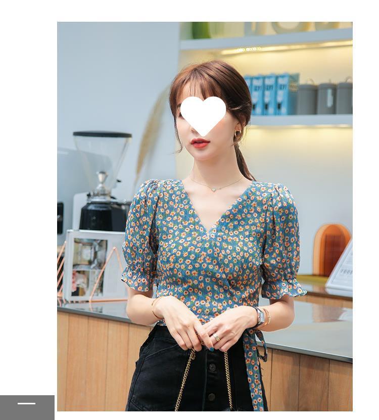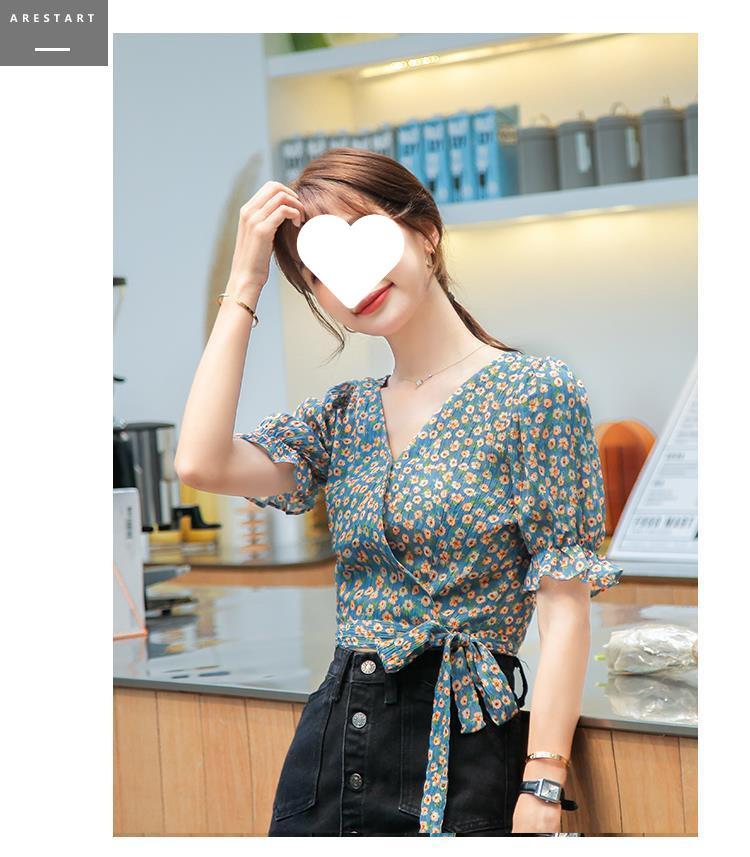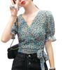 Camisa de Chifón Dulce de Nicho Francés de Verano para Mujer de Manga Corta Estilo Occidental Floral Camisa Corta de Manga Abullonada