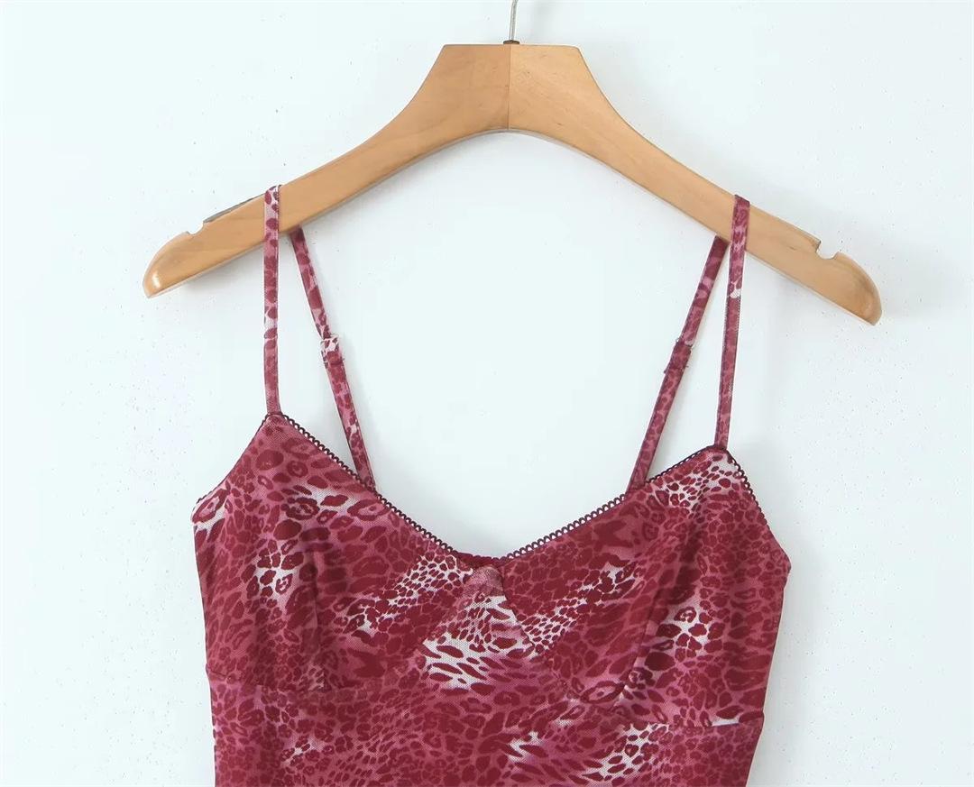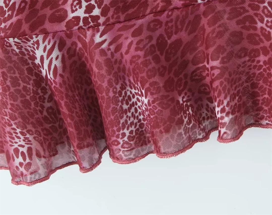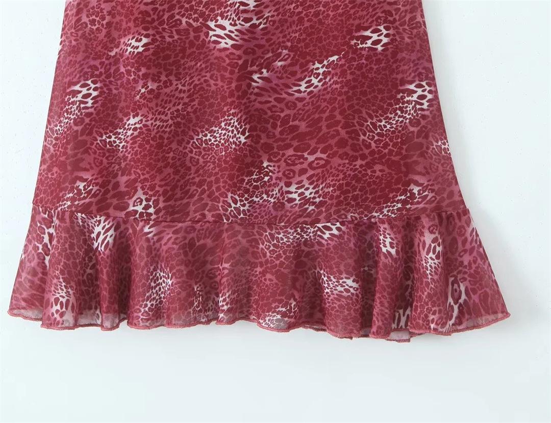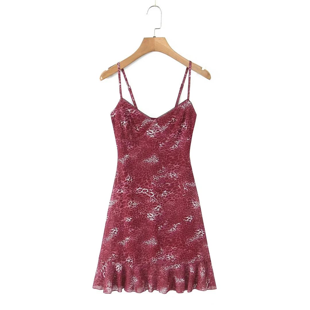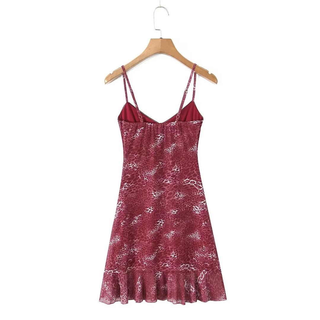 Vestido Sexy con Tirantes Estampado de Cuello en V Profundo Estilo Europeo y Americano Diseño Nicho Dobladillo con Volantes Falda Mini Ajustada