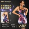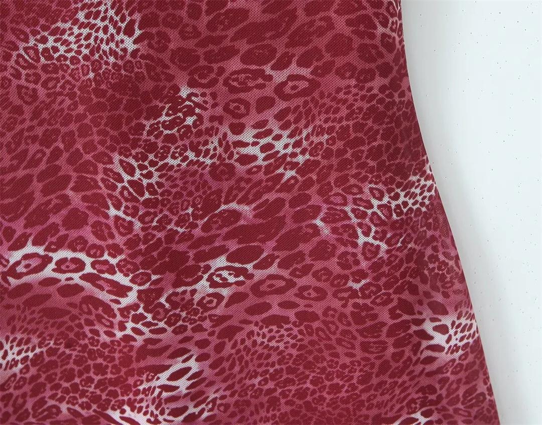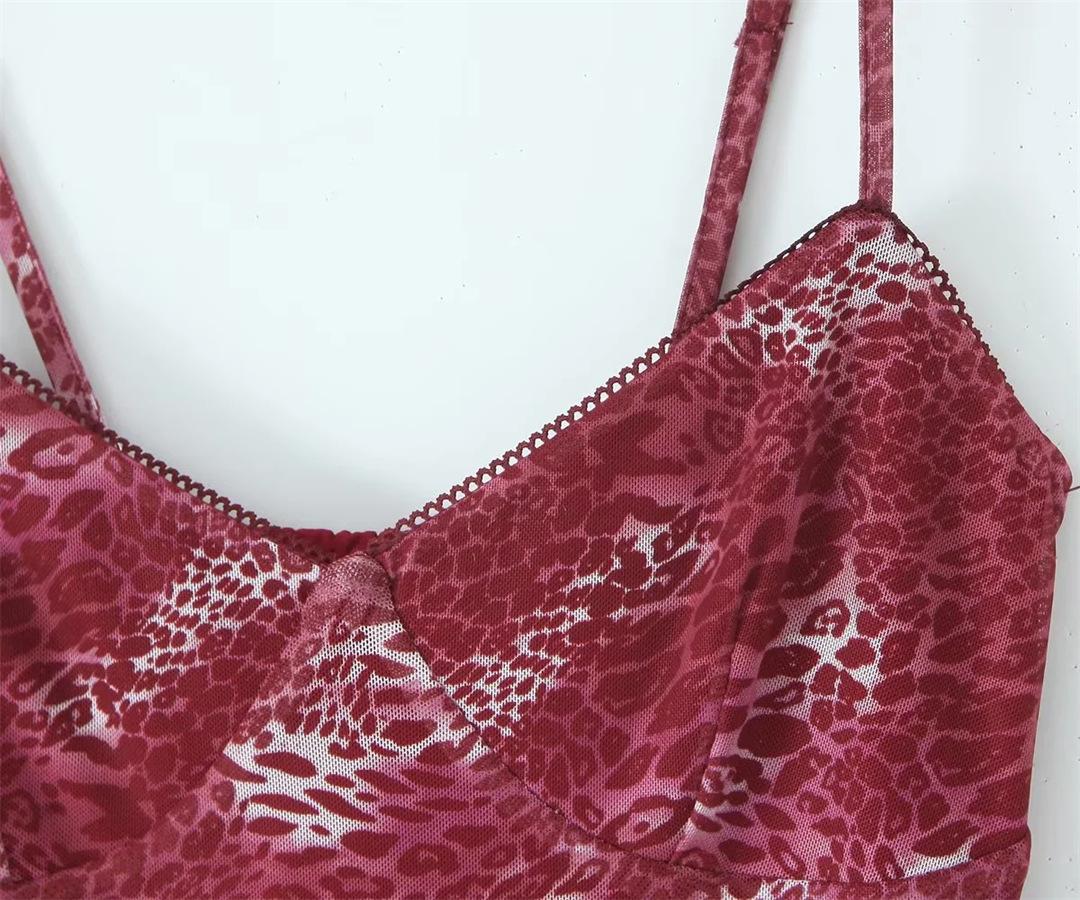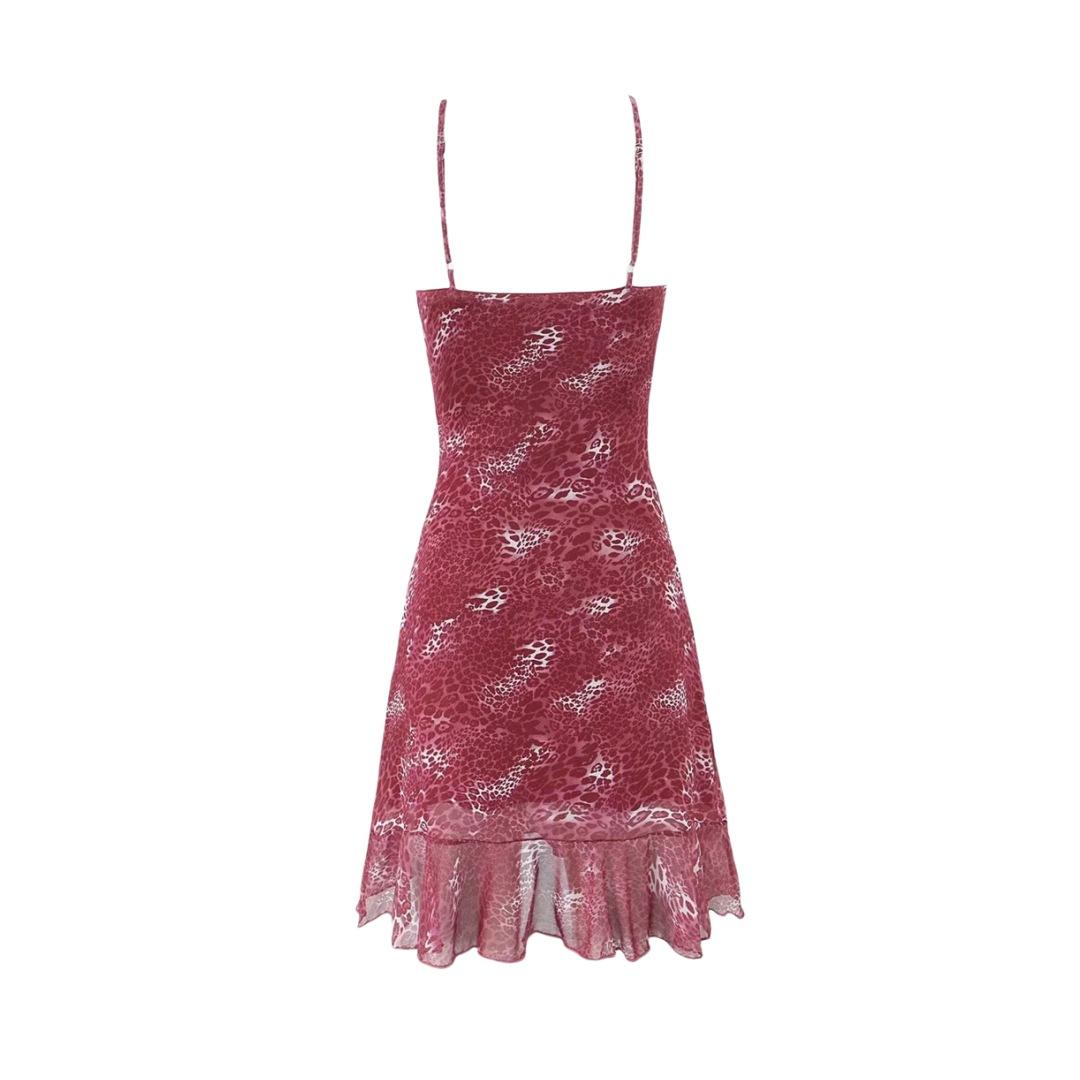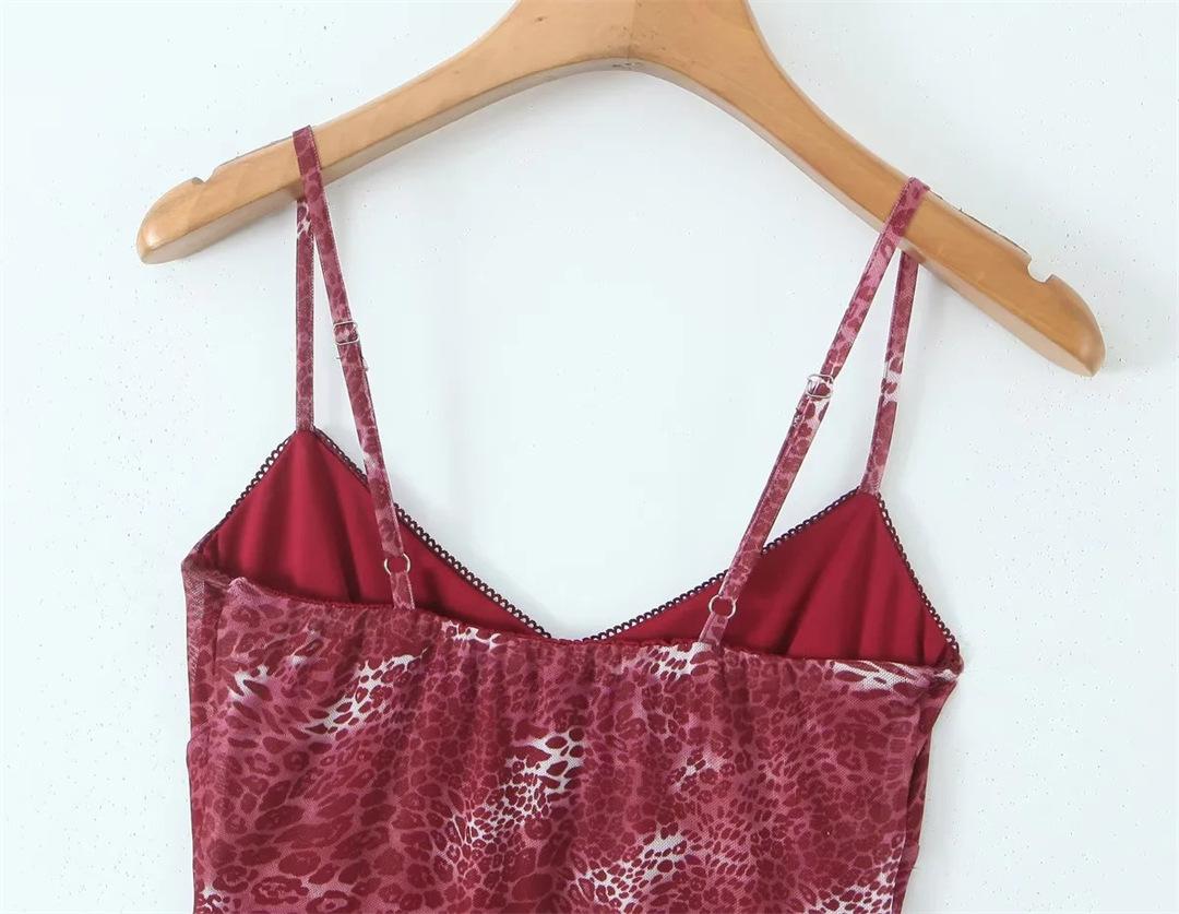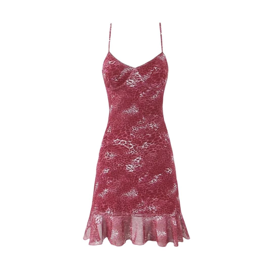 Vestido Sexy con Tirantes Estampado de Cuello en V Profundo Estilo Europeo y Americano Diseño Nicho Dobladillo con Volantes Falda Mini Ajustada