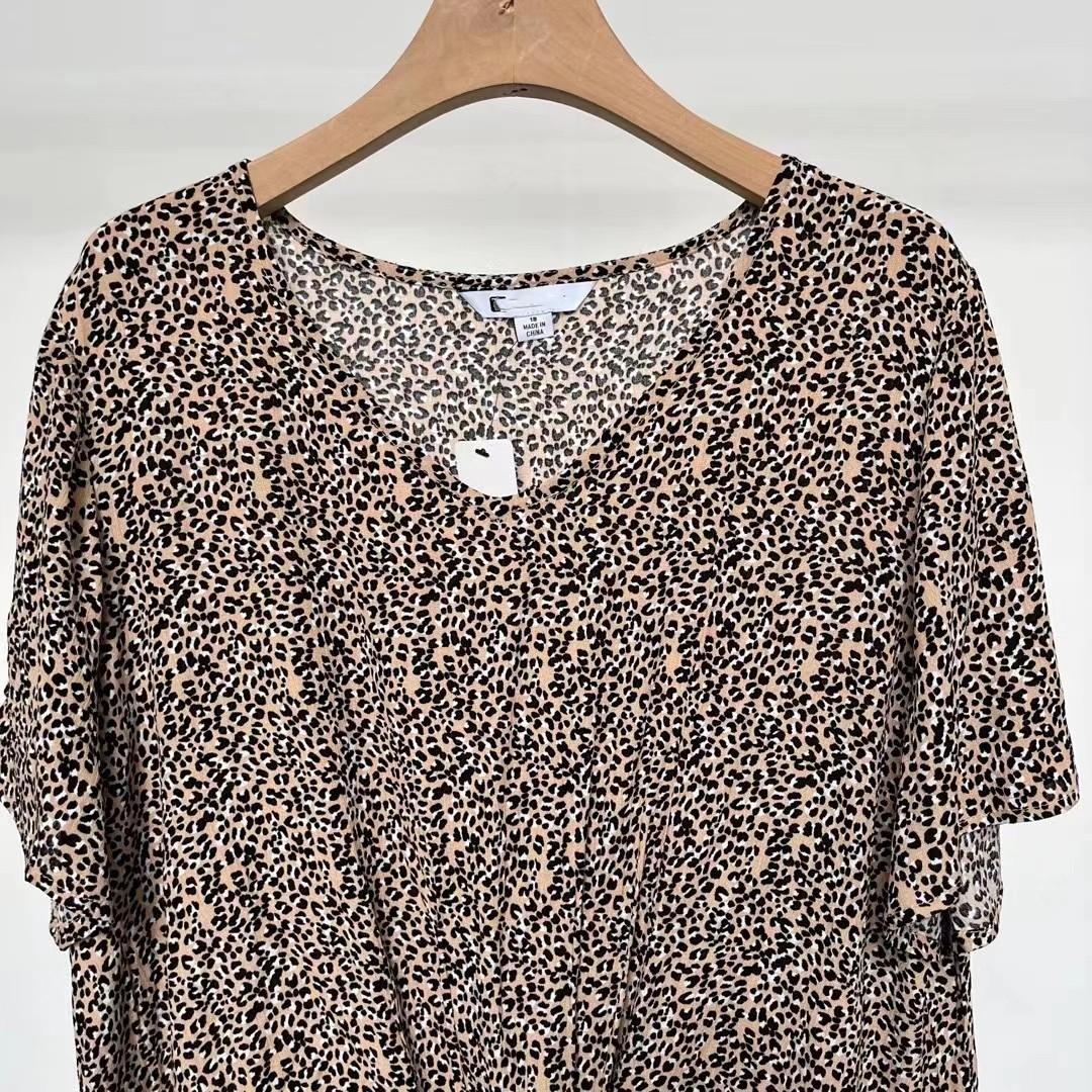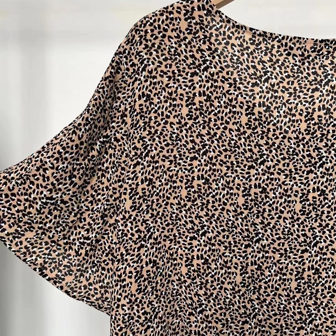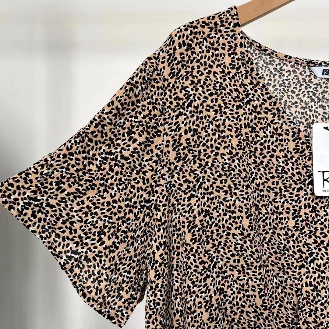 Camiseta de manga corta para mujer, Top de verano anudado de rayón con estampado de leopardo y cuello en V para mujer, Suministro de exportación de ropa para mujer