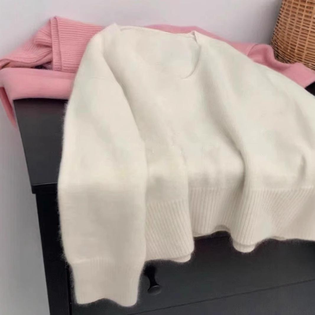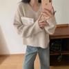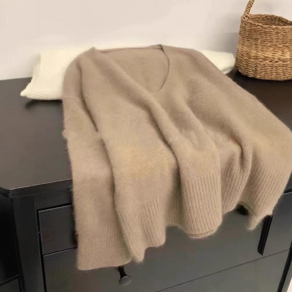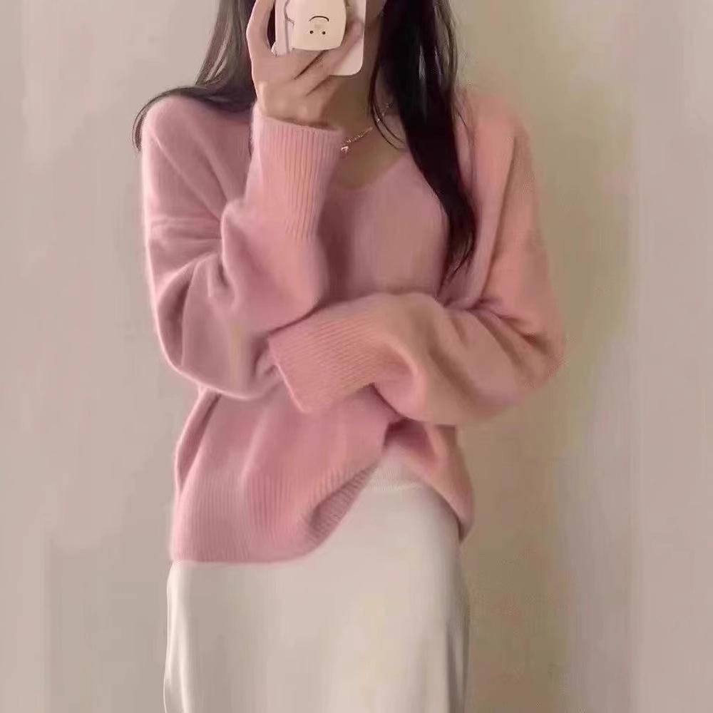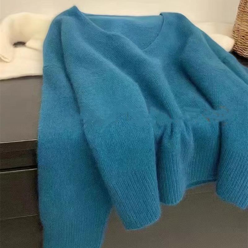 Suéter de cuello en V, suéter de punto para mujer, nuevo atuendo de otoño estilo coreano, suelto, estilo perezoso, suave, encerado, suéter corto, base superior