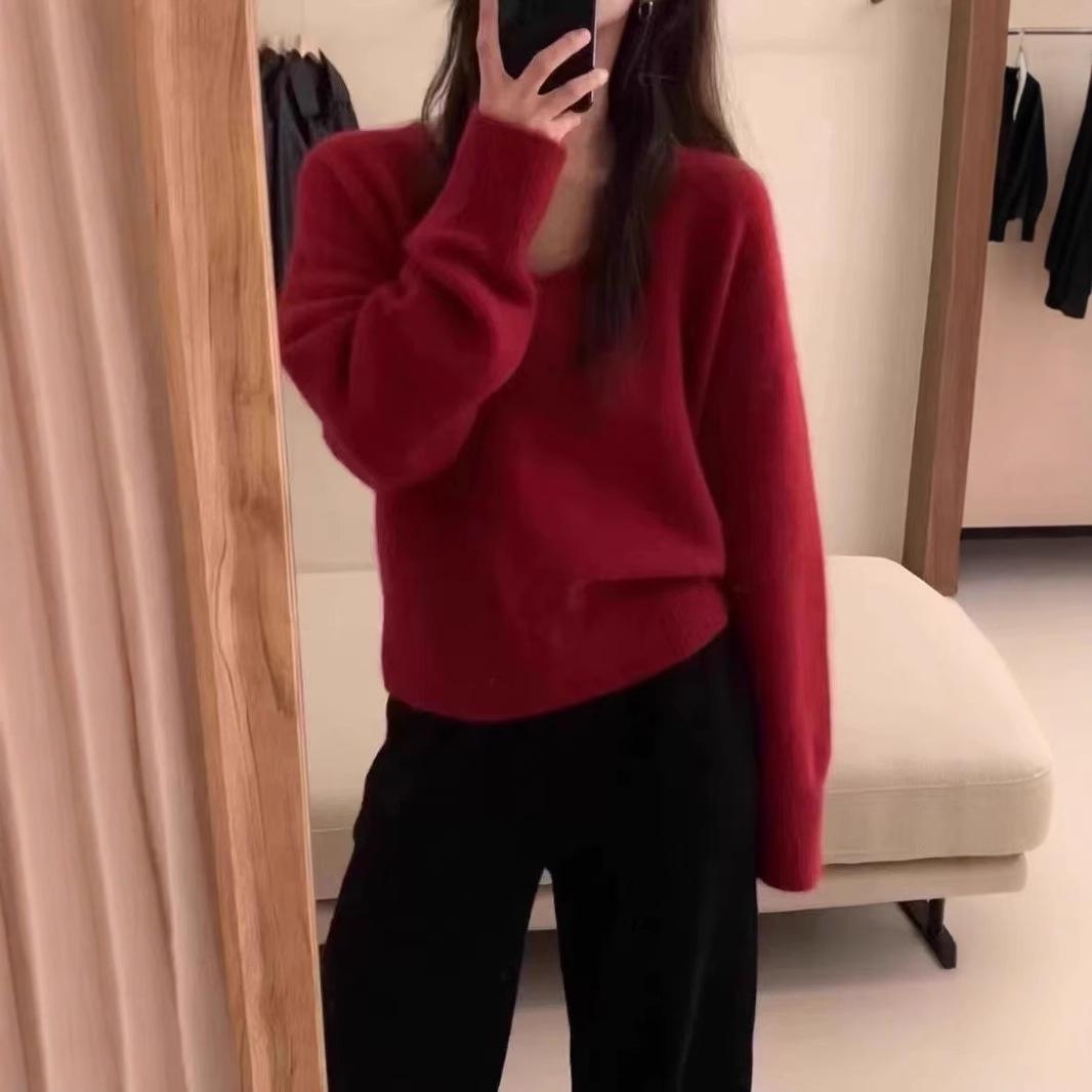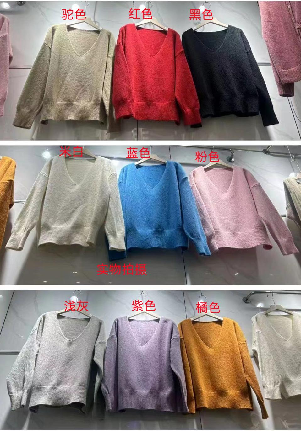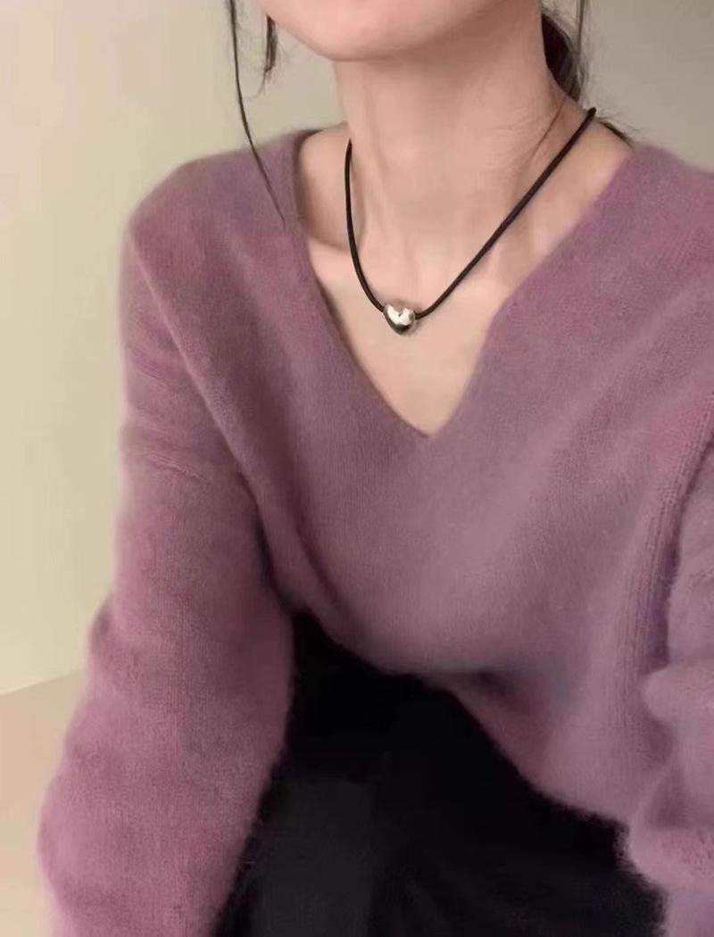 Suéter de cuello en V, suéter de punto para mujer, nuevo atuendo de otoño estilo coreano, suelto, estilo perezoso, suave, encerado, suéter corto, base superior