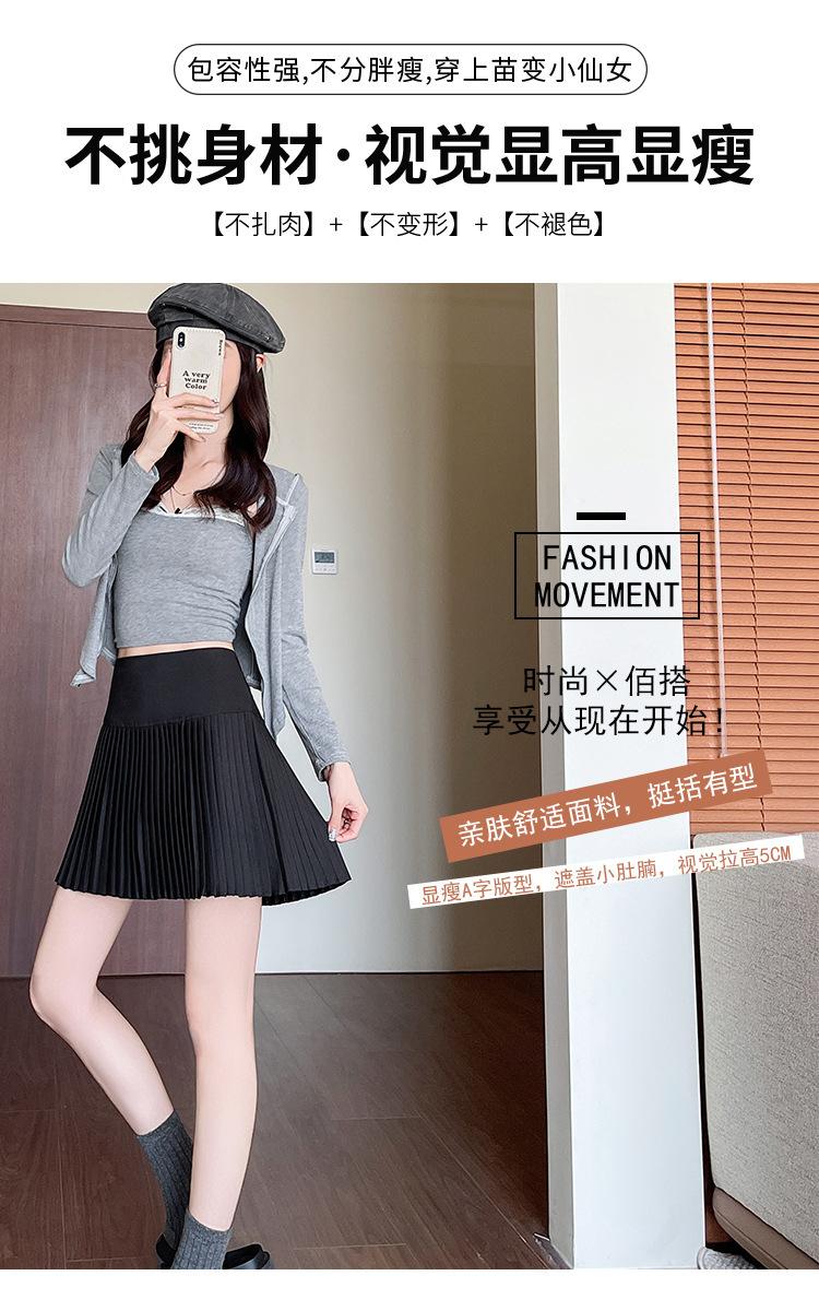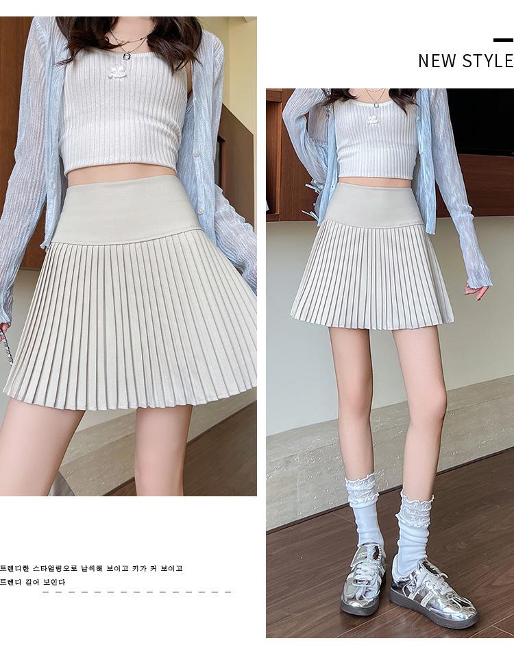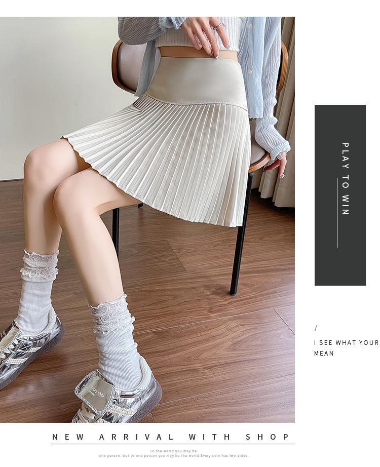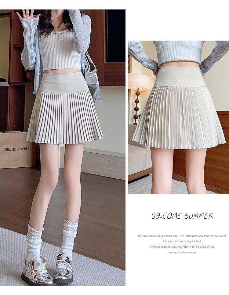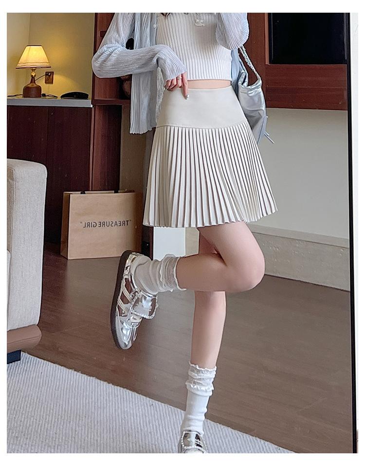 Falda plisada blanco cremoso para mujer 2025 primavera nueva cintura alta delgada línea A falda de traje de verano