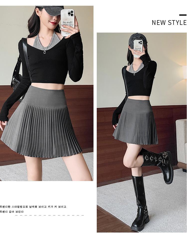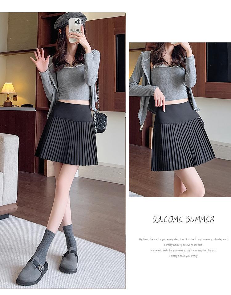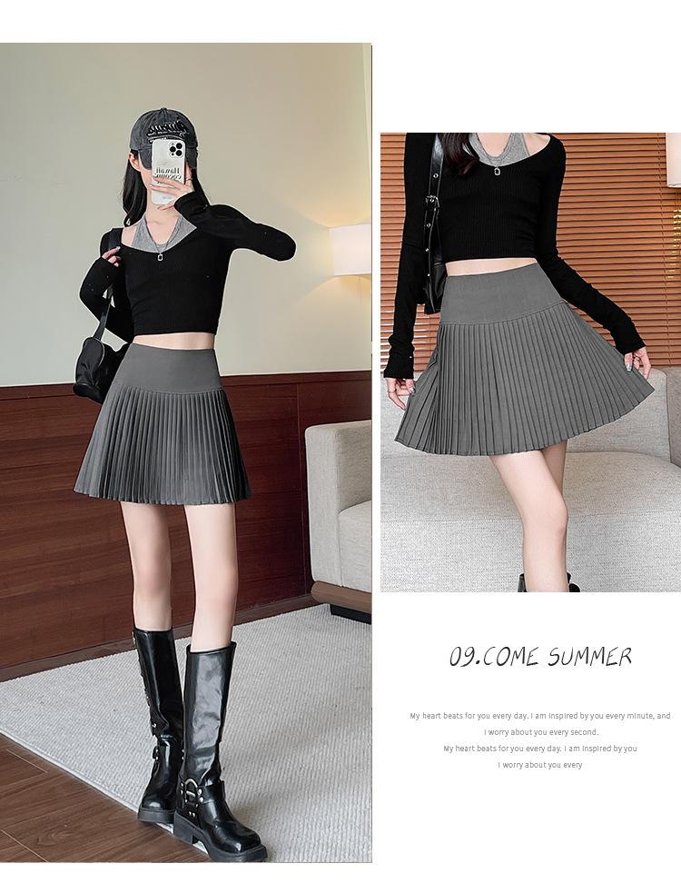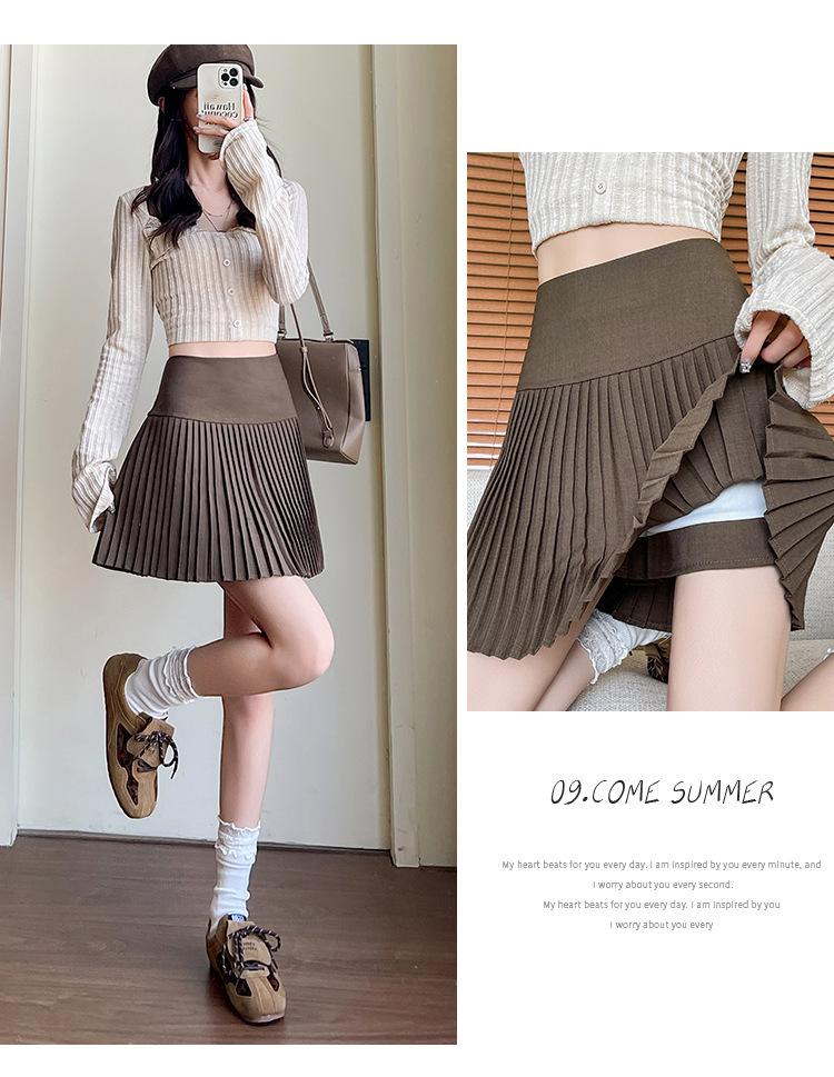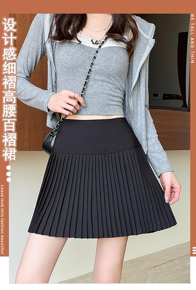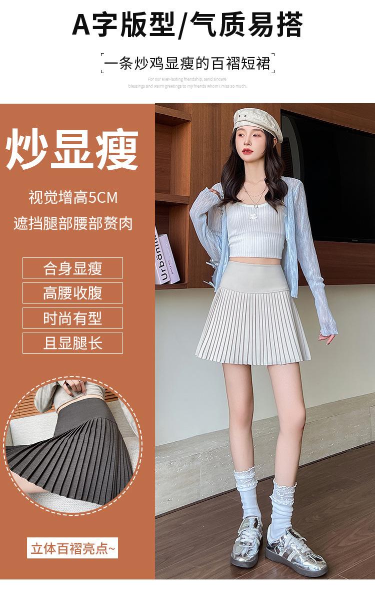 Falda plisada blanco cremoso para mujer 2025 primavera nueva cintura alta delgada línea A falda de traje de verano