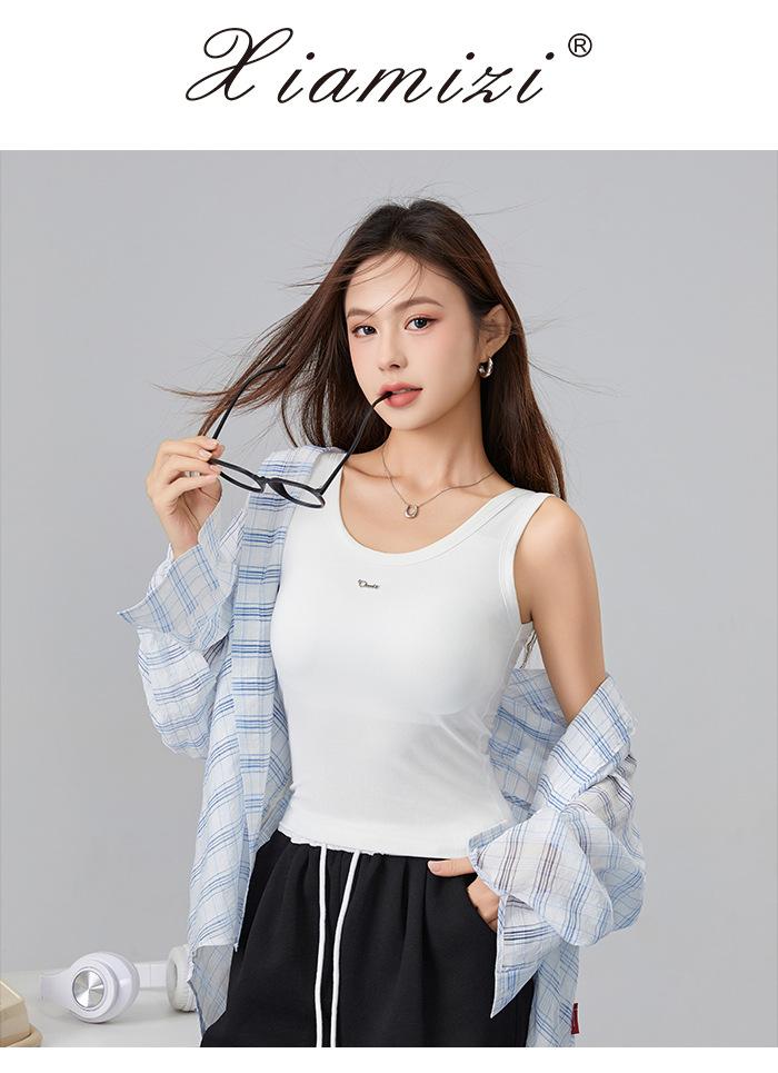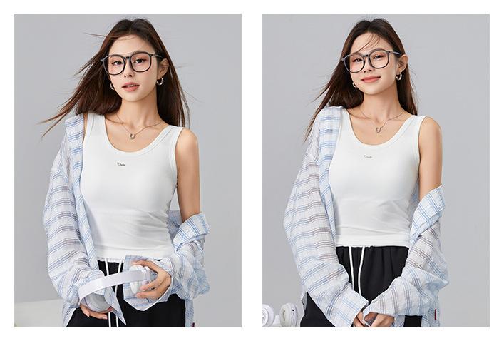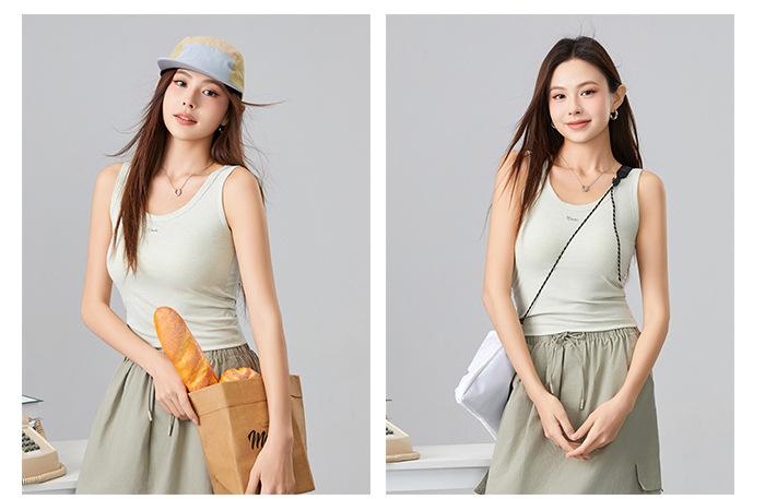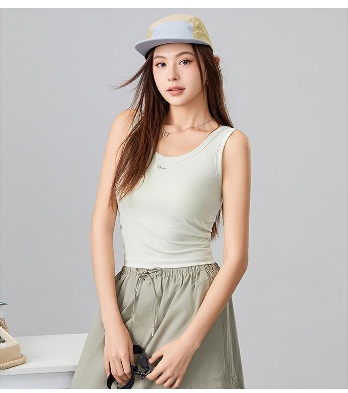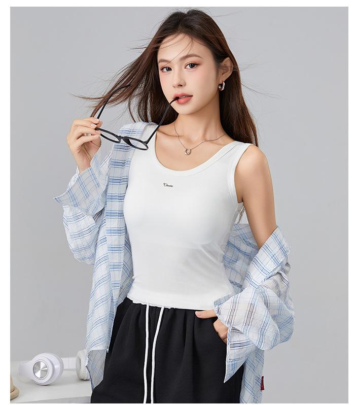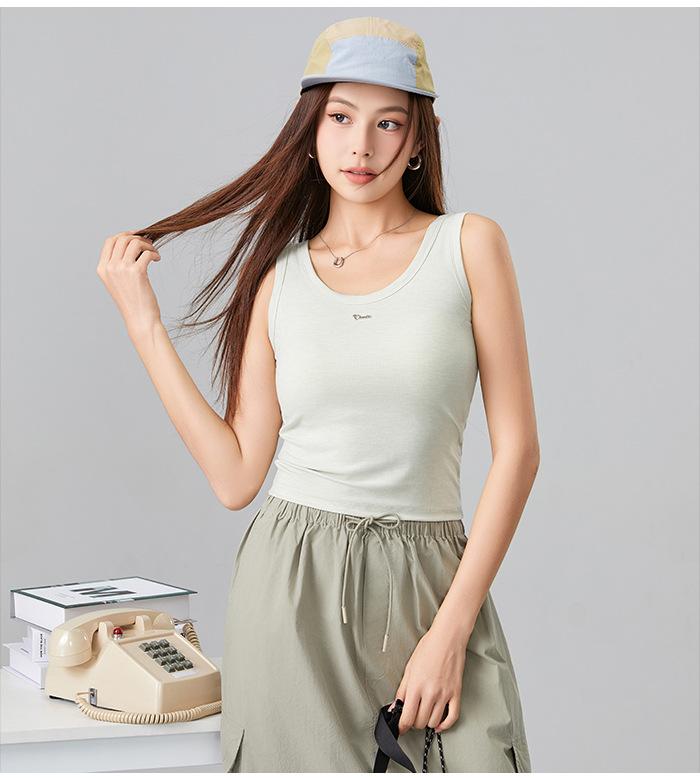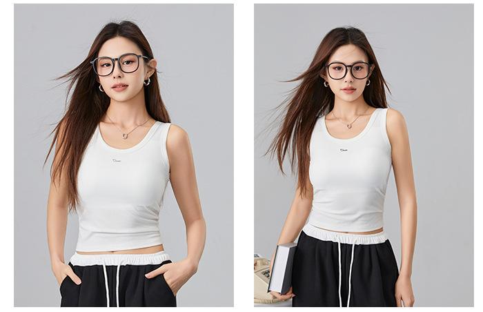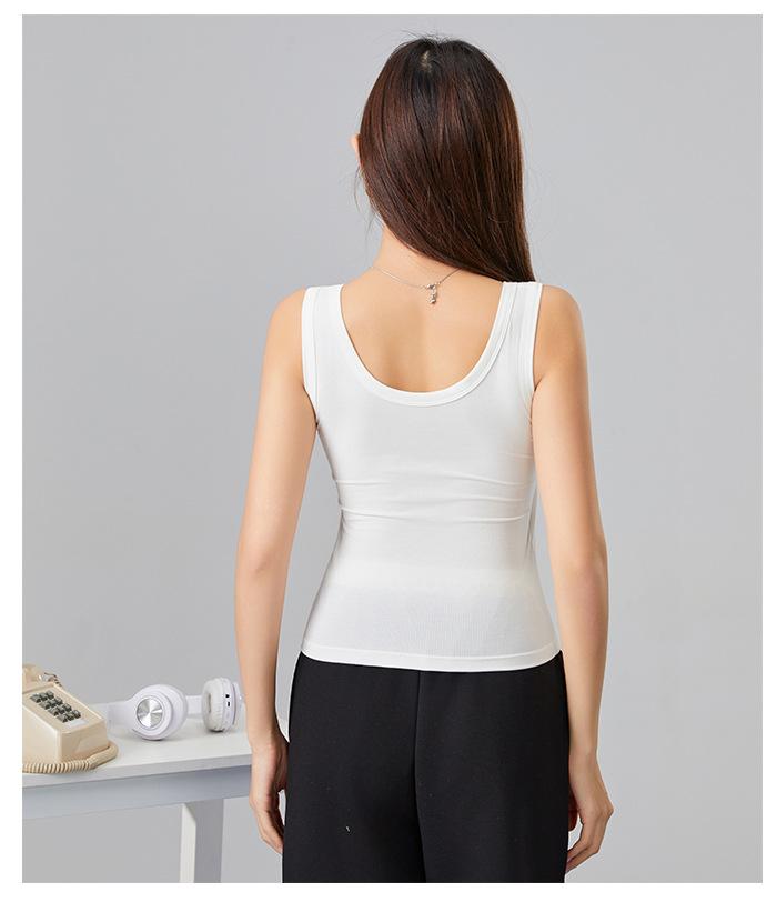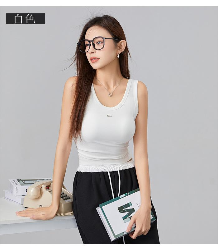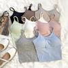 Nueva camisola blanca para mujer en verano, corte ajustado, top corto de punto sin mangas con almohadillas en el pecho para uso exterior