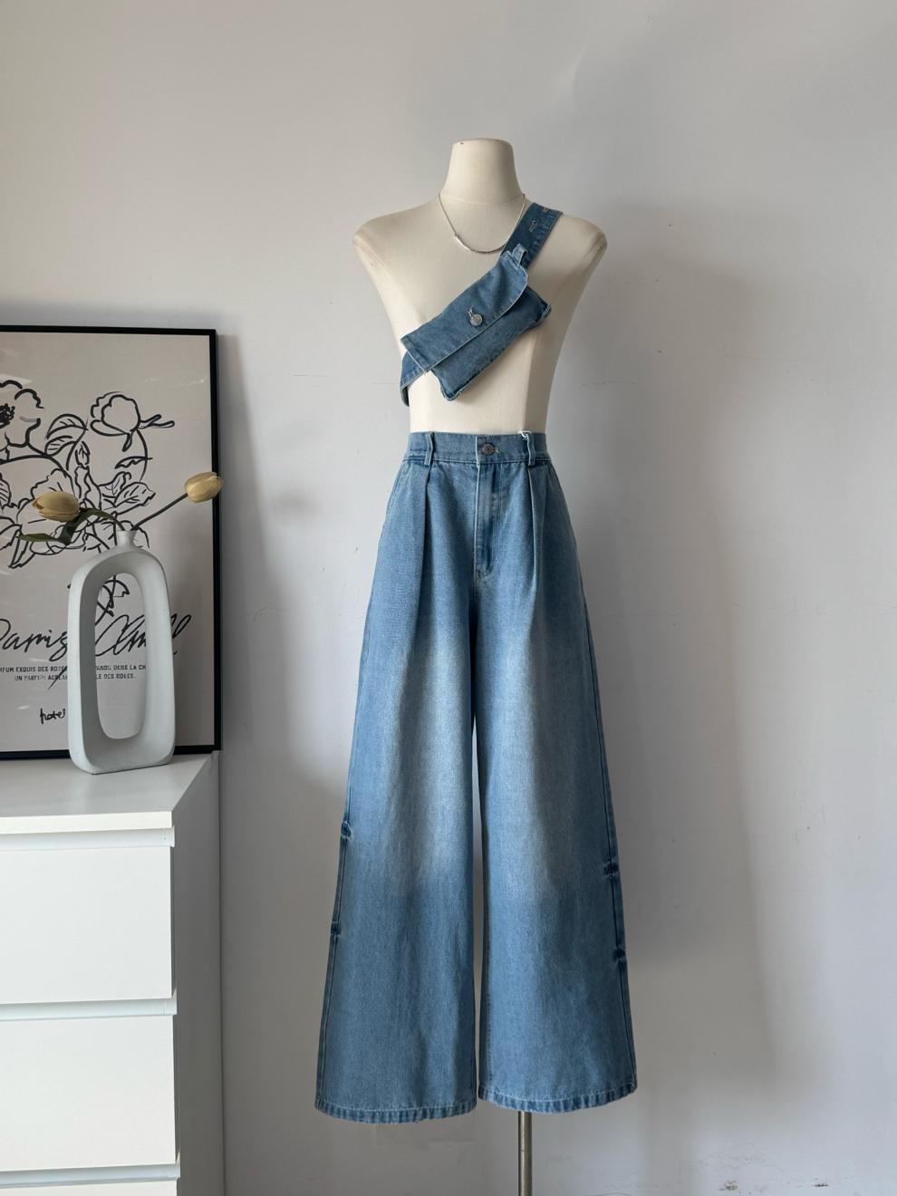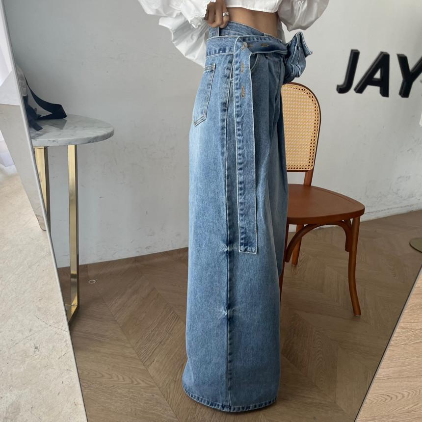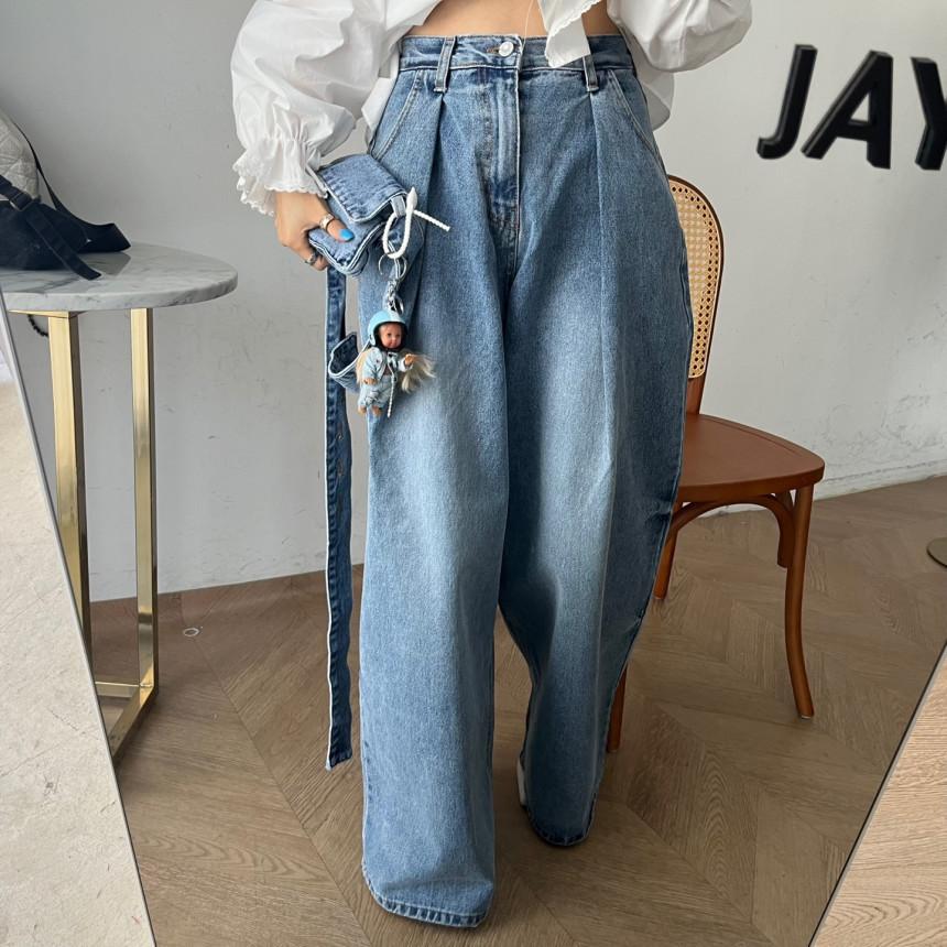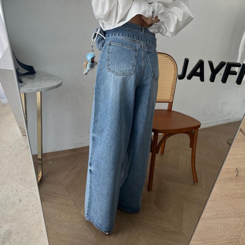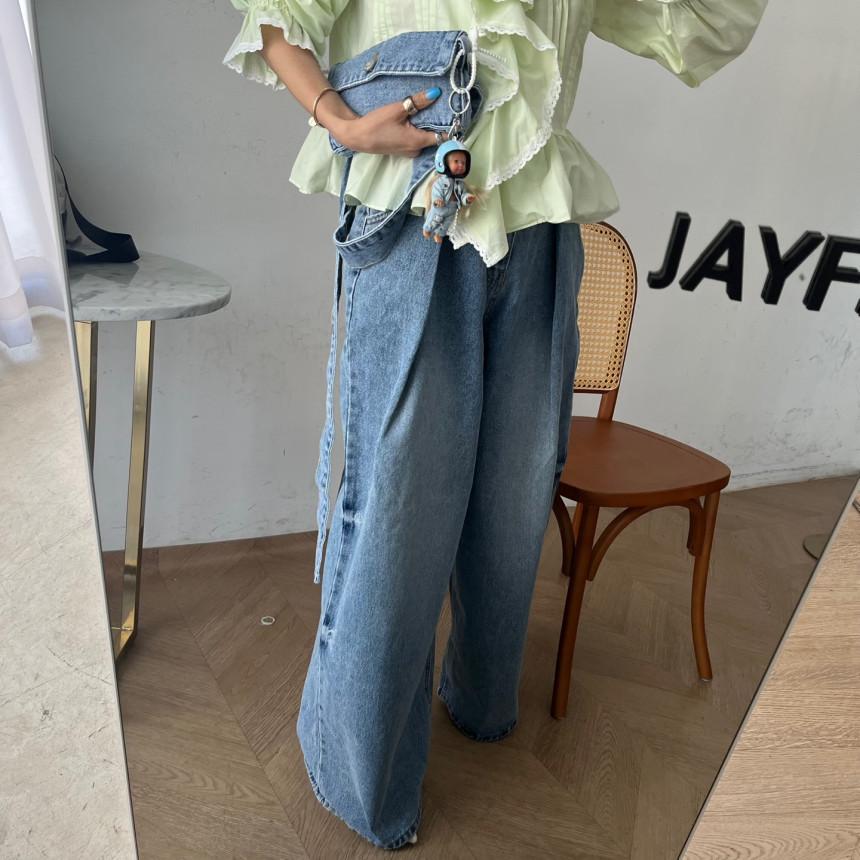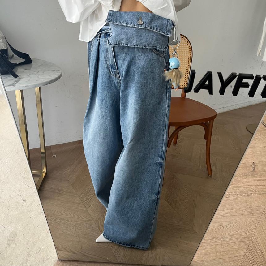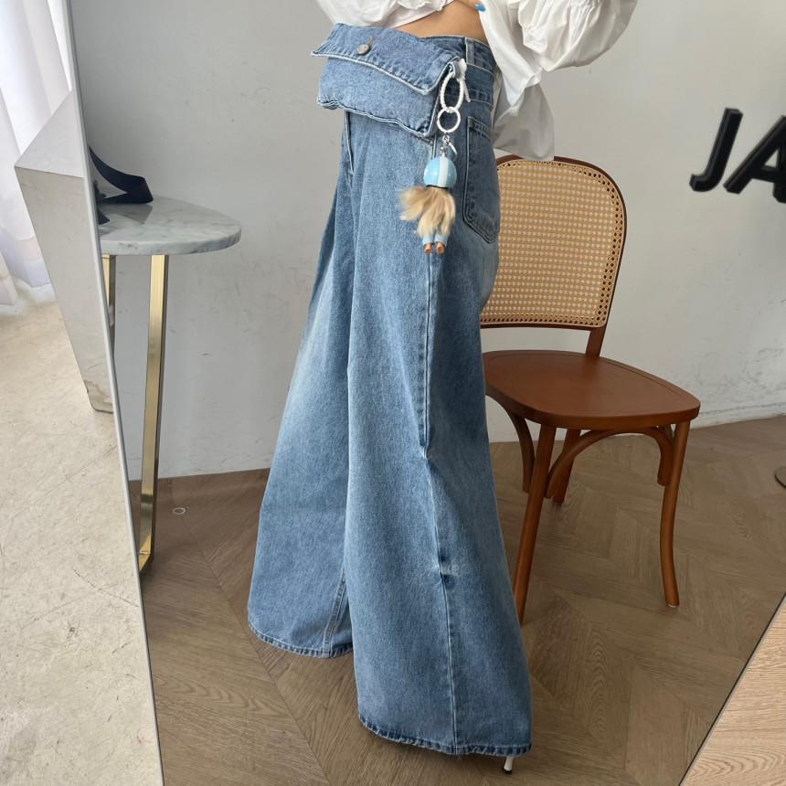 Jeans de Cintura Alta Slim de Alta Calidad para Mujer de Dongdaemun, Corea del Sur con Riñonera