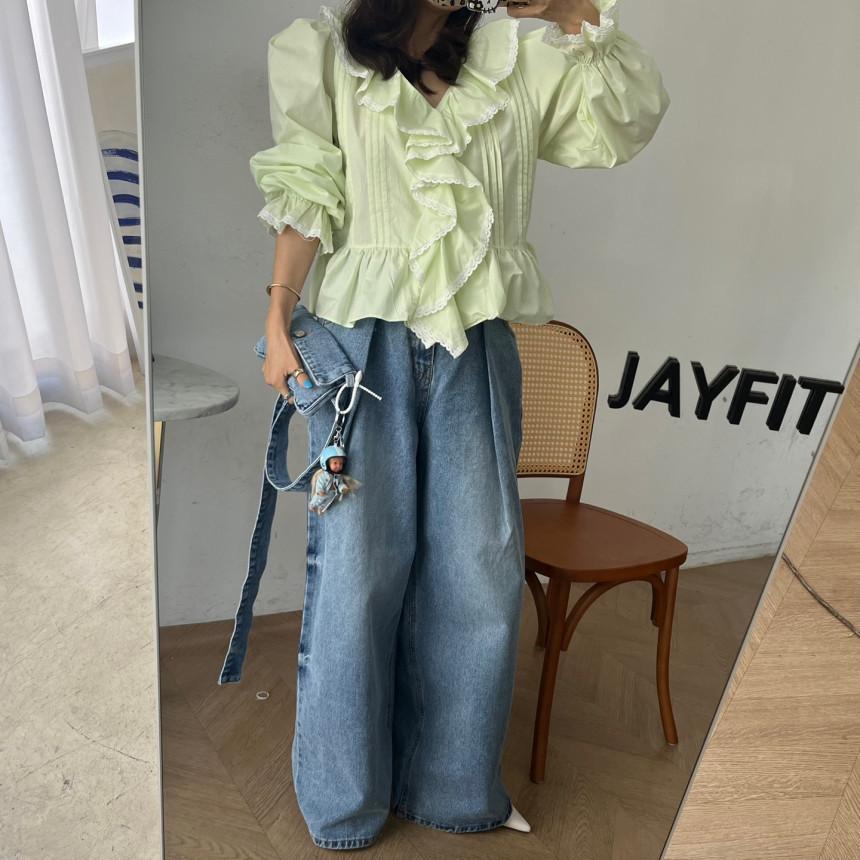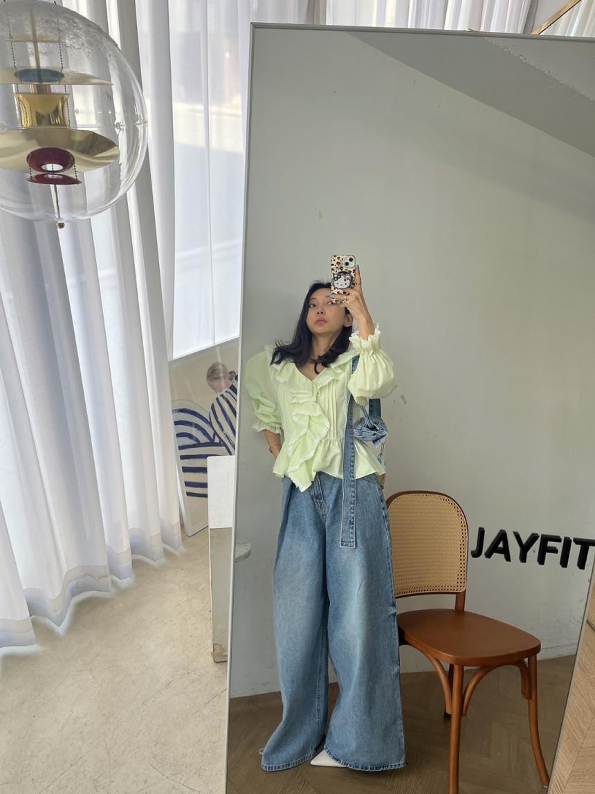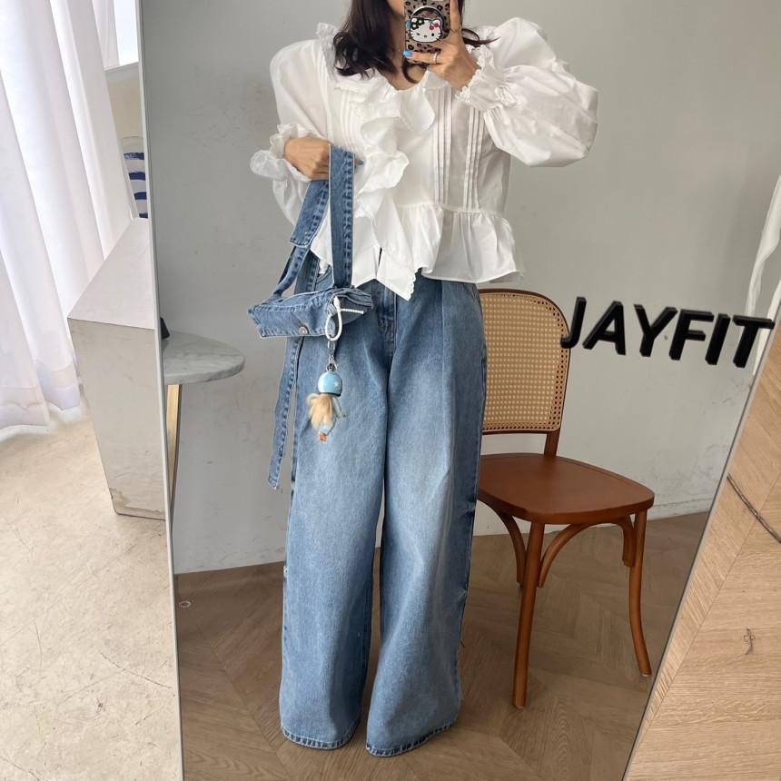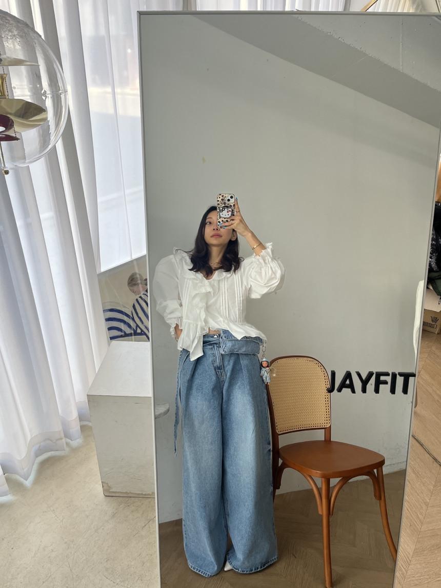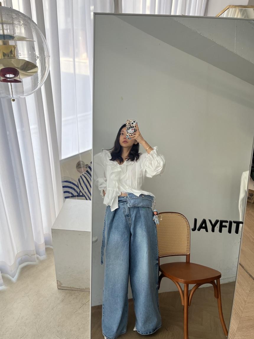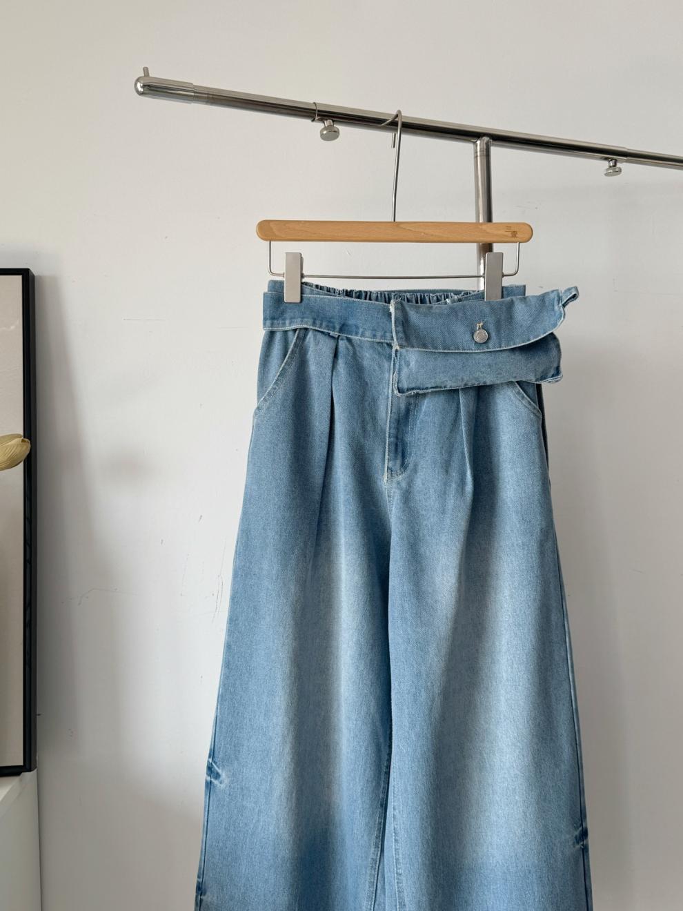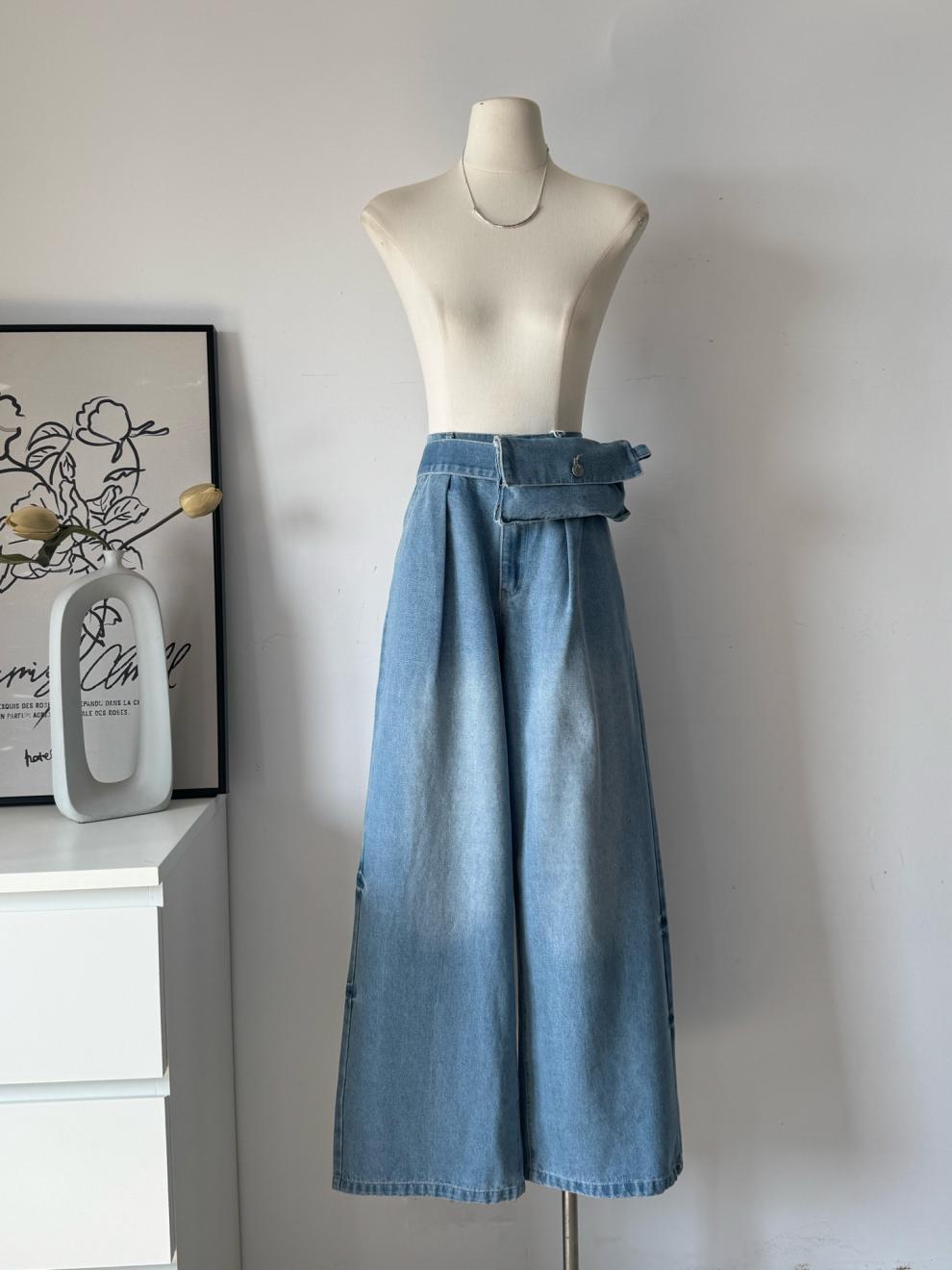 Jeans de Cintura Alta Slim de Alta Calidad para Mujer de Dongdaemun, Corea del Sur con Riñonera