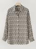 Camisa de seda de morera de manga larga estampada para mujer, blusa holgada de longitud media con cuello cuadrado retro, nueva primavera