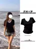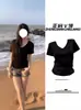 Camiseta negra de manga corta con escote en V y cintura ajustada para mujer, estilo americano, estilo Spice Girls, de verano 2024.