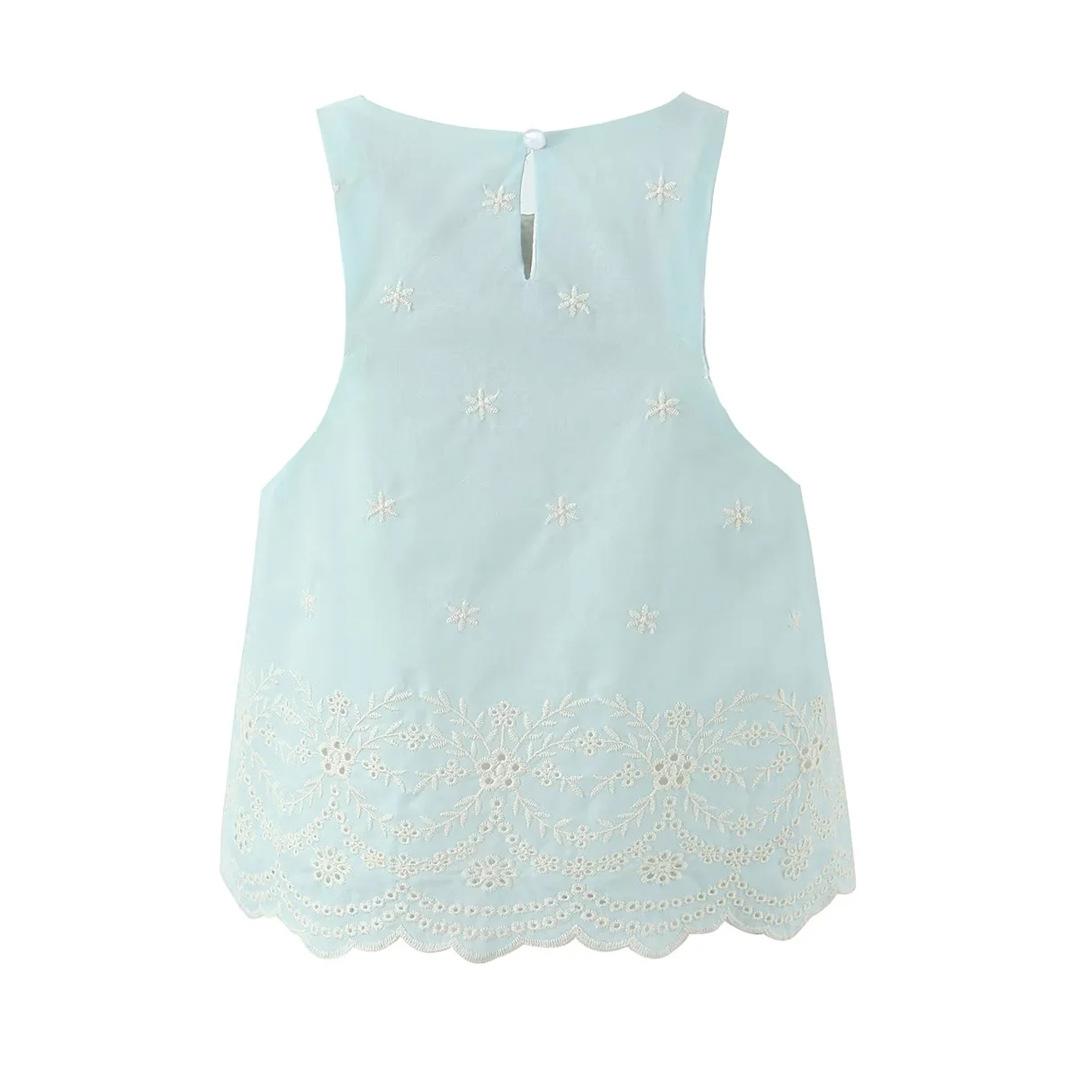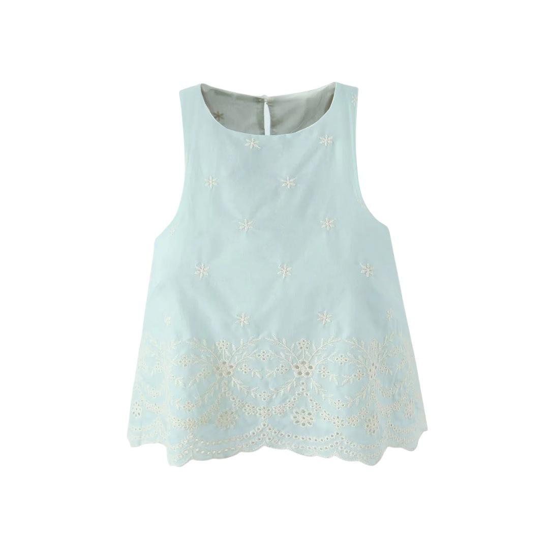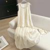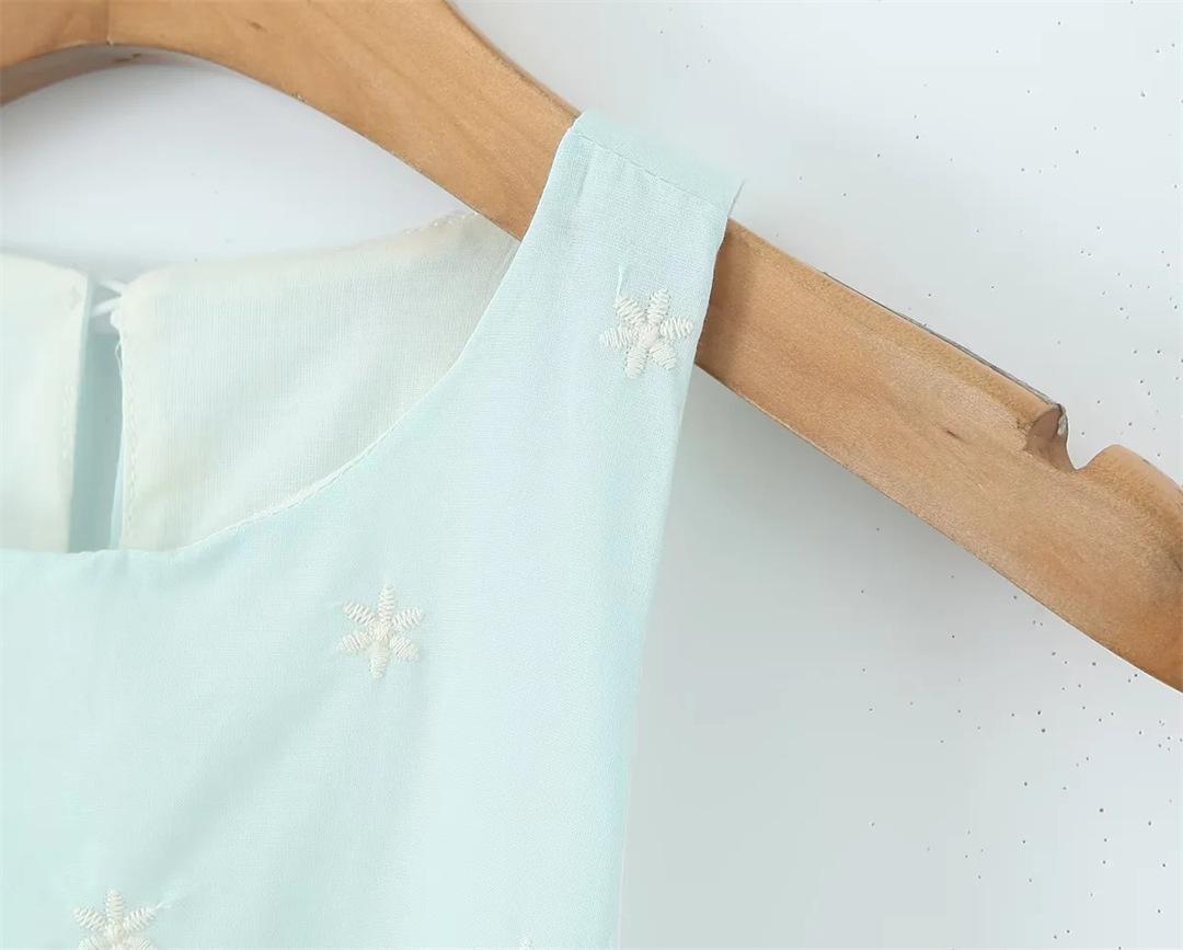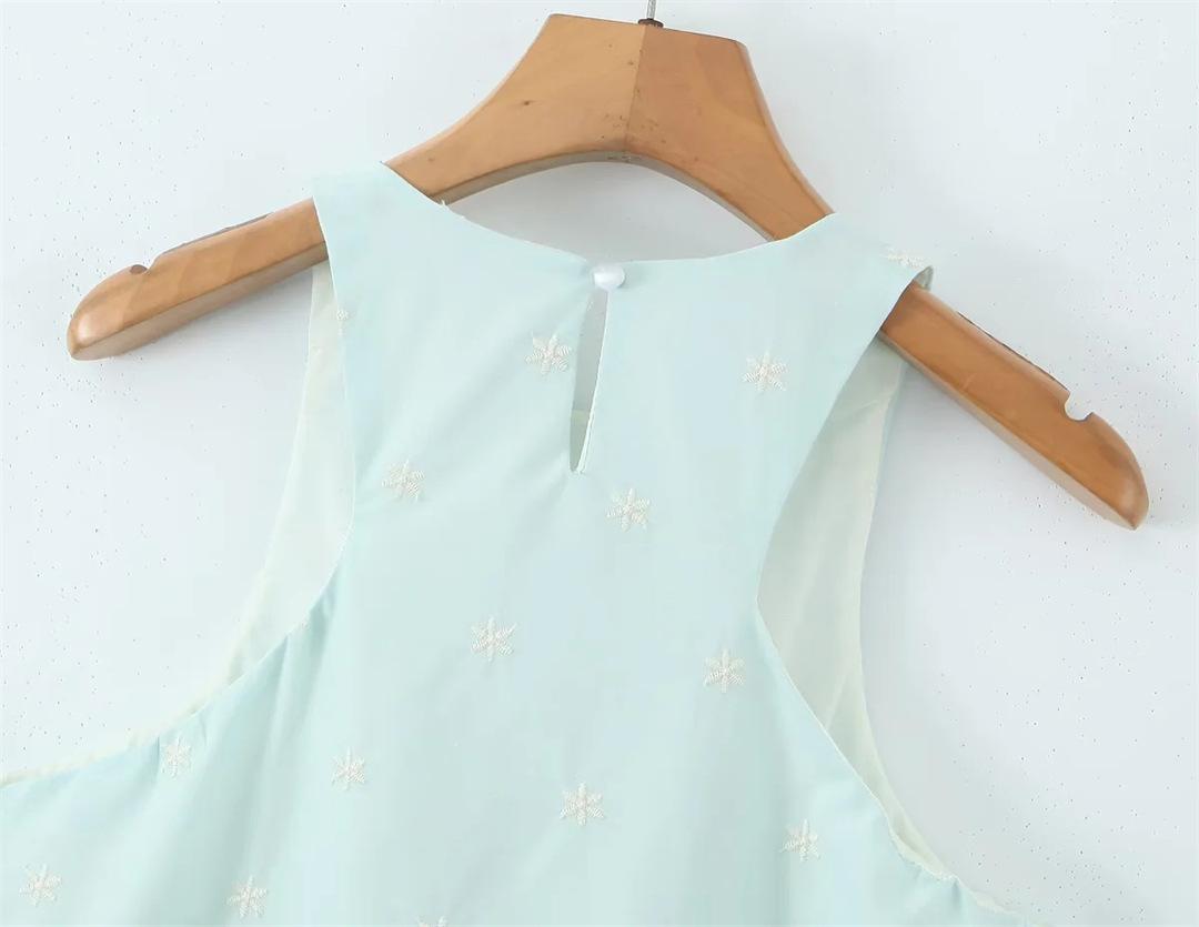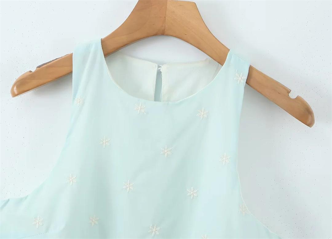 Viaje Suave Cuello Redondo Sin Mangas Chaleco Bordado Cintura Loof Costuras Encaje Vacaciones en la Playa Vestido Largo traje