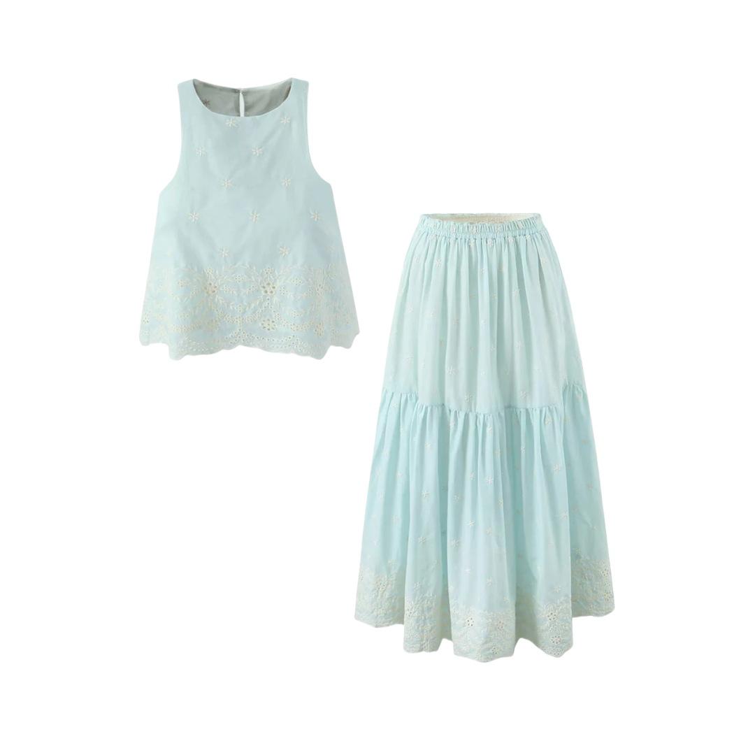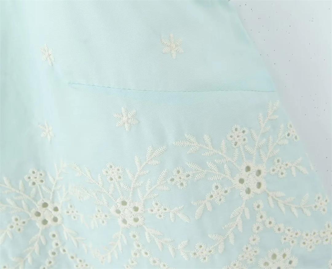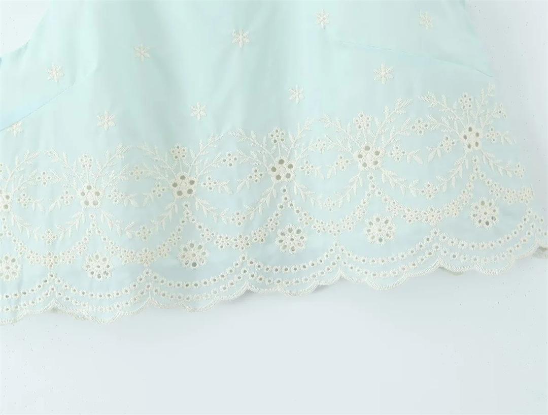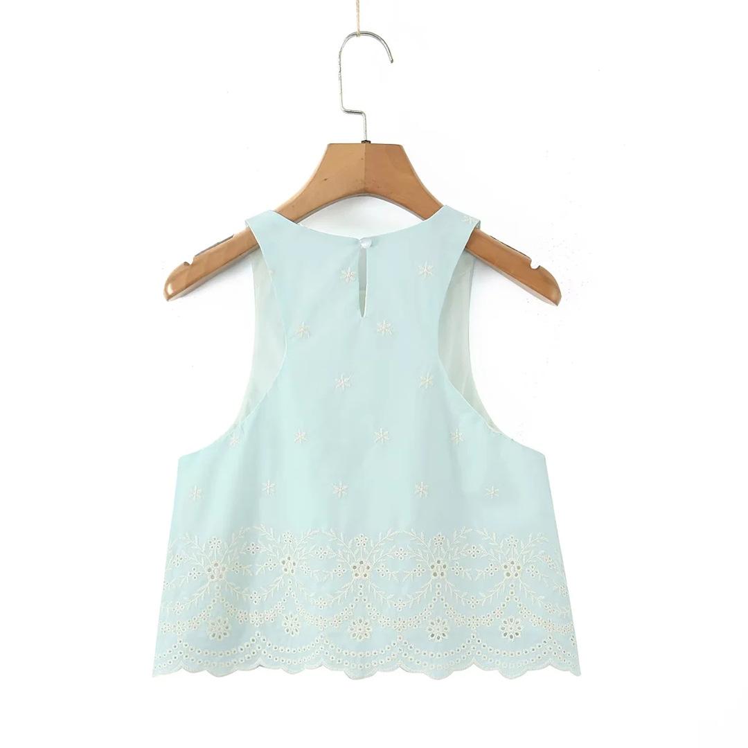 Viaje Suave Cuello Redondo Sin Mangas Chaleco Bordado Cintura Loof Costuras Encaje Vacaciones en la Playa Vestido Largo traje