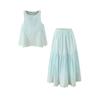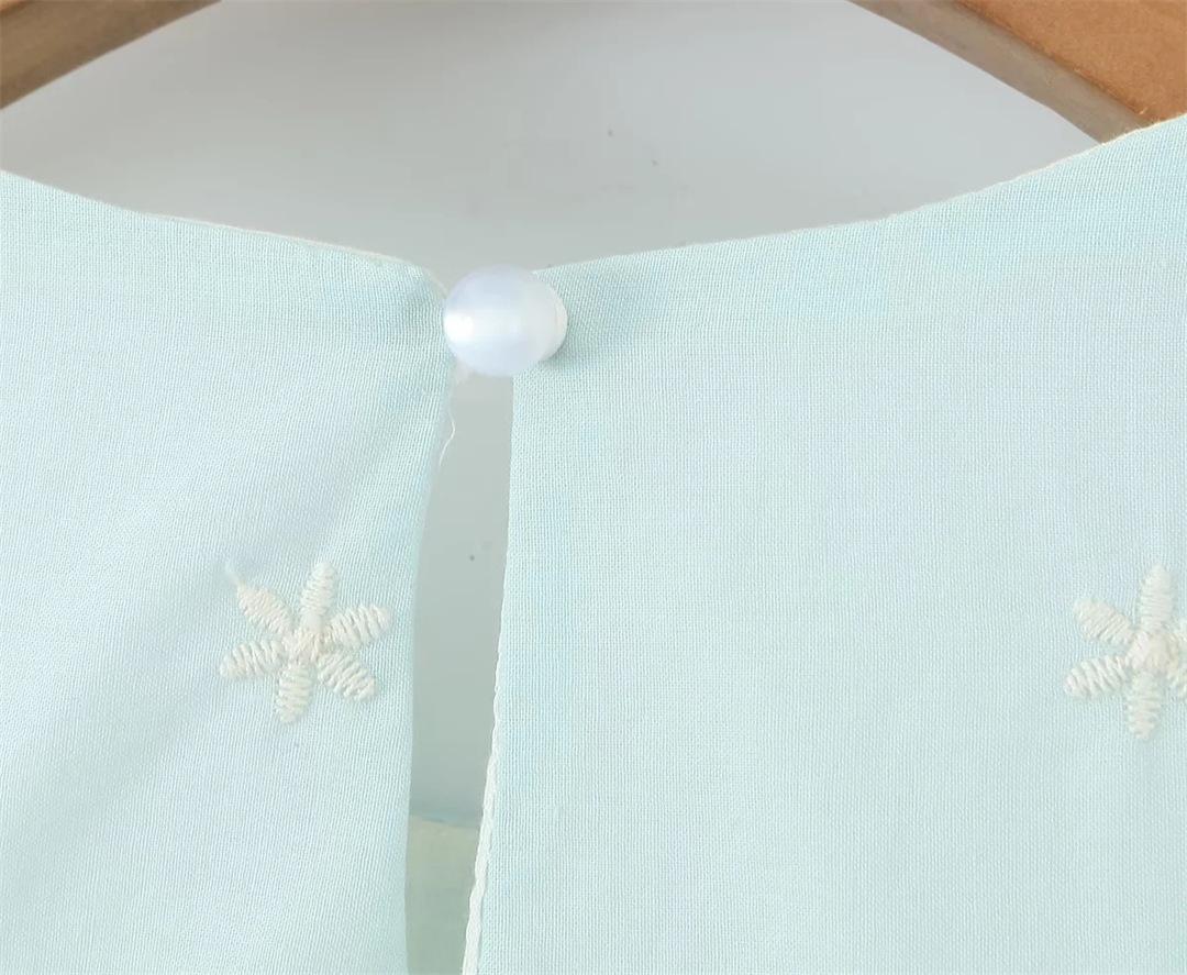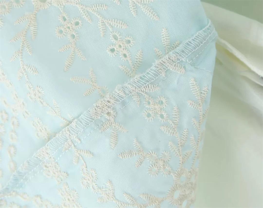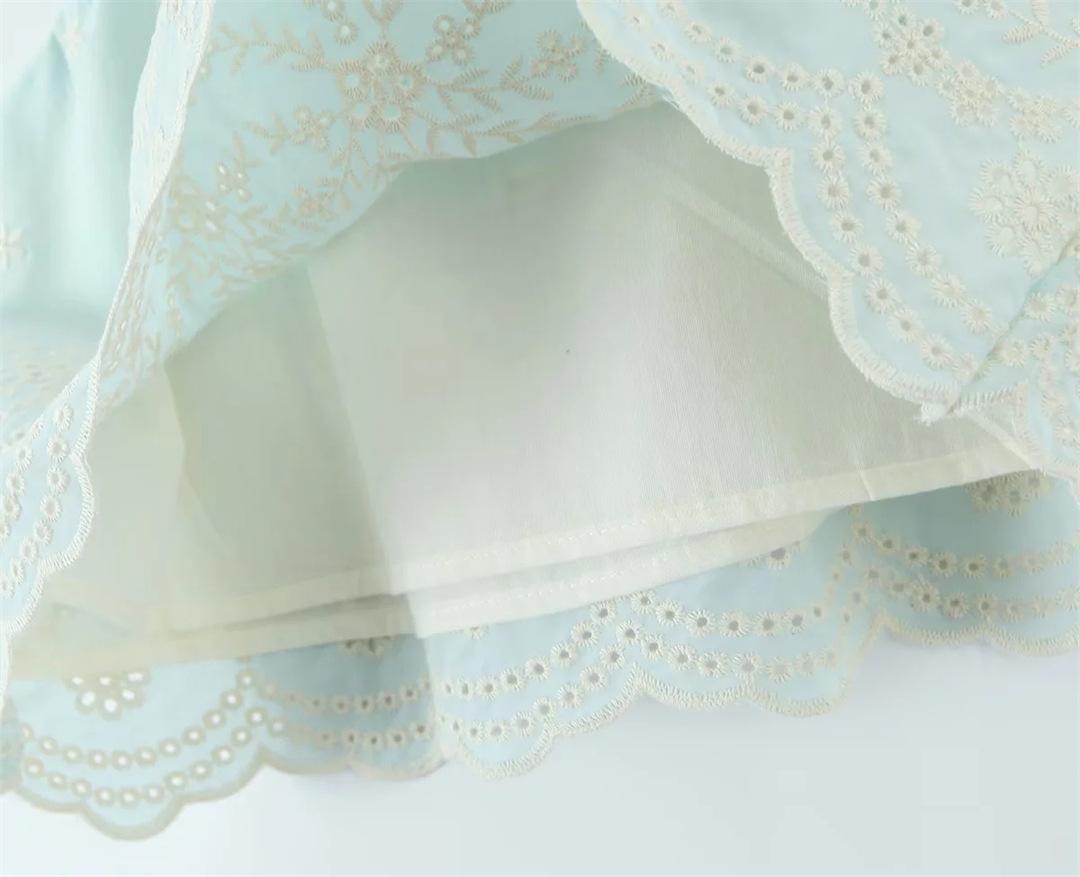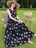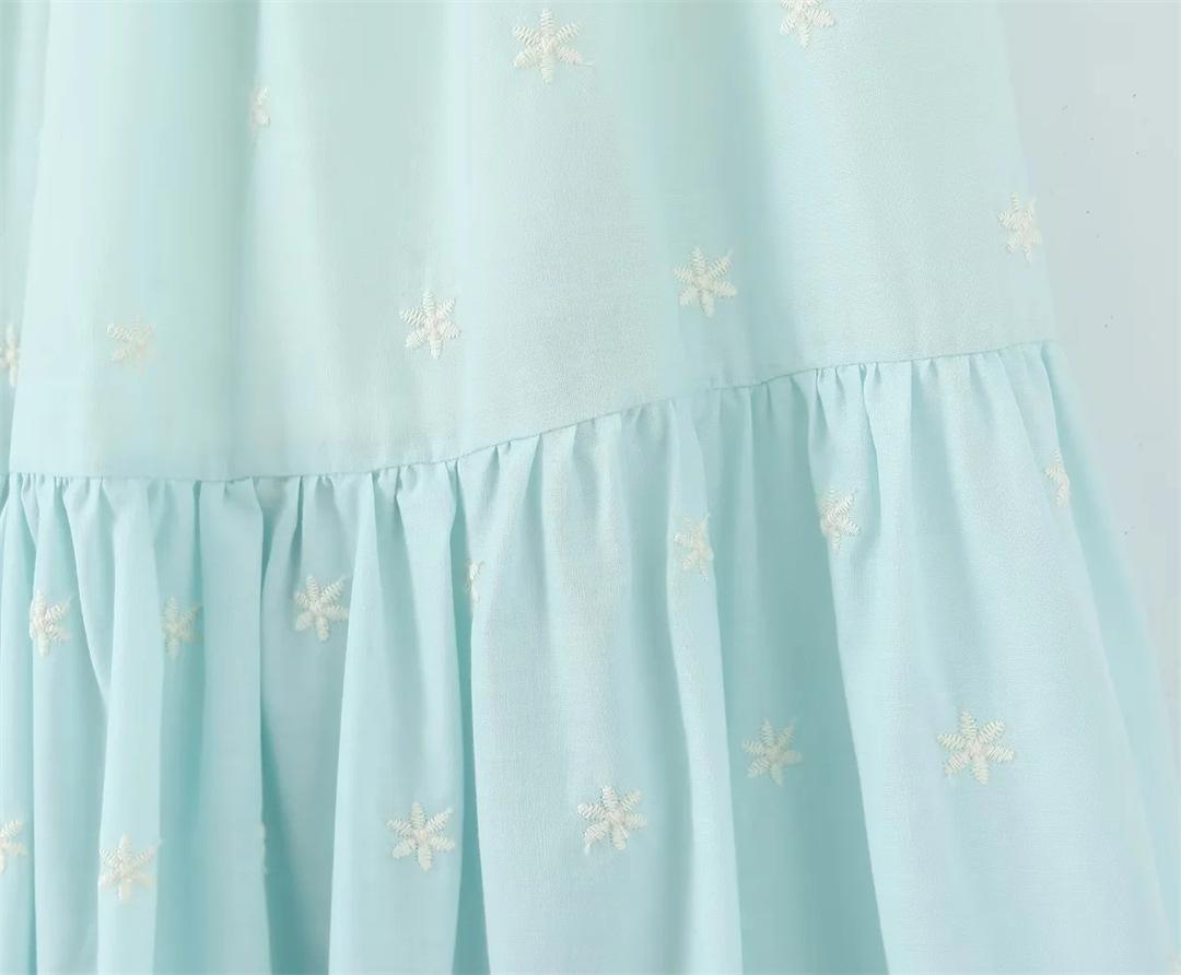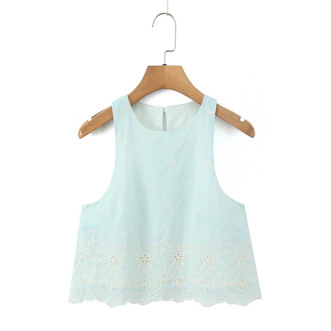 Viaje Suave Cuello Redondo Sin Mangas Chaleco Bordado Cintura Loof Costuras Encaje Vacaciones en la Playa Vestido Largo traje