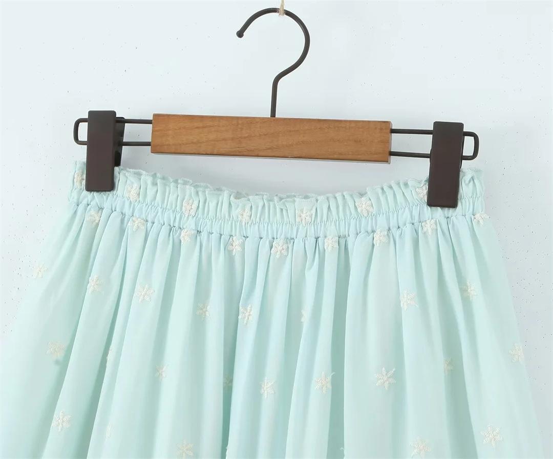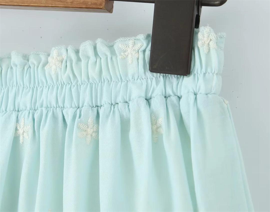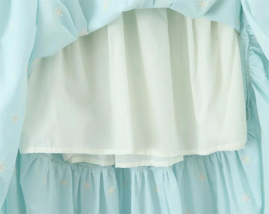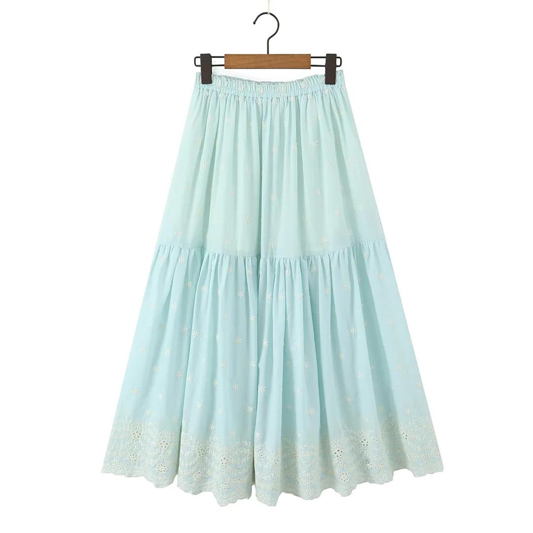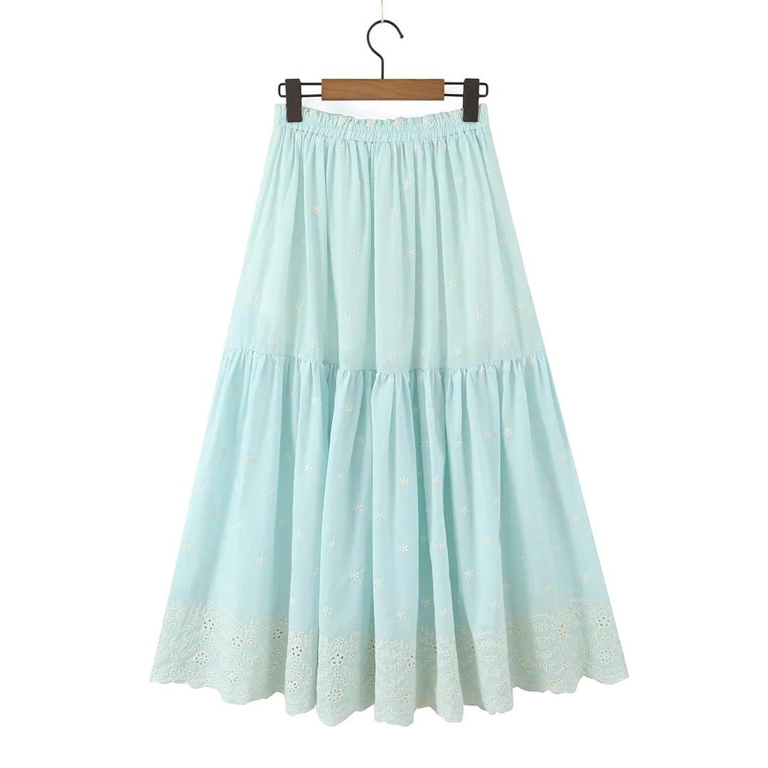 Viaje Suave Cuello Redondo Sin Mangas Chaleco Bordado Cintura Loof Costuras Encaje Vacaciones en la Playa Vestido Largo traje