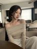 Camiseta de manga larga Spice Girl con hombros descubiertos y diseño adelgazante, ajustada y combinable con todo, de otoño, estilo Pure Desire Niche Ins.