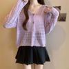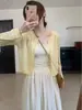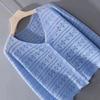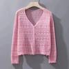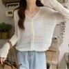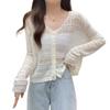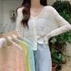 Cárdigan de Punto Calado para Mujer Verano Suéter Tirantes Exterior Chaqueta Fina Protección Solar Blusa Manga Larga Cuello en V Top