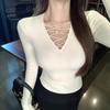 Camiseta de manga larga ajustada para mujer, top corto interior, camisa básica de cuello medio alto y hueco, nueva primavera de 2025