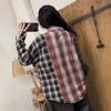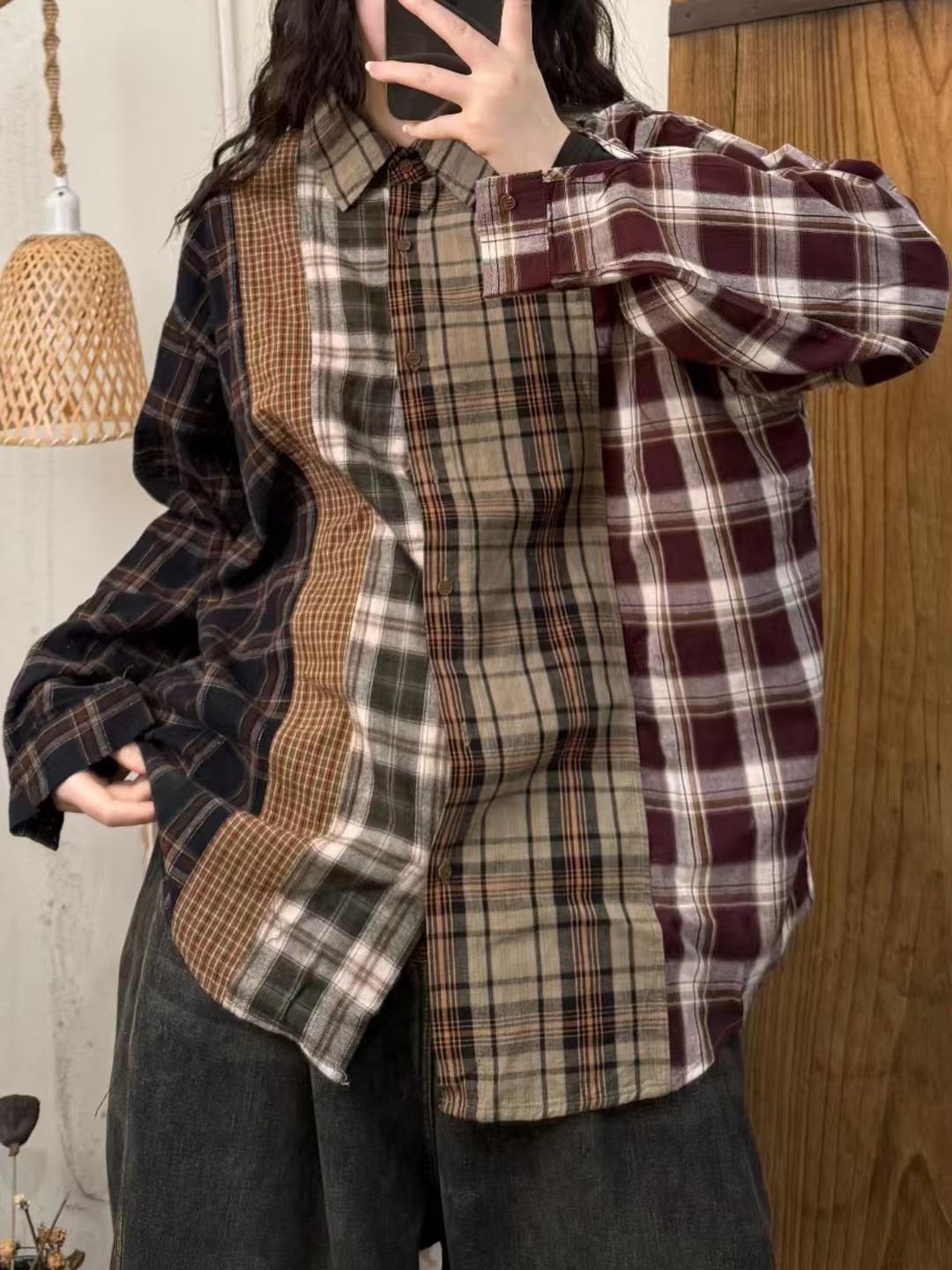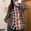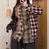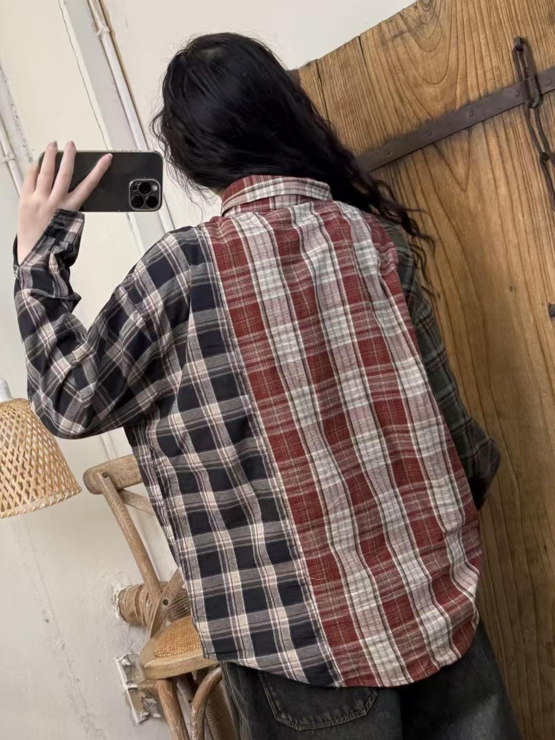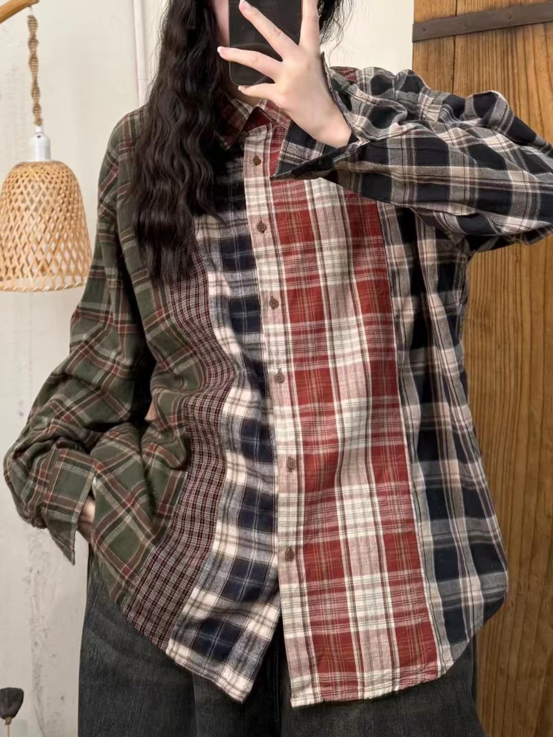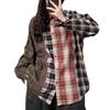 Camisa a cuadros con bloques de color de algodón retro artístico para mujer, primavera 2025, nuevo cárdigan holgado con diseño combinable