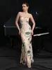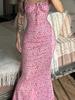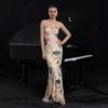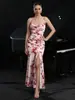 Amazon Verano Nuevo Vestido Europeo y Americano Sexy Elegante Estampado con Volantes Espalda Descubierta Vacaciones en la Playa Vestido Slip