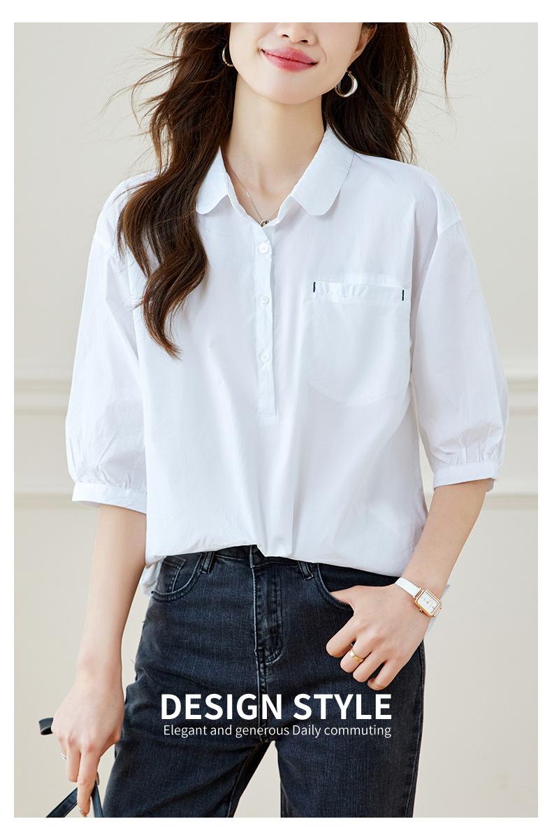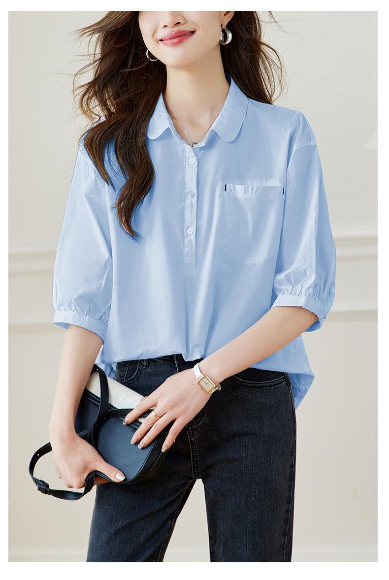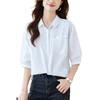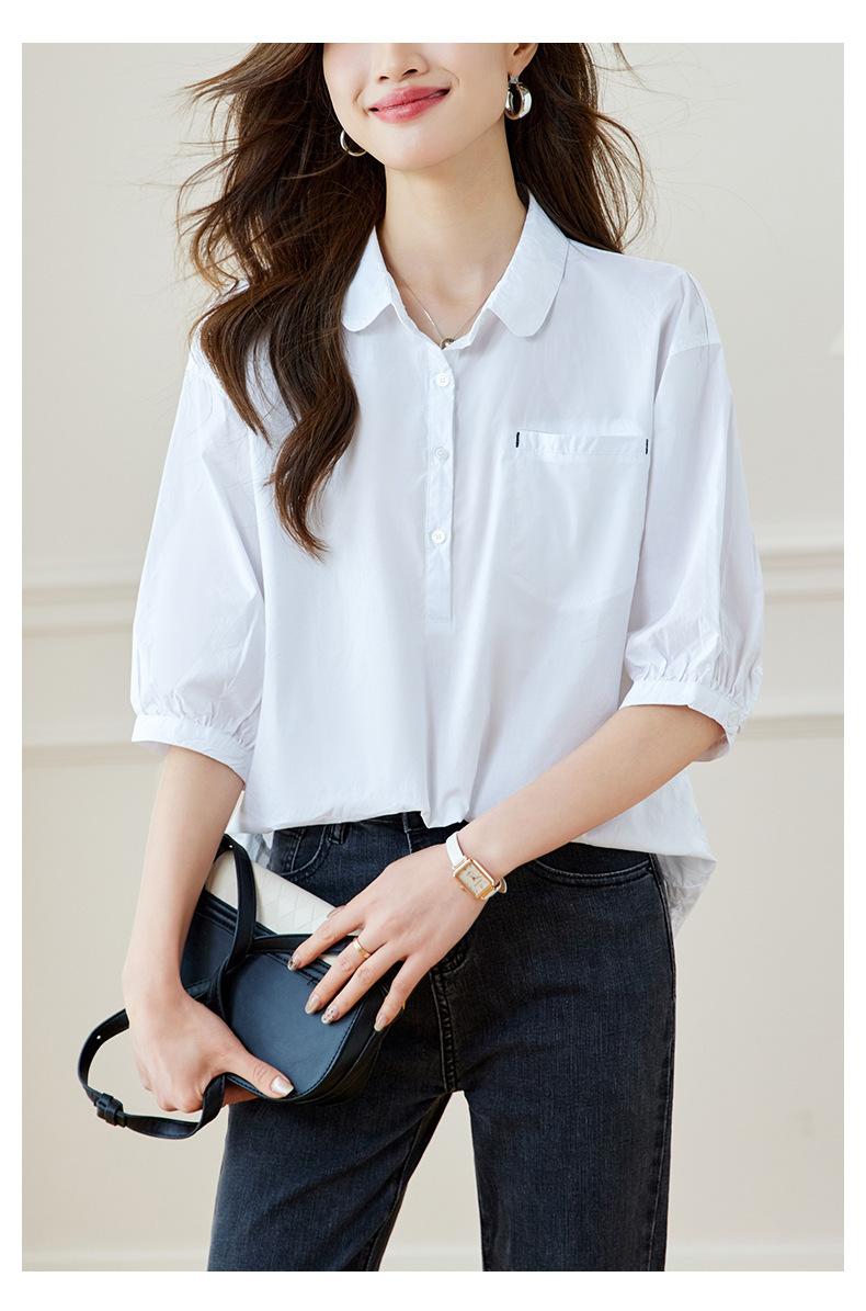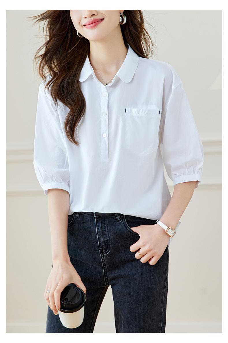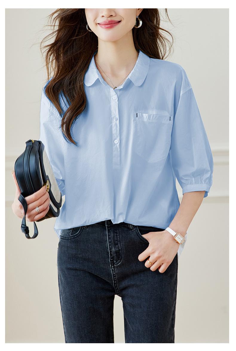 Camisa retro estilo Hong Kong de algodón Cocoon para mujer, verano 2025, nuevo diseño de color sólido, estilo básico elegante y combinable.