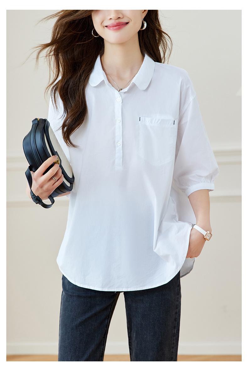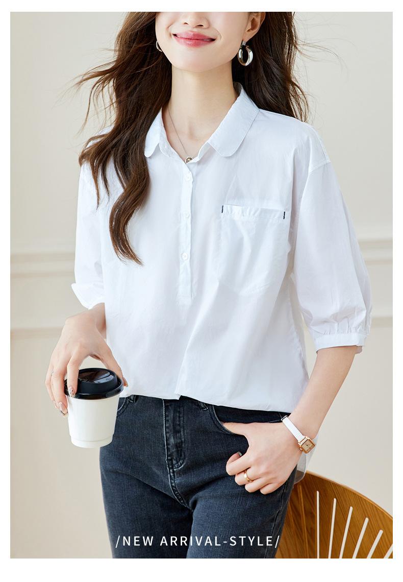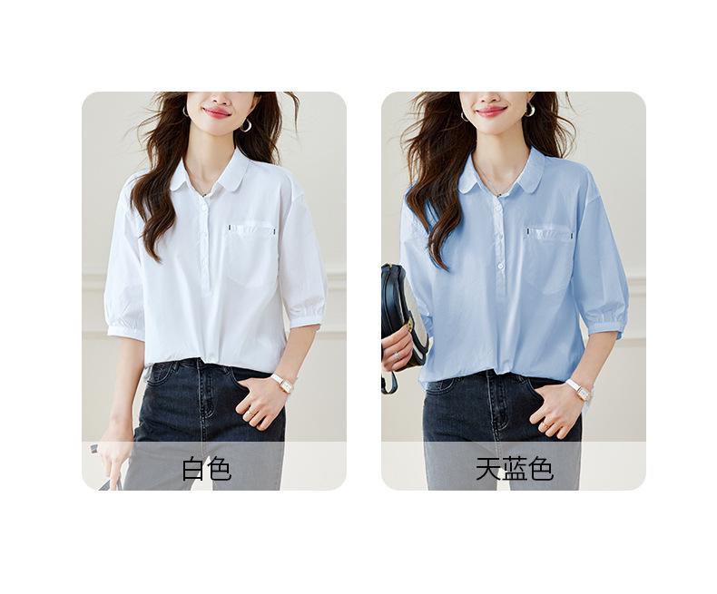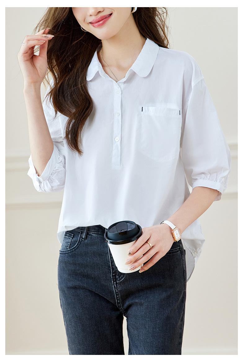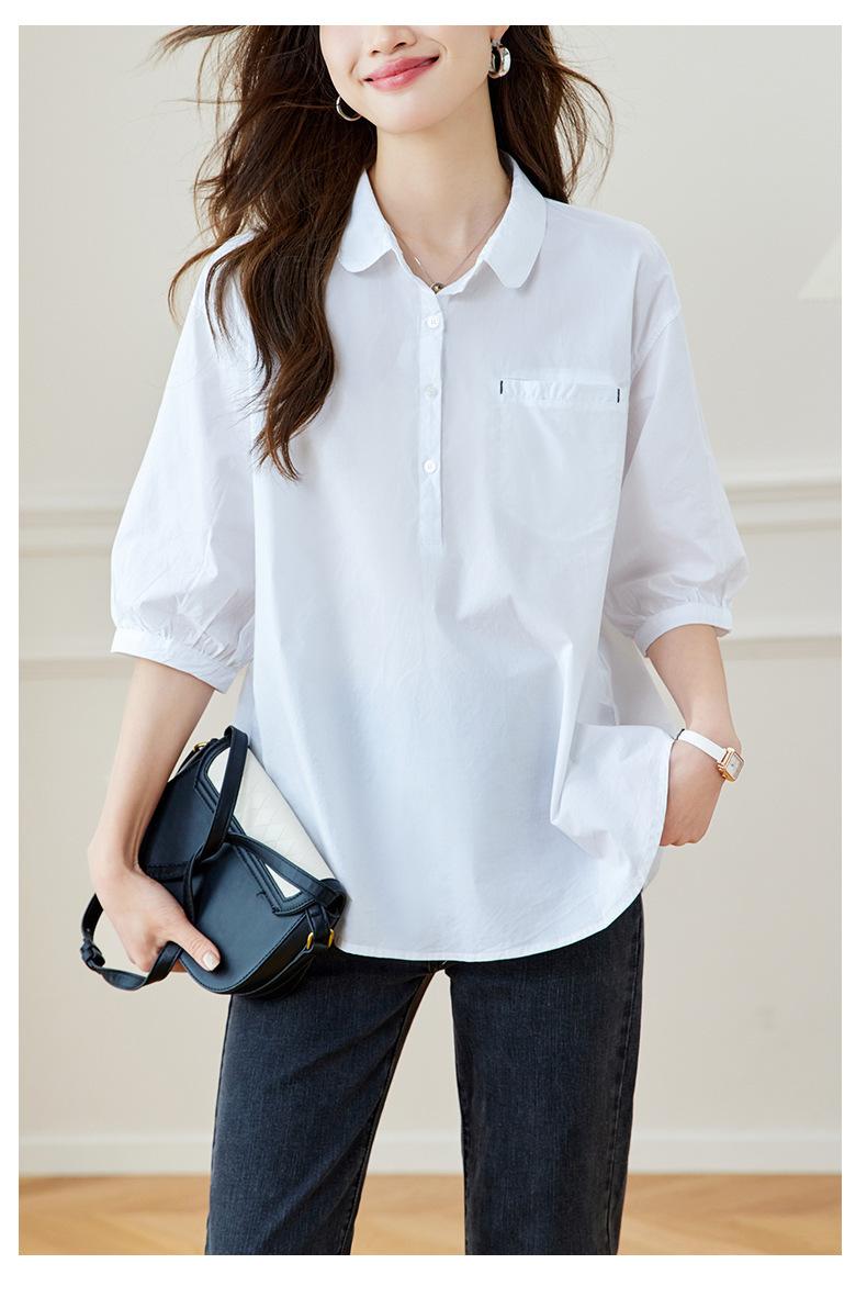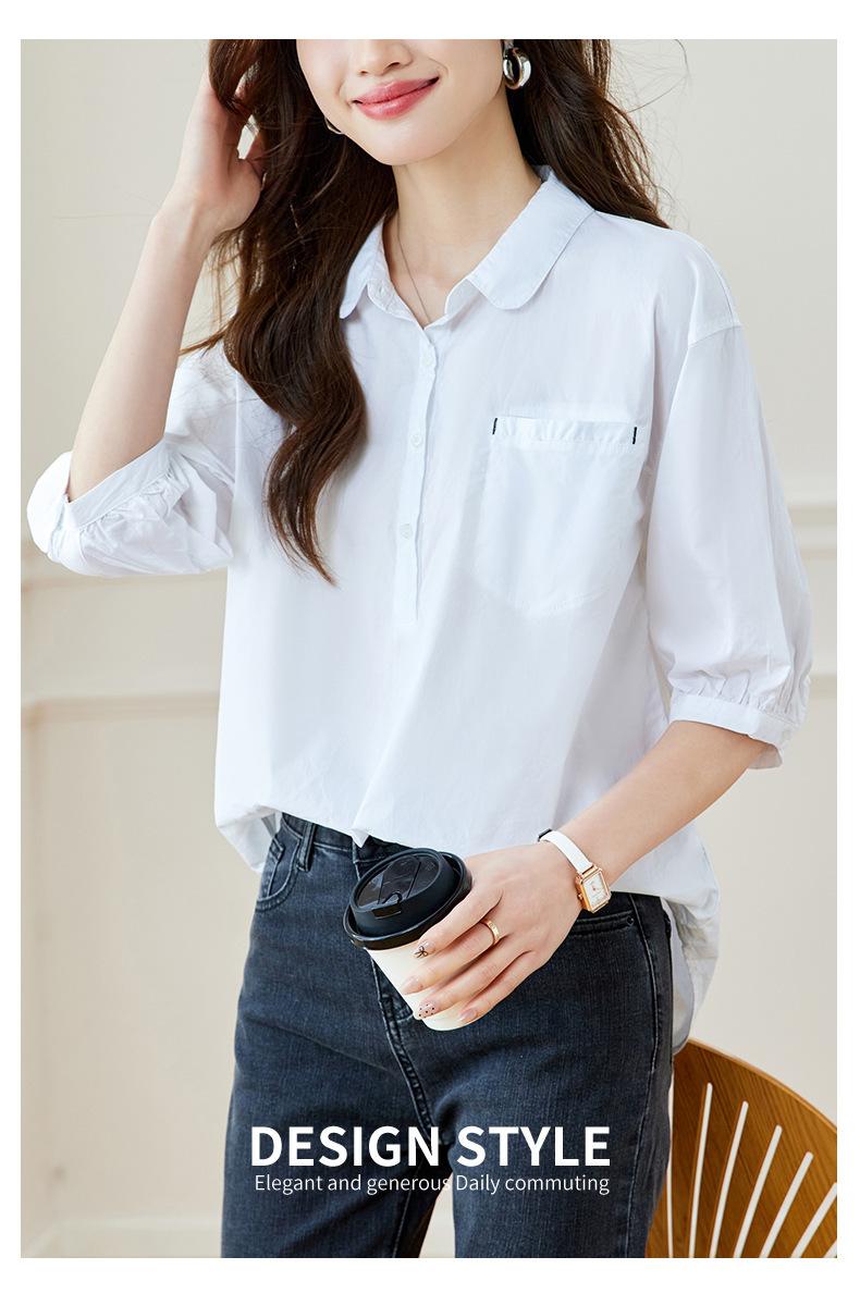Camisa retro estilo Hong Kong de algodón Cocoon para mujer, verano 2025, nuevo diseño de color sólido, estilo básico elegante y combinable.