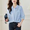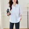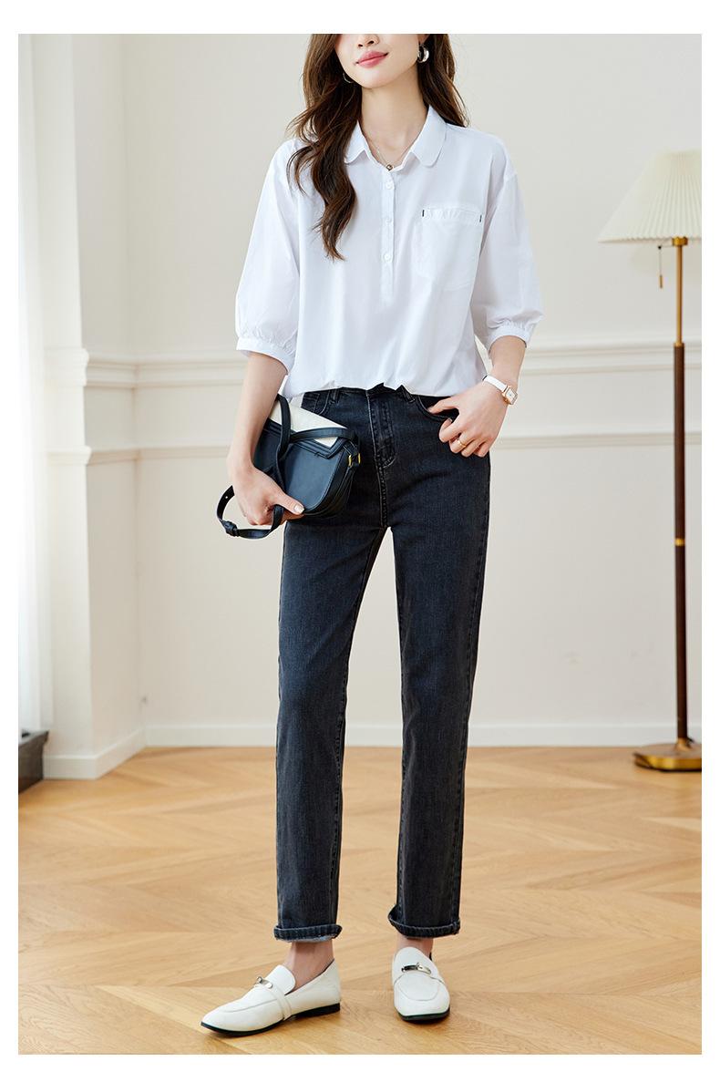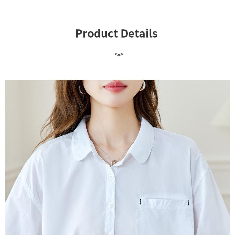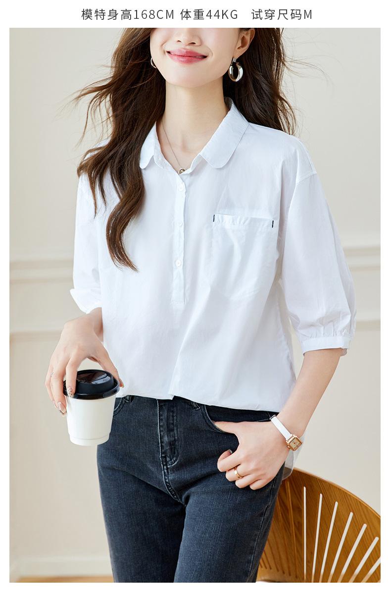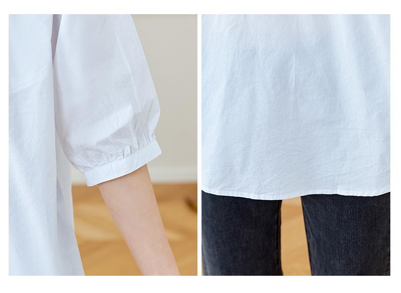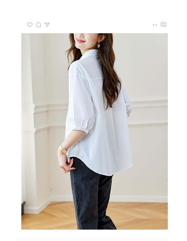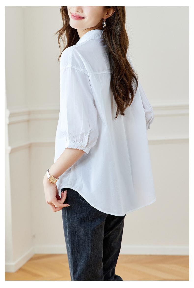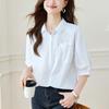 Camisa retro estilo Hong Kong de algodón Cocoon para mujer, verano 2025, nuevo diseño de color sólido, estilo básico elegante y combinable.