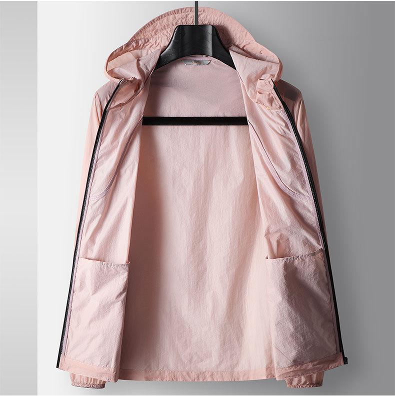 Traje de protección solar para mujer, primavera y verano 2025, color puro, con capucha y cremallera, edición ligera, de lujo, informal, para exteriores, ligero, transpirable, ropa de piel