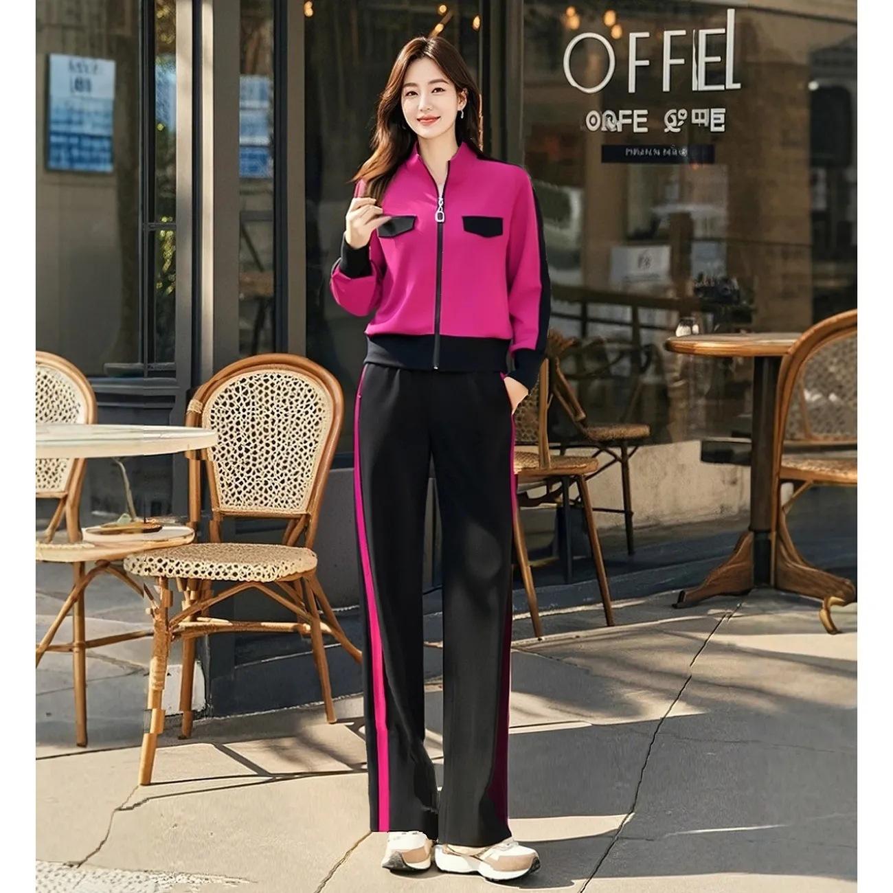 Traje informal de nueva moda europea para mujer, conjunto de dos piezas de suéter y pantalones con cuello a juego de colores deportivos de otoño de 2024 para mujer