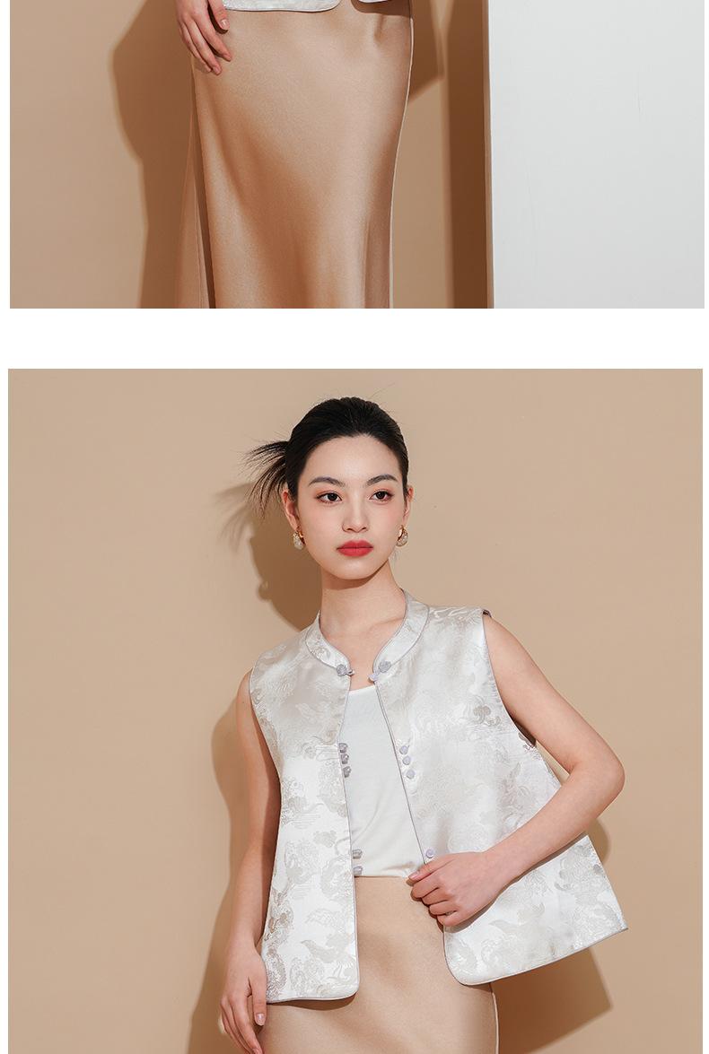 Abrigo Chaleco de Estilo Chino Nuevo para Mujer 2025 Primavera y Otoño Abrigo Jacquard Sentido de Alta Gama Nicho Exterior Abrigo Chaleco