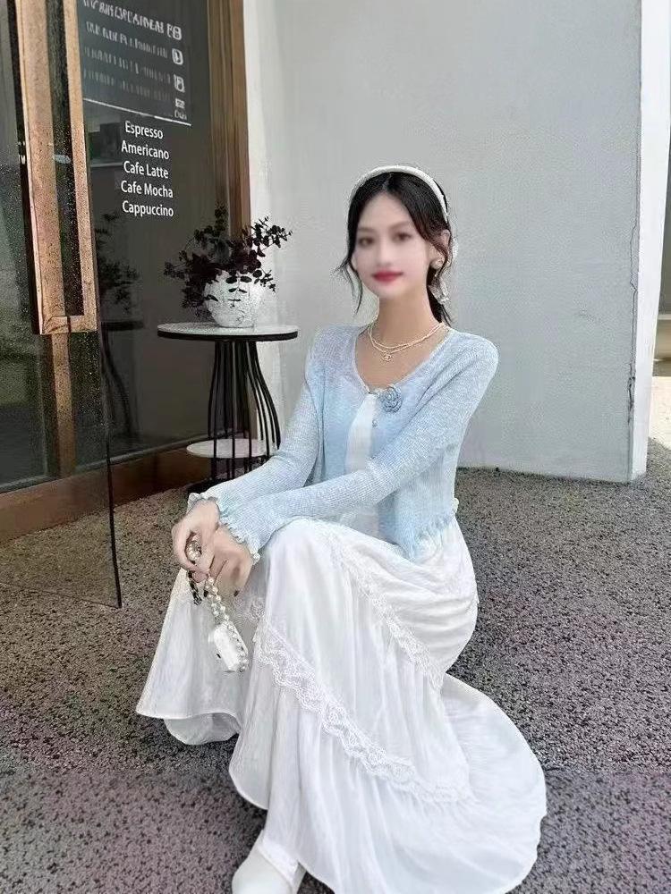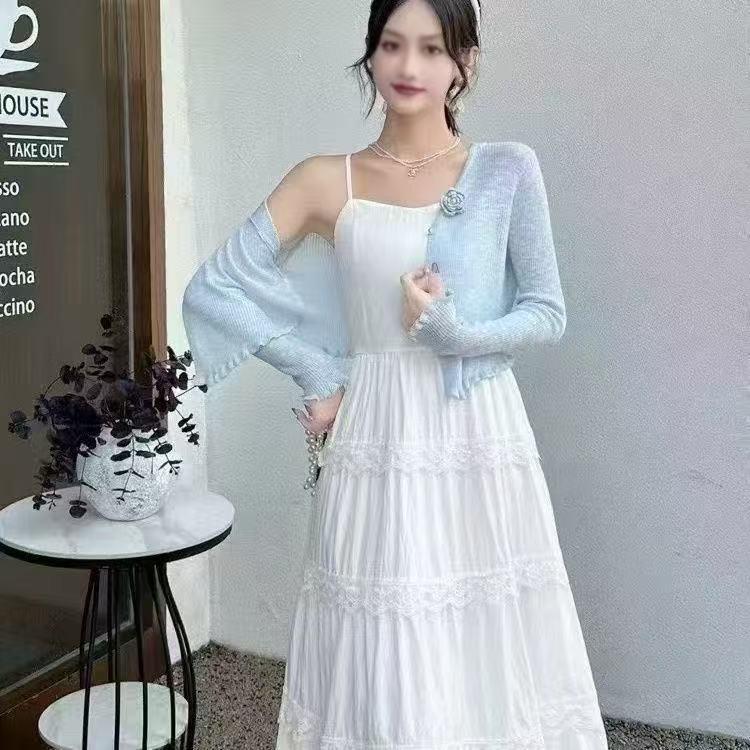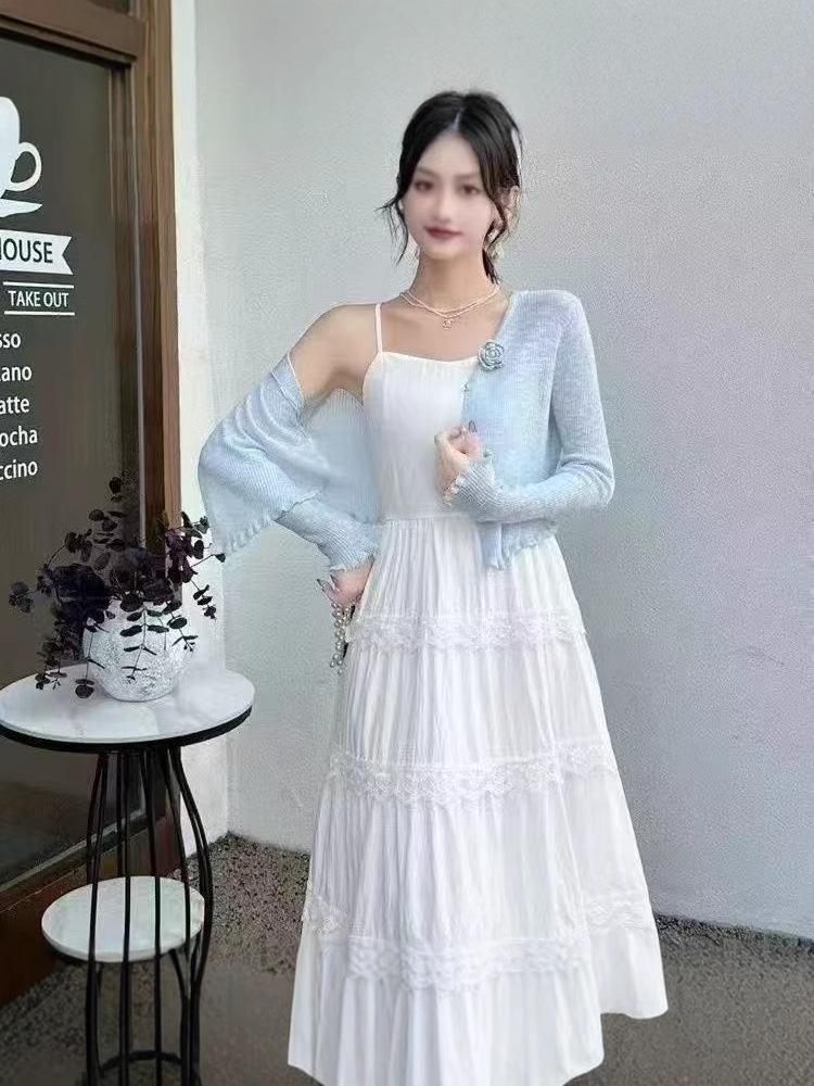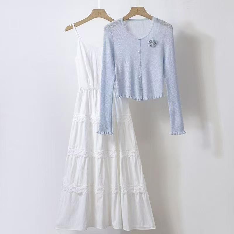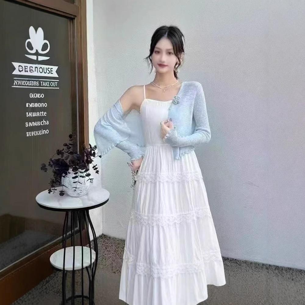 Falda de Tirantes Super de Hada Traje de Dos Piezas Chaqueta de Punto Vestido para Mujer Primavera y Verano Nuevo Traje de Moda Falda