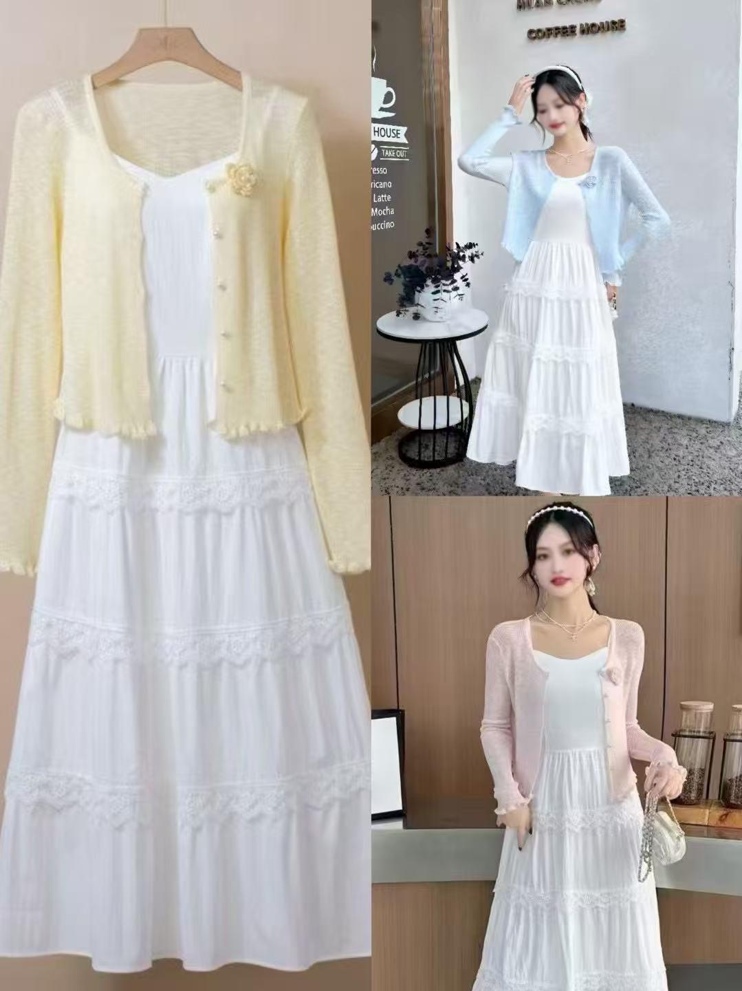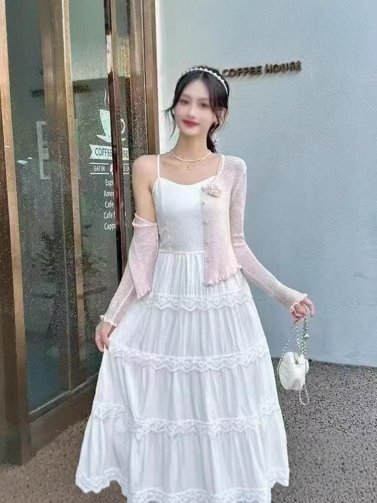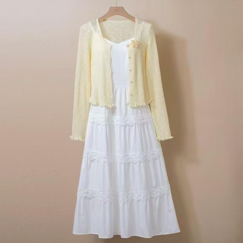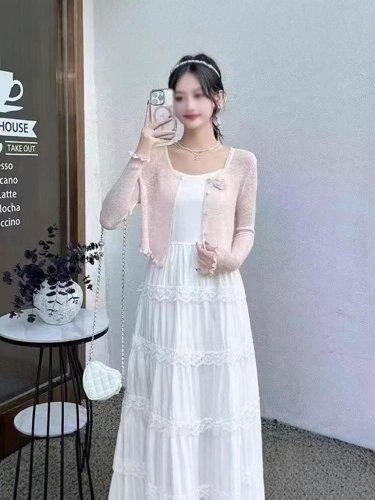 Falda de Tirantes Super de Hada Traje de Dos Piezas Chaqueta de Punto Vestido para Mujer Primavera y Verano Nuevo Traje de Moda Falda