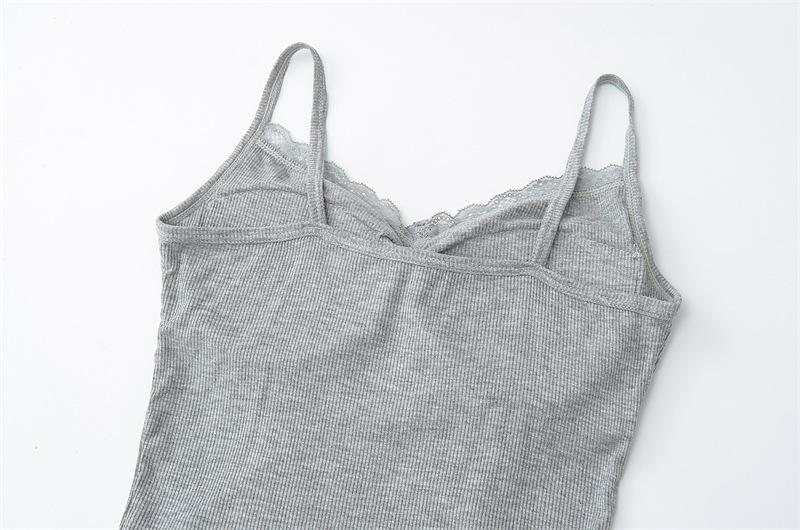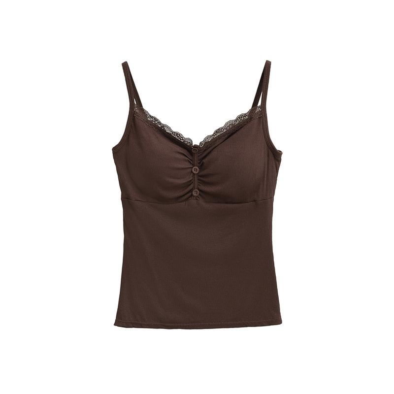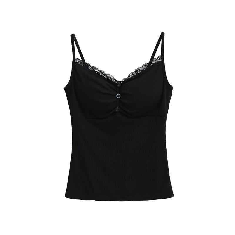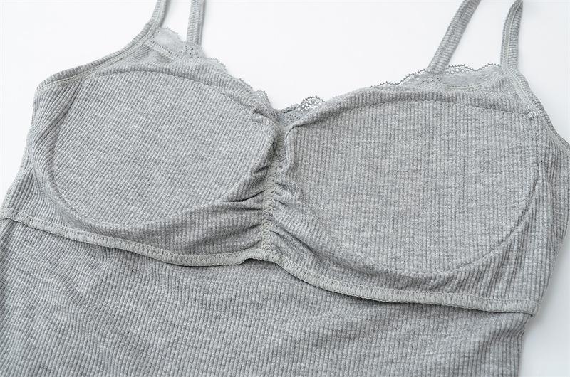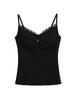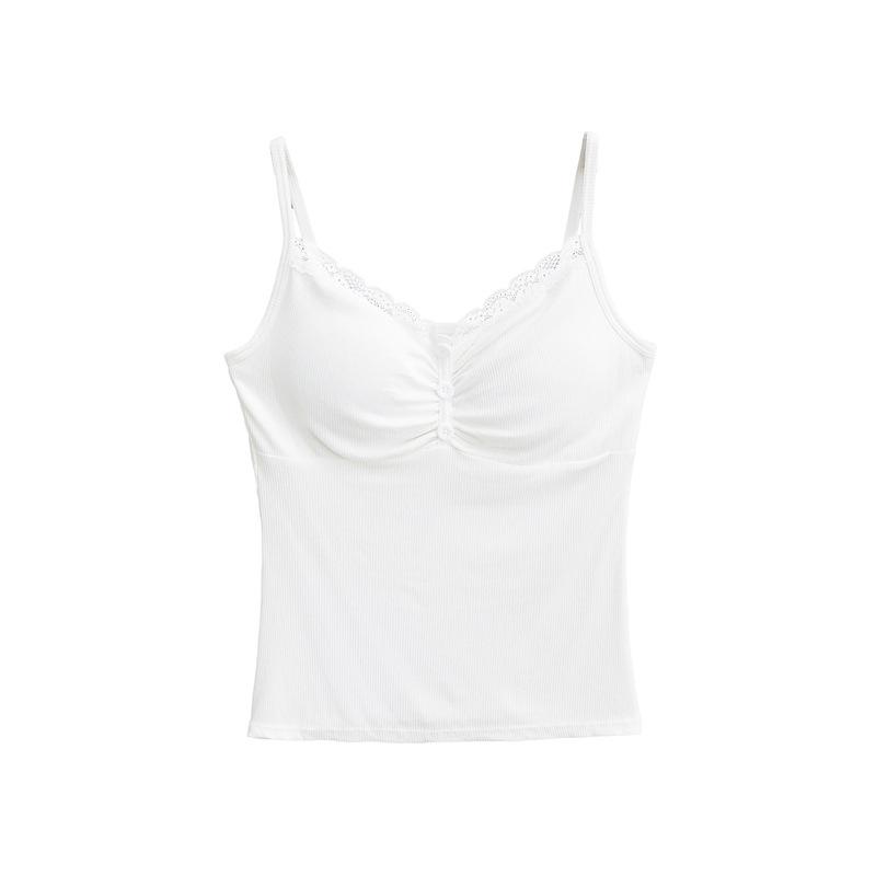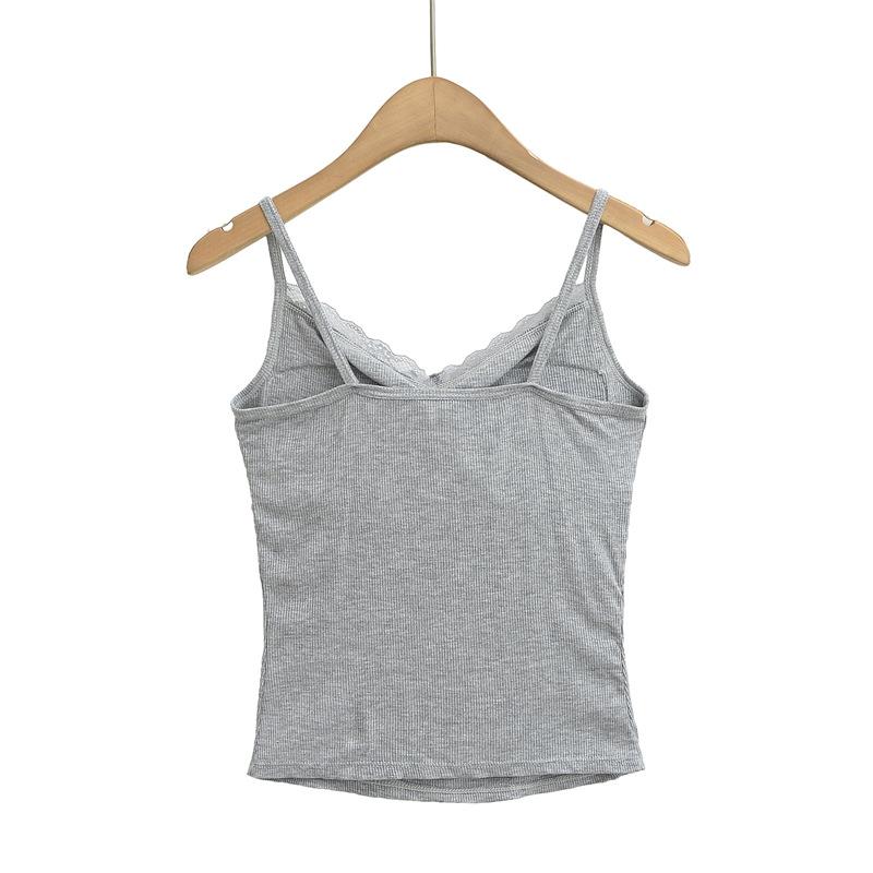 Camisola de Encaje Plisado con Cuello en V Estilo Lujuria Pura Verano Nuevo Ajustado Corto Sexy Top Básico para Mujer