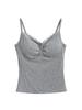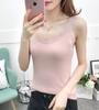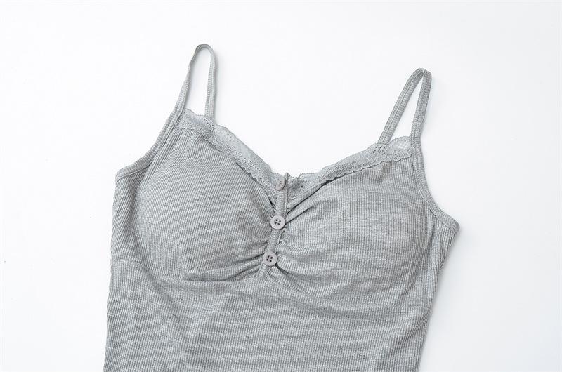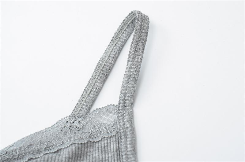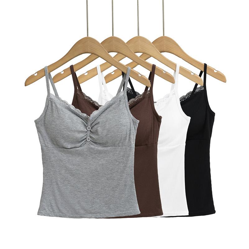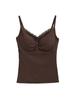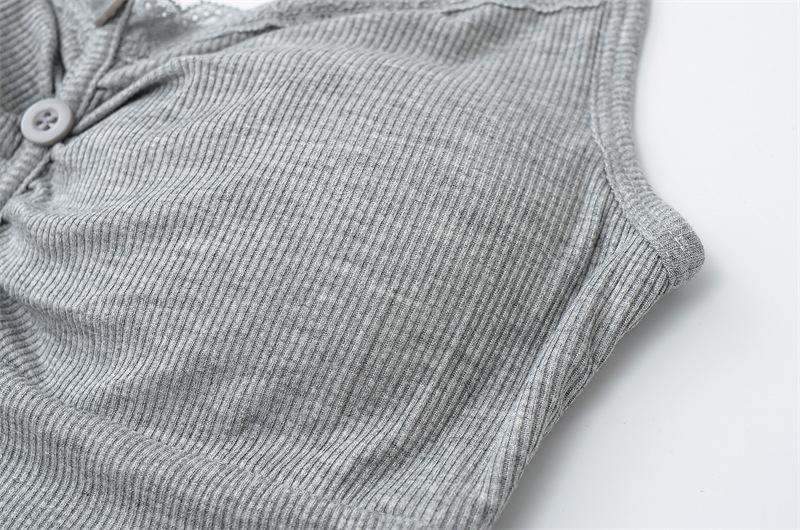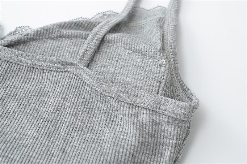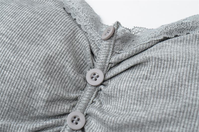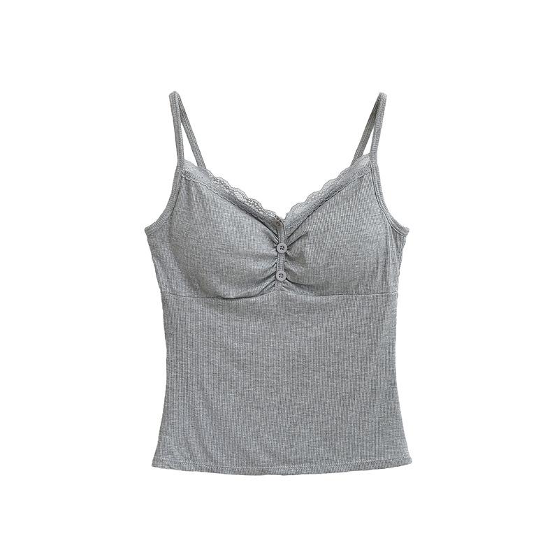 Camisola de Encaje Plisado con Cuello en V Estilo Lujuria Pura Verano Nuevo Ajustado Corto Sexy Top Básico para Mujer