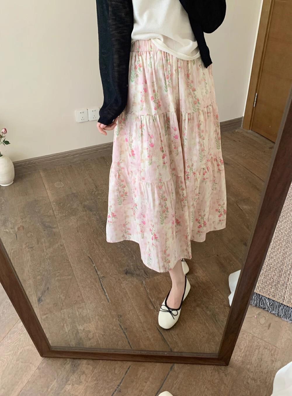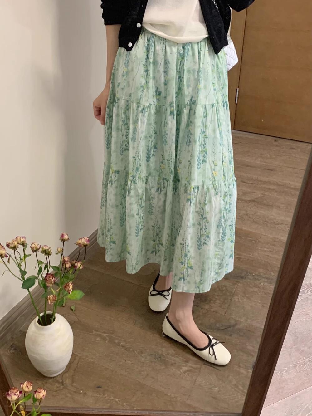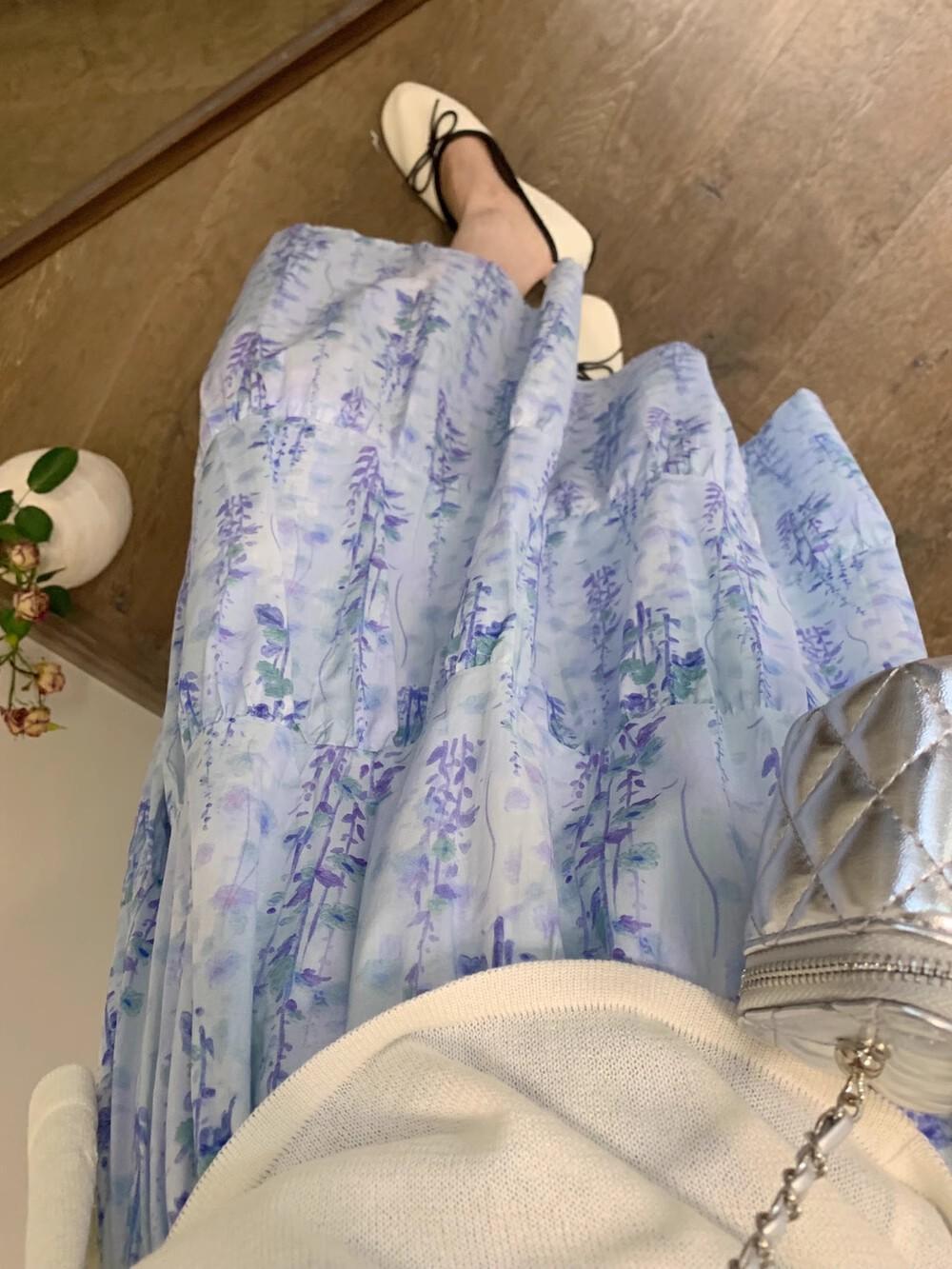 Falda plisada floral para mujer en verano elástica cintura alta adelgazante falda A-line midi versátil caída falda amplia