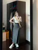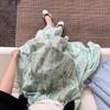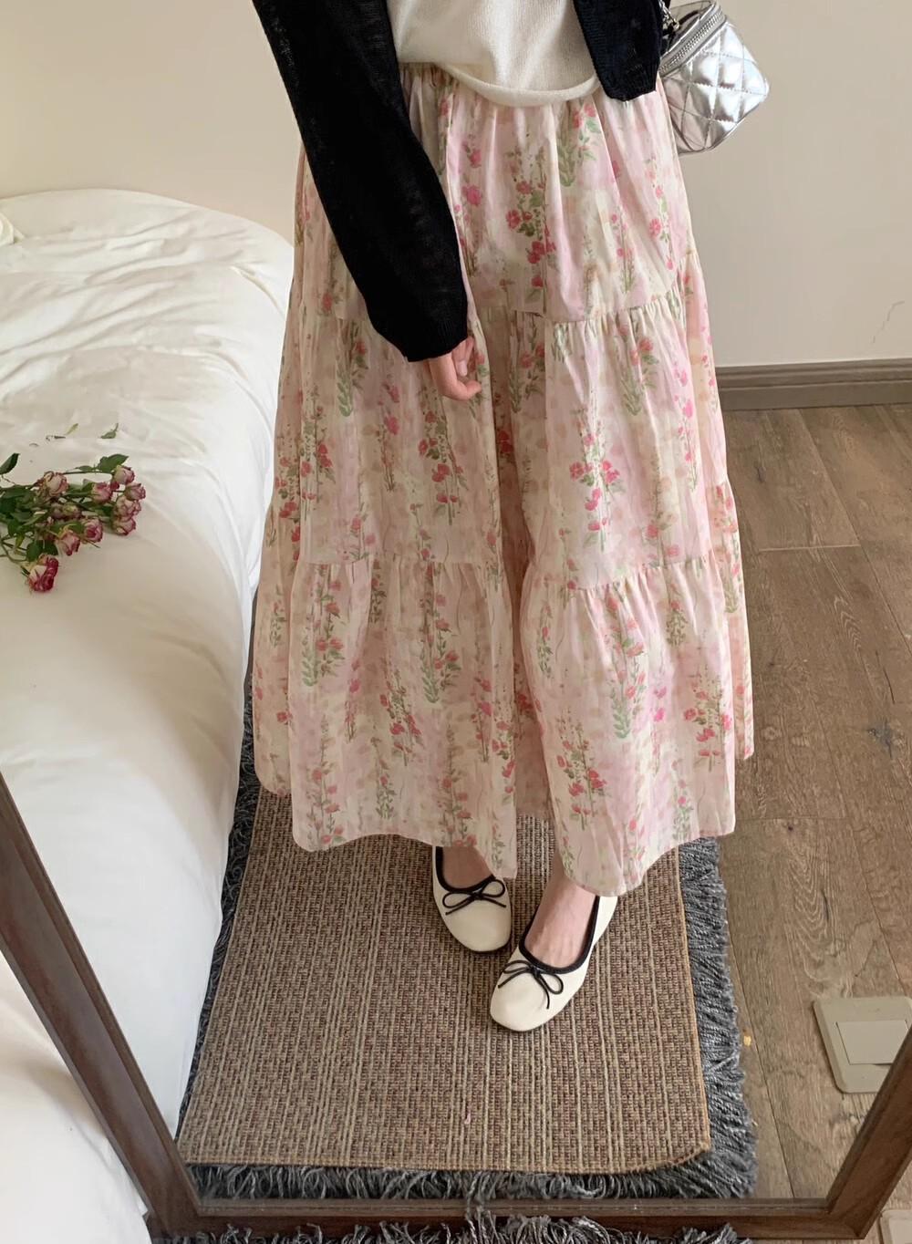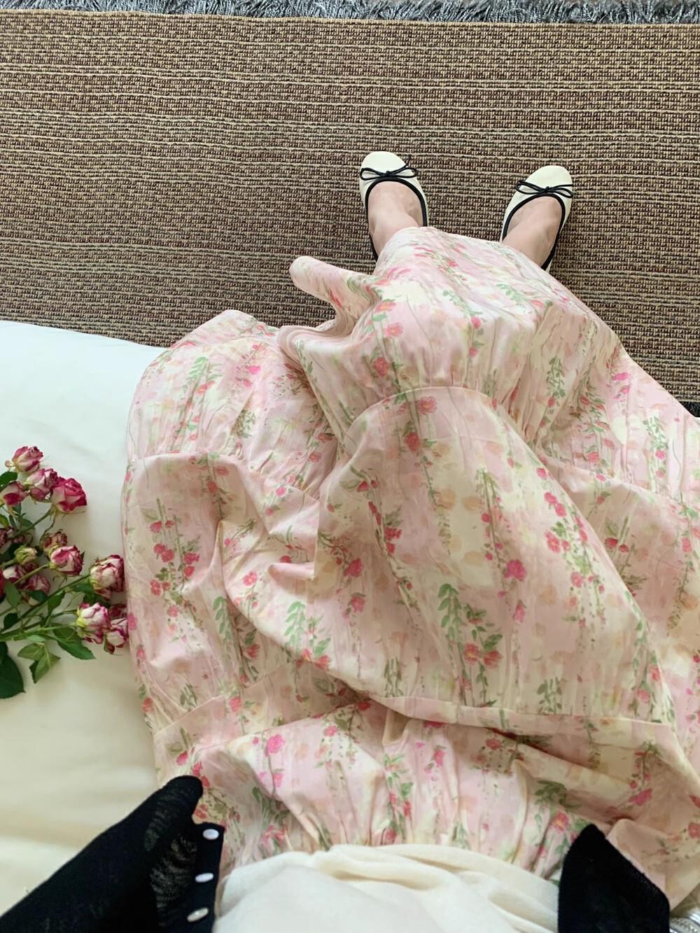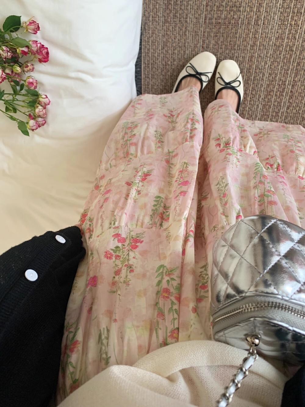 Falda plisada floral para mujer en verano elástica cintura alta adelgazante falda A-line midi versátil caída falda amplia
