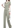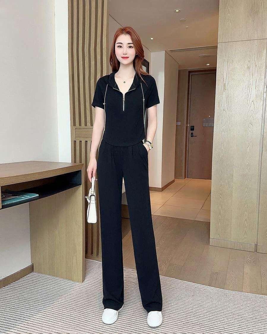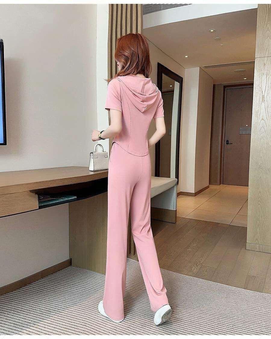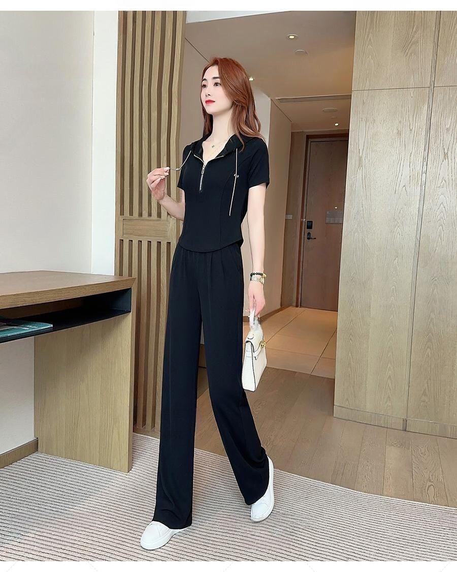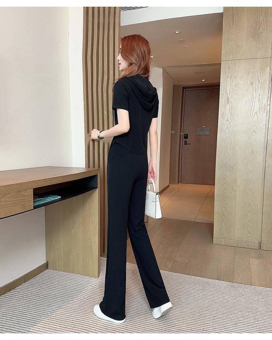 Conjunto deportivo informal de dos piezas para mujer, de verano, fino, elegante, de seda helada, con pierna ancha, 2024