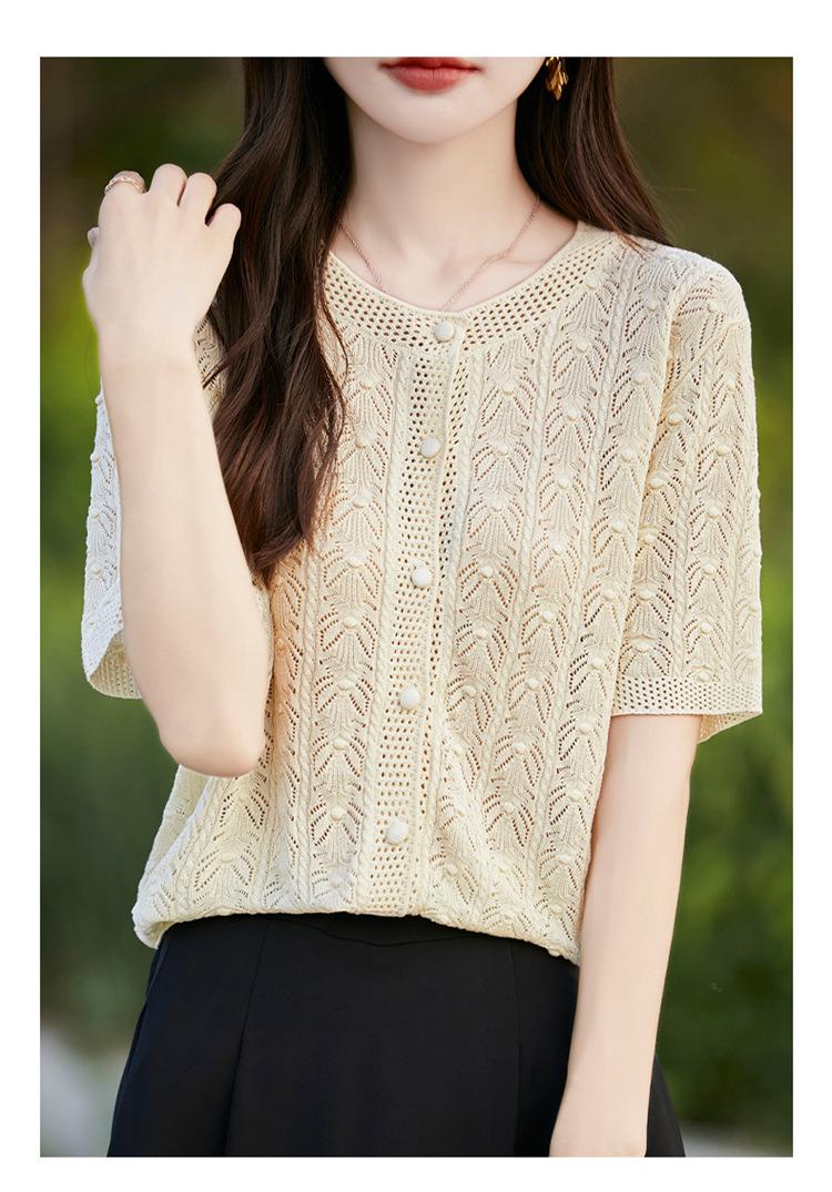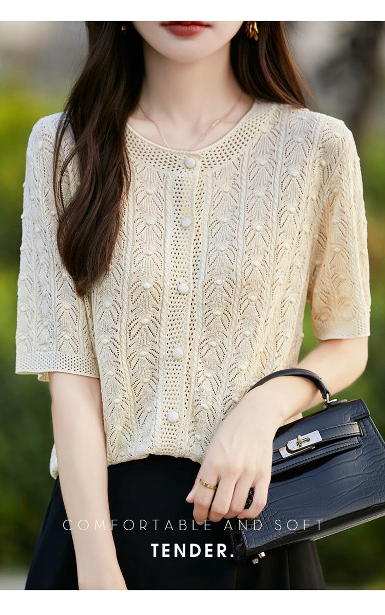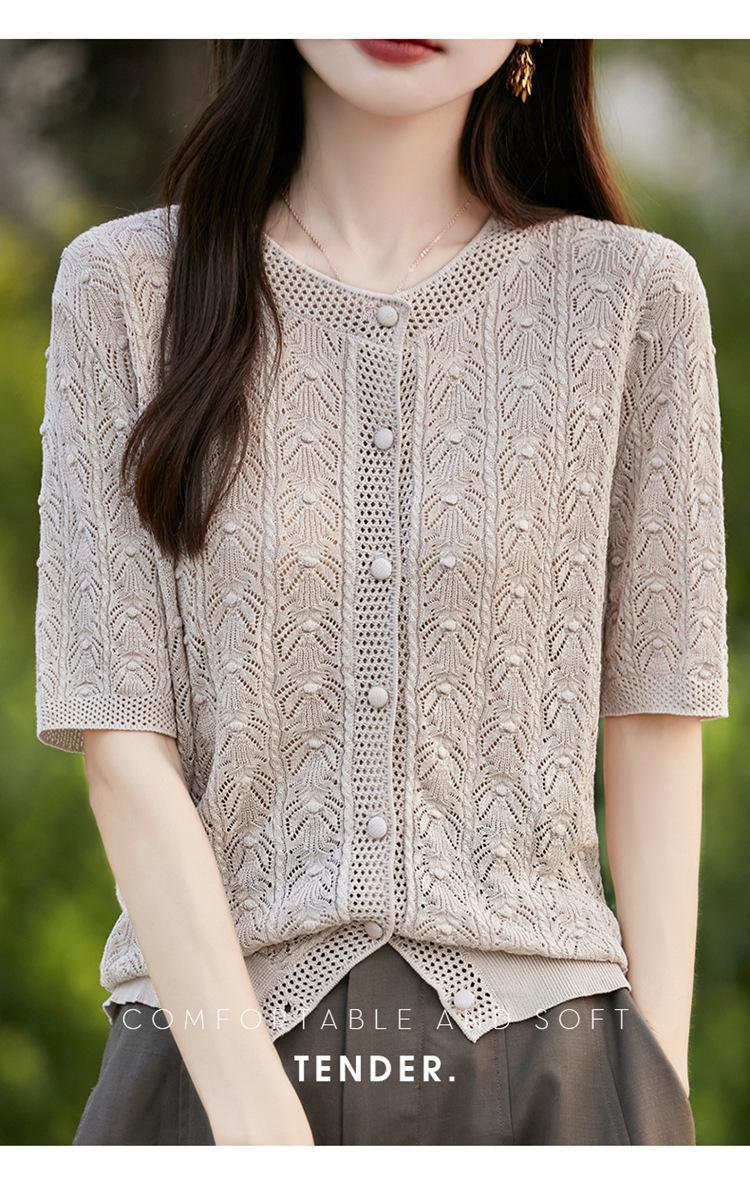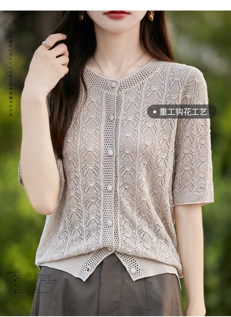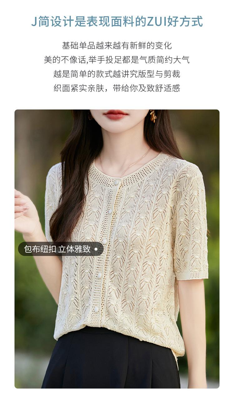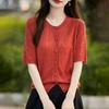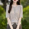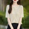 Top de Falda Exterior de Verano de Manga Corta 2025 Chaqueta Holgada Chal Cuello Redondo Cárdigan de Perlas de Seda para Mujer
