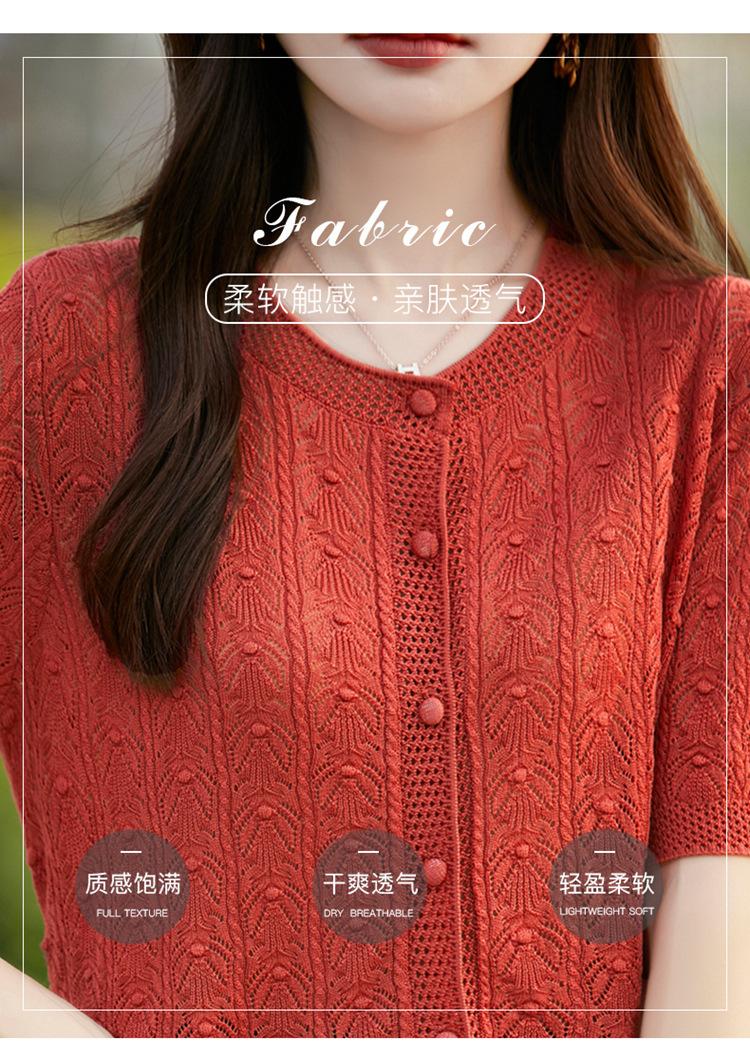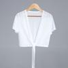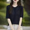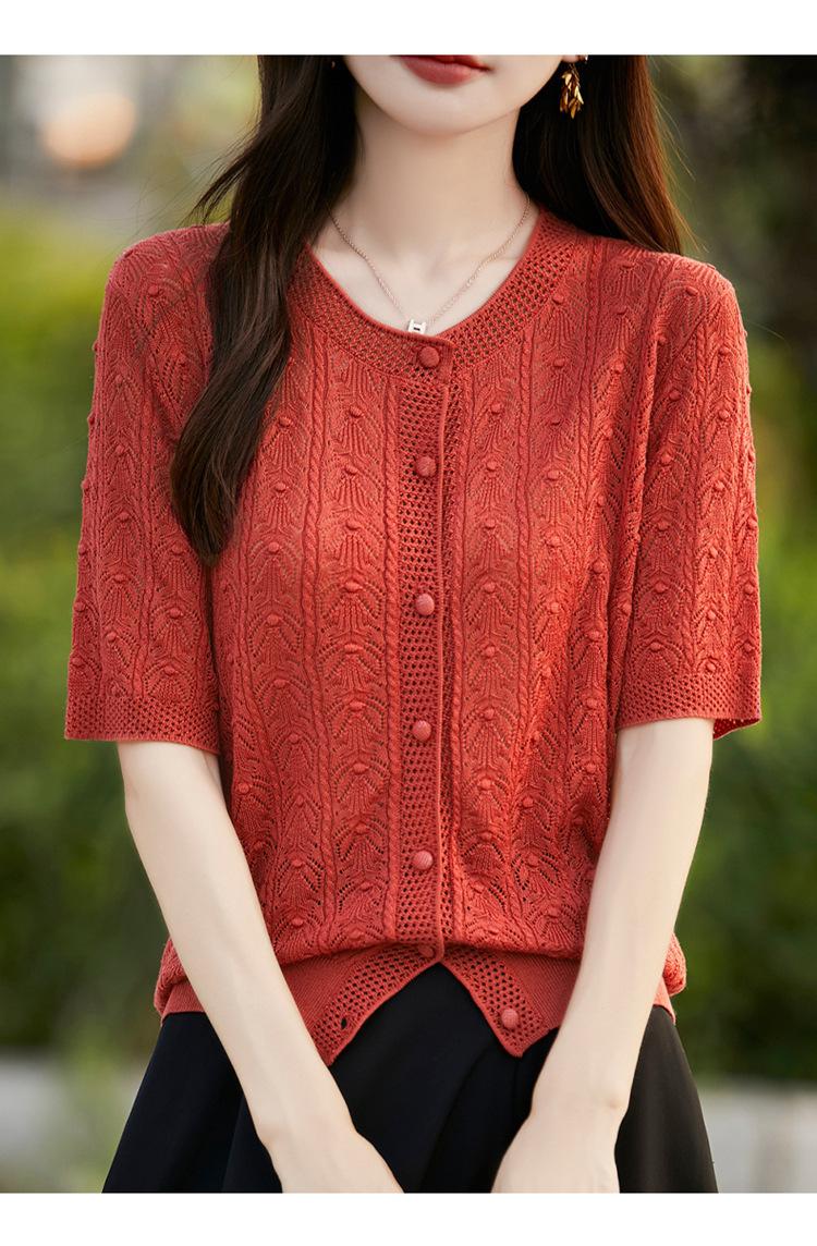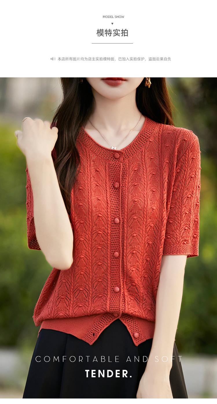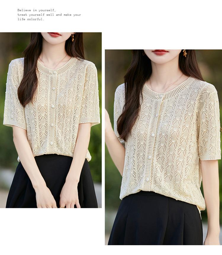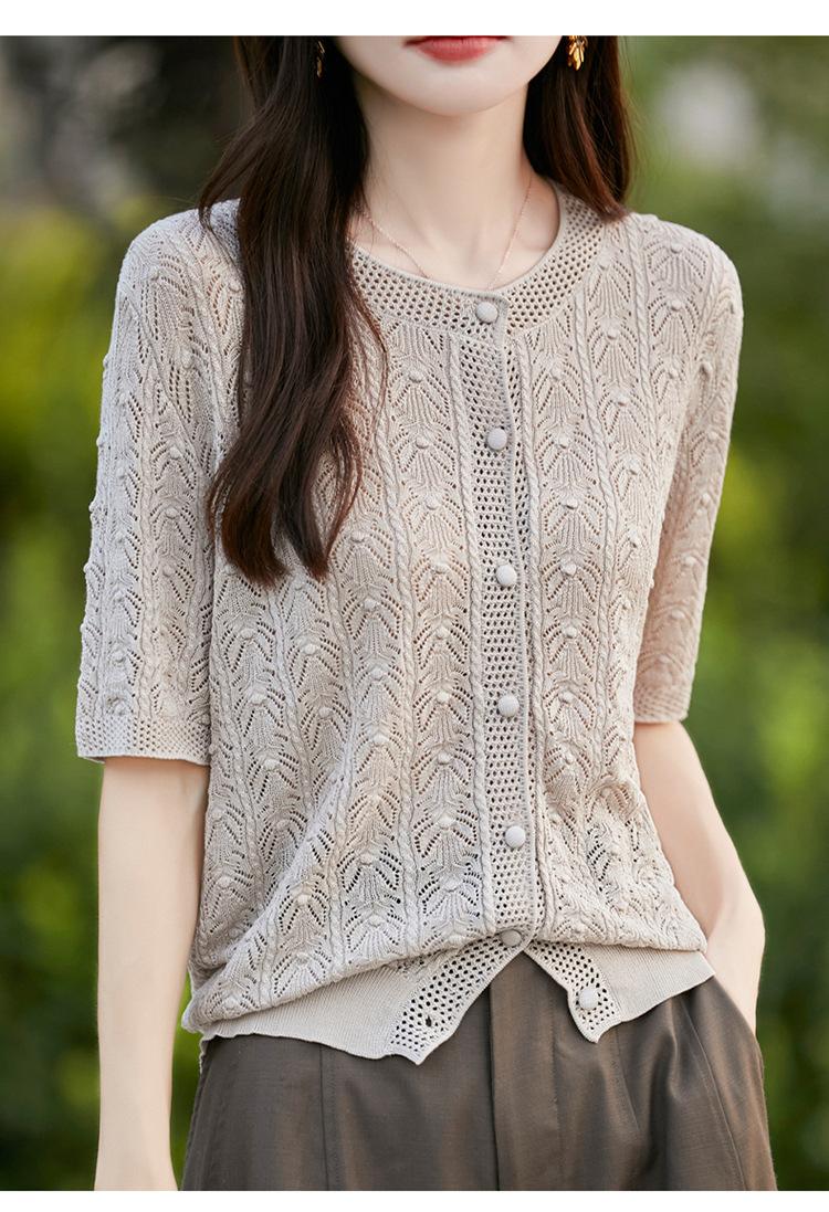 Top de Falda Exterior de Verano de Manga Corta 2025 Chaqueta Holgada Chal Cuello Redondo Cárdigan de Perlas de Seda para Mujer