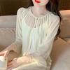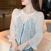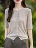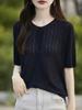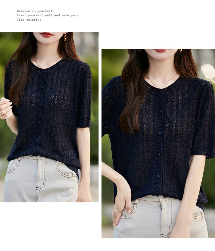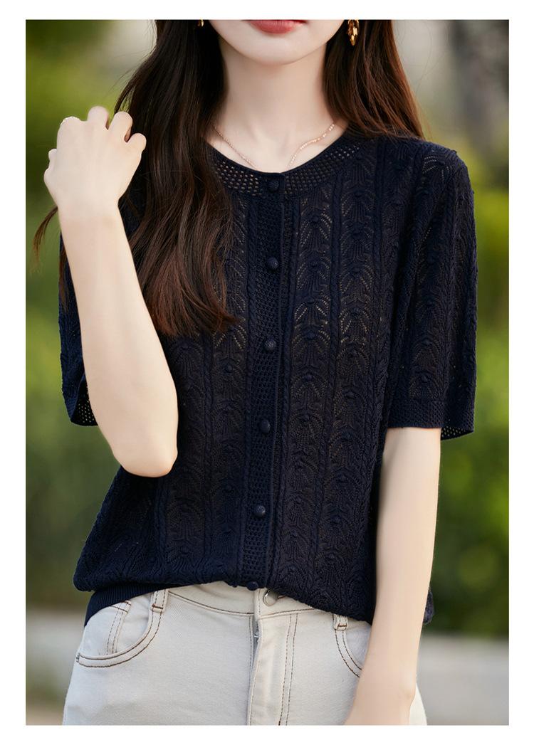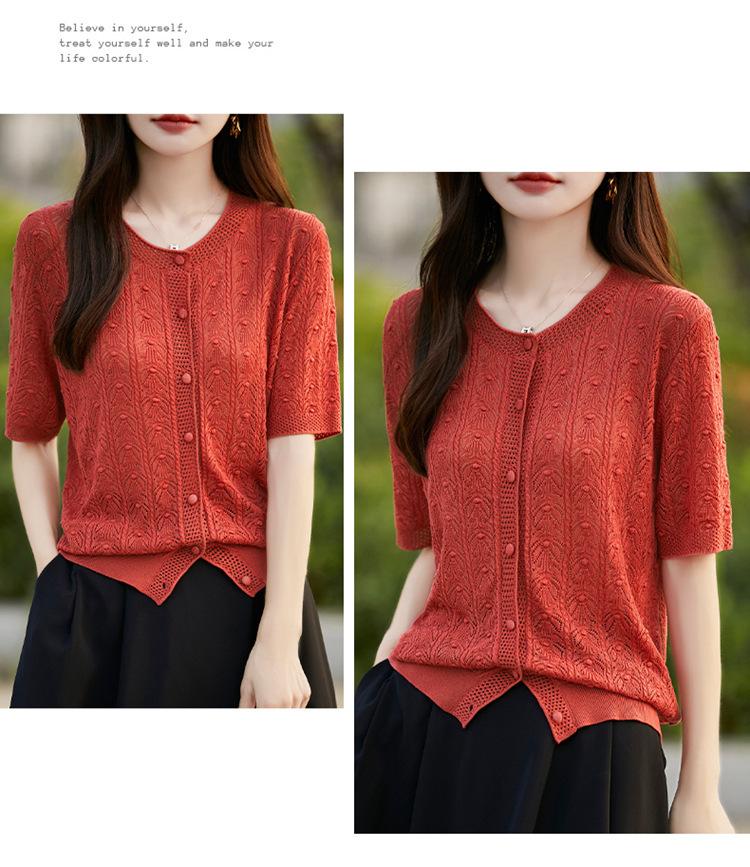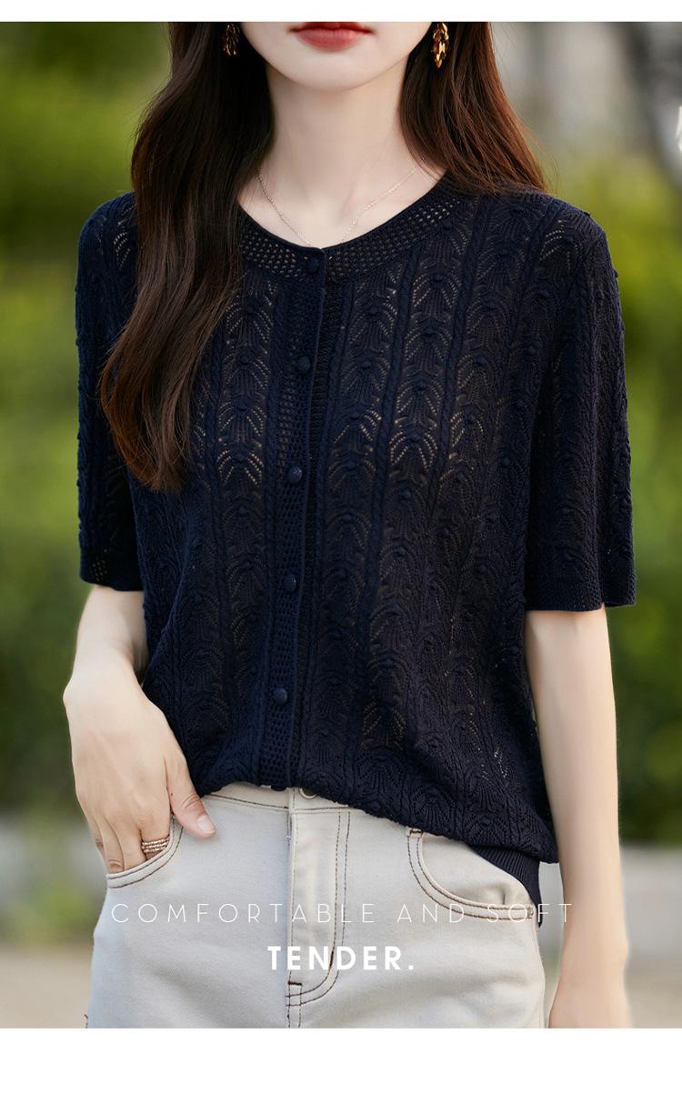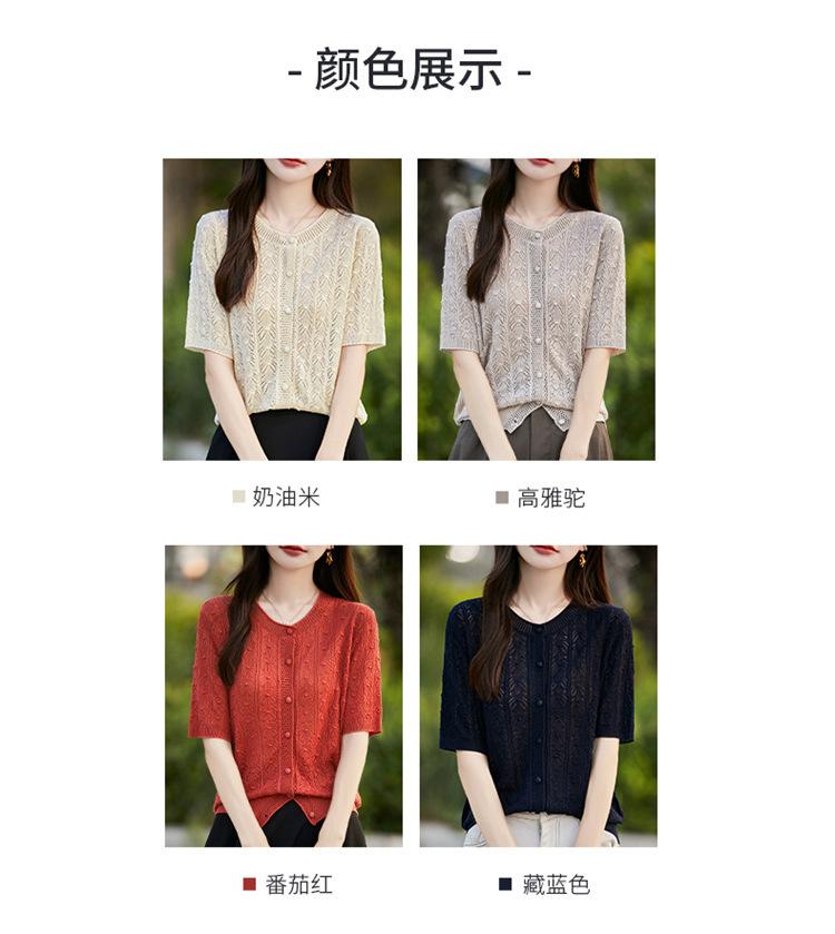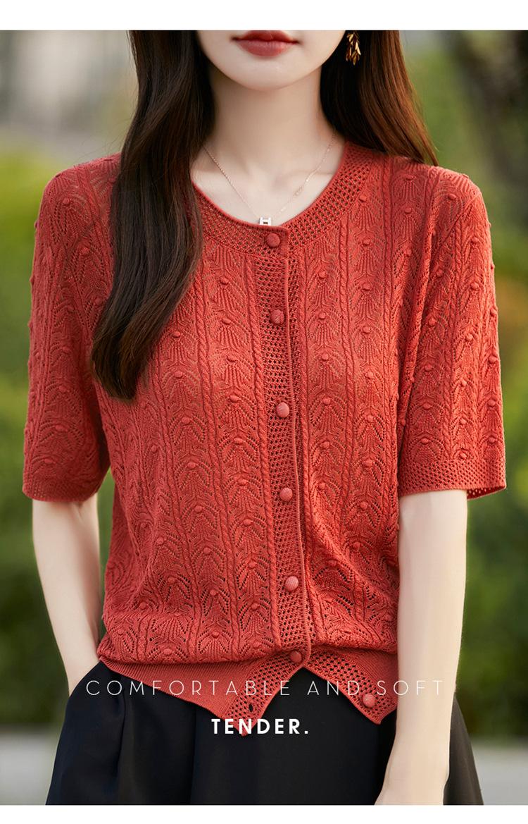 Top de Falda Exterior de Verano de Manga Corta 2025 Chaqueta Holgada Chal Cuello Redondo Cárdigan de Perlas de Seda para Mujer