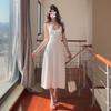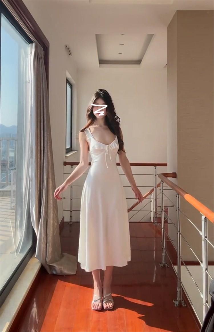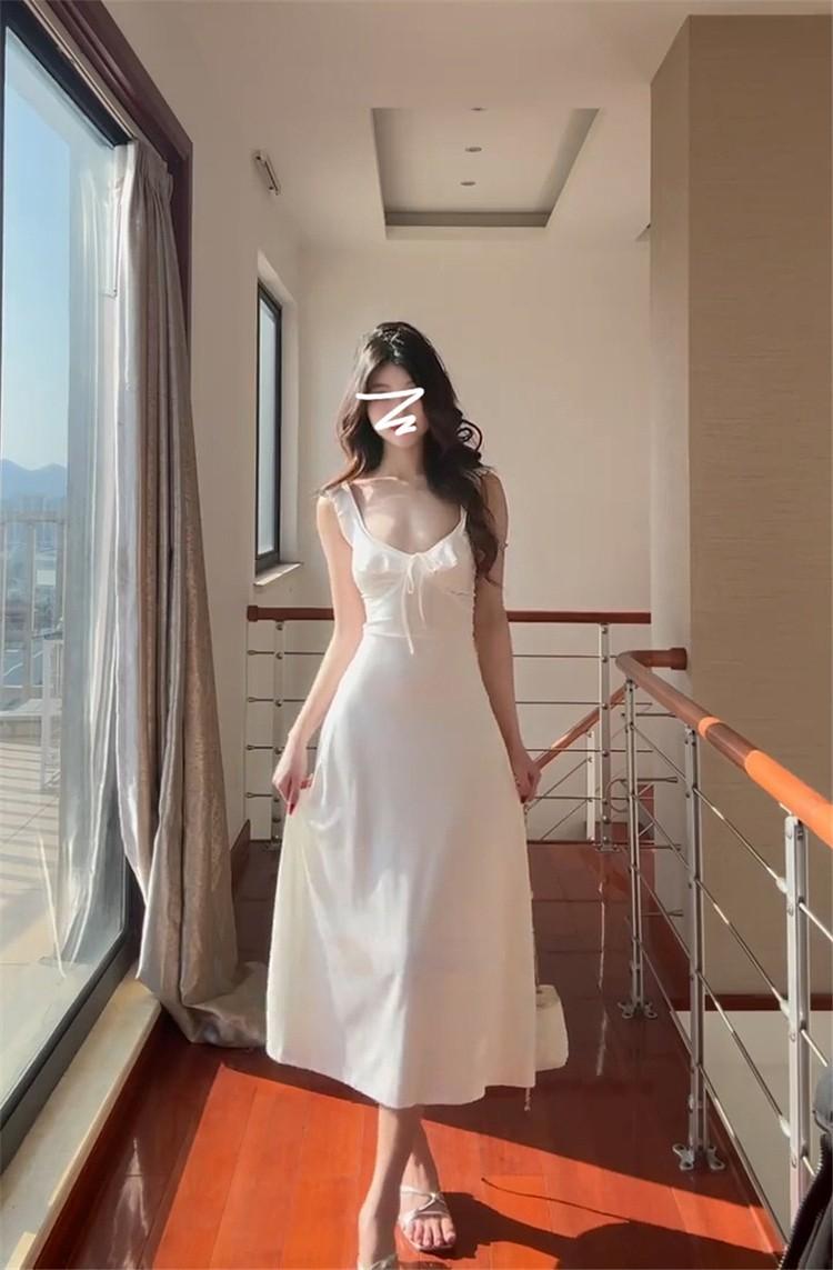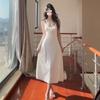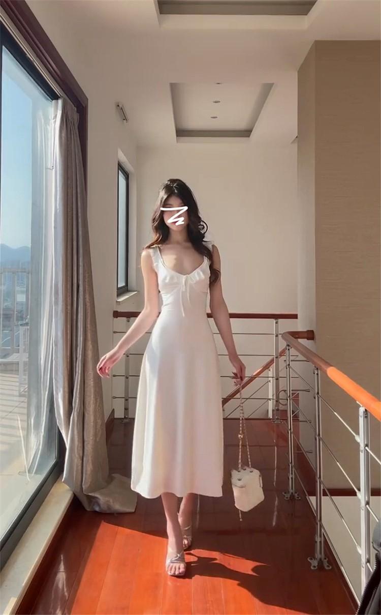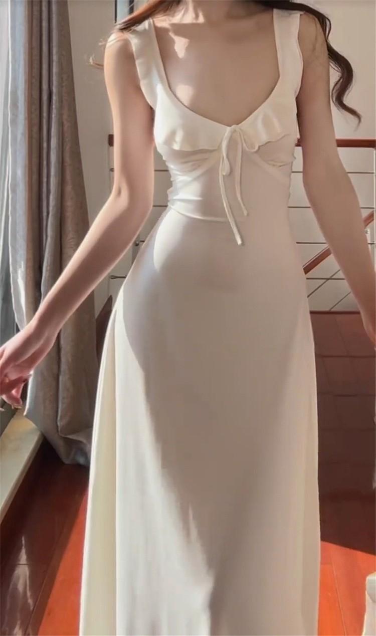 Vestido Blanco Sexy con Tirantes y Espalda Descubierta para Mujer Verano 2025 Nuevo Estilo Resort Costero Hermosa Falda Larga