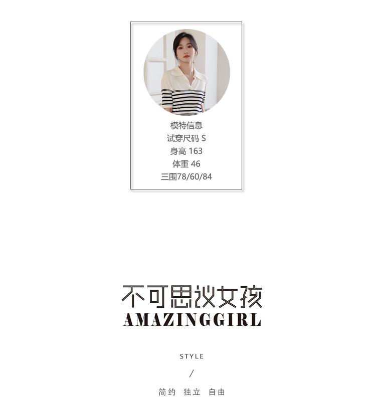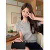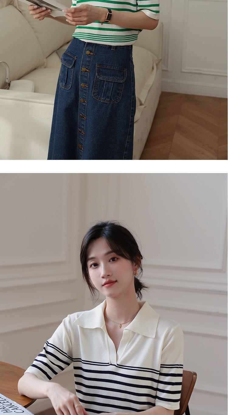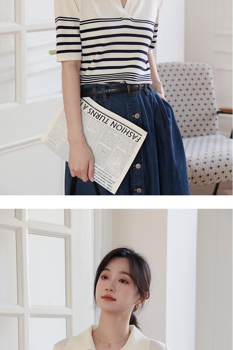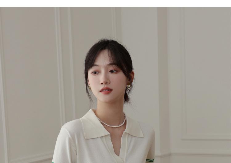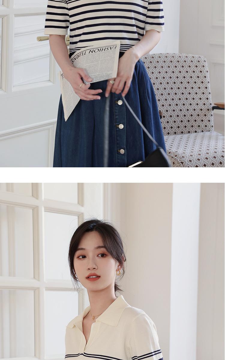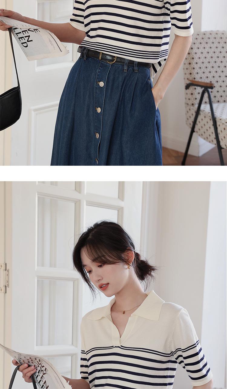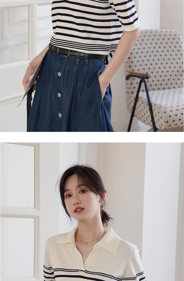 2024 Nueva Camiseta de Punto de Manga Corta de Alta Gama a Rayas con Cuello Polo para Mujer Diseño de Verano Nicho Top Holgado