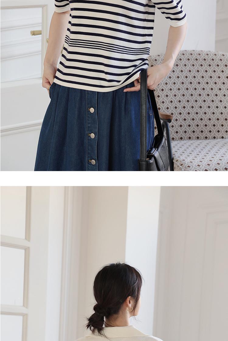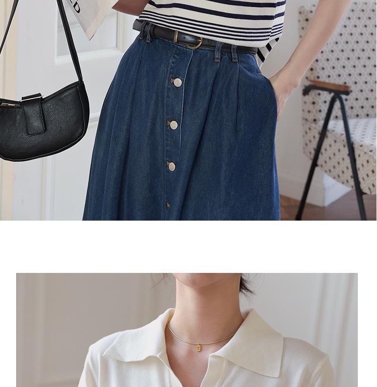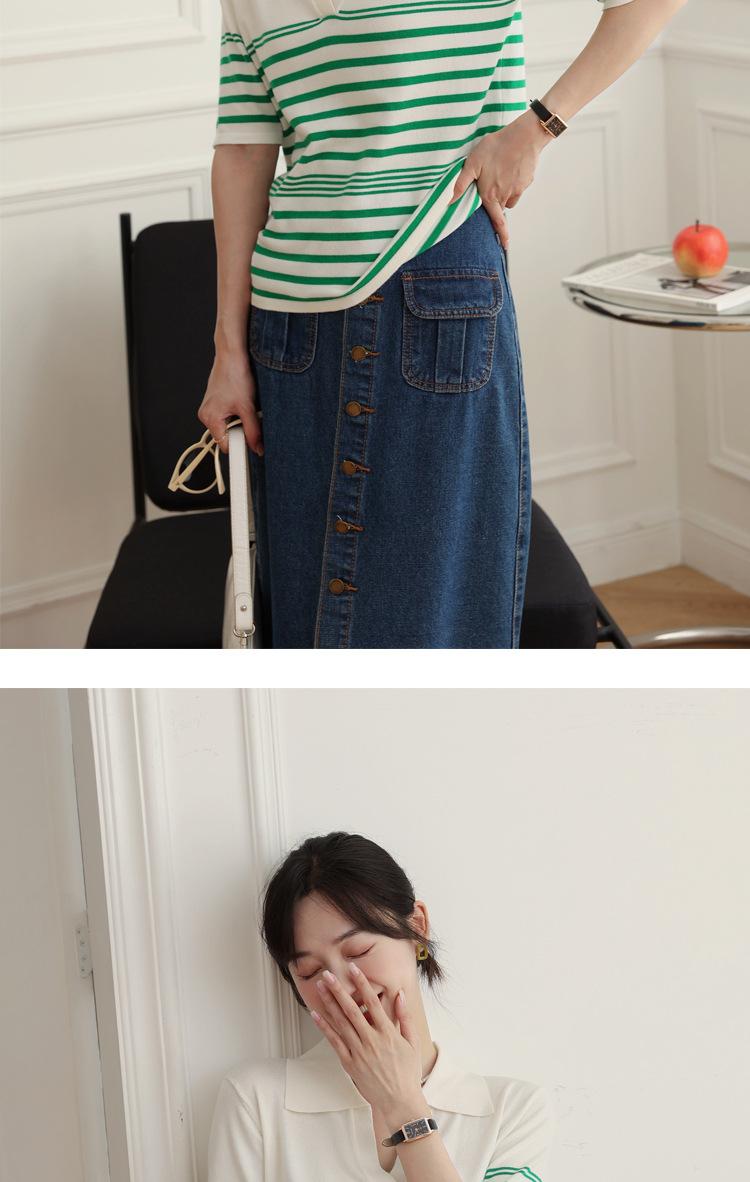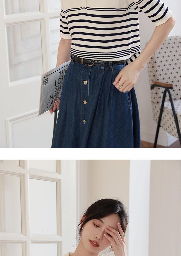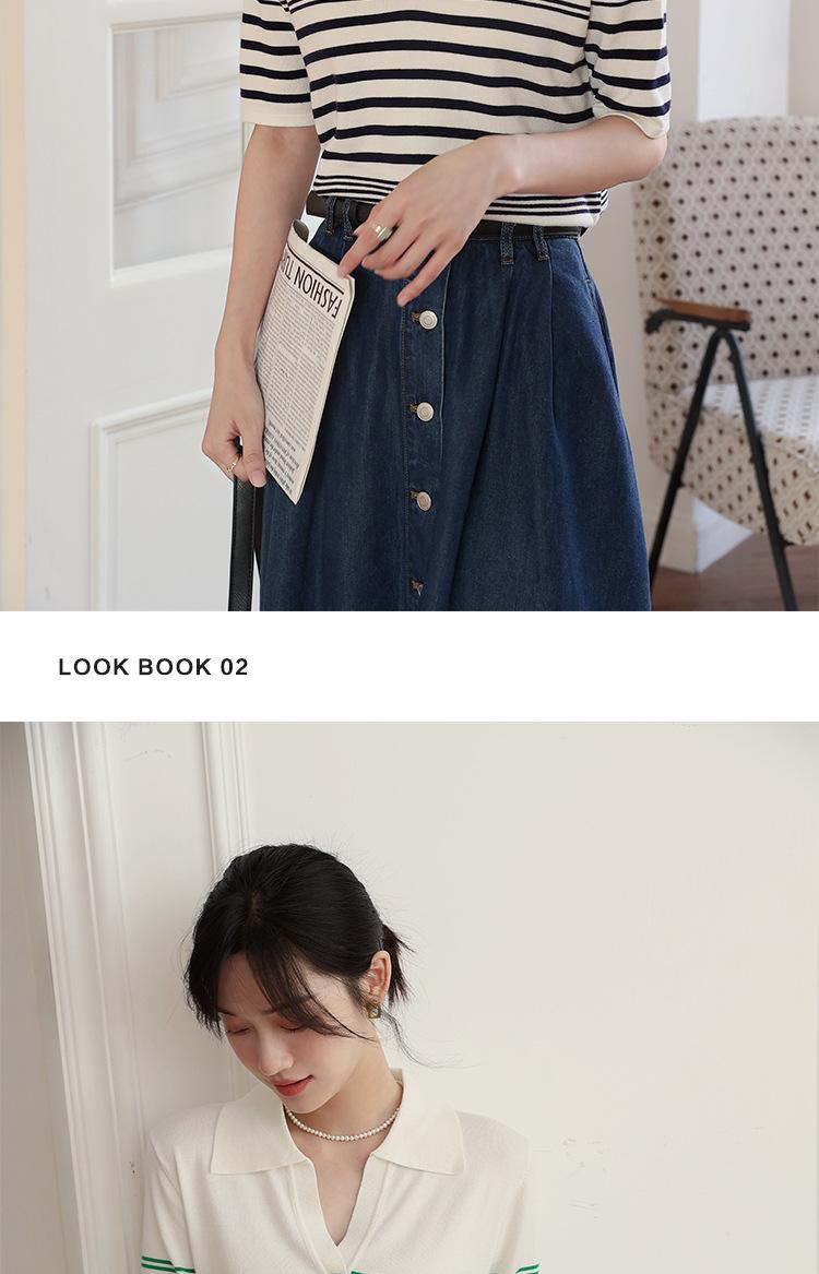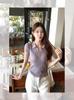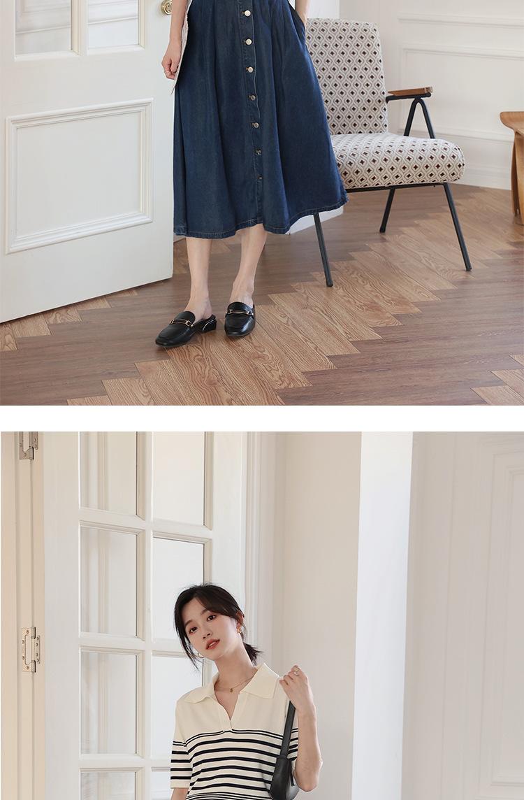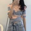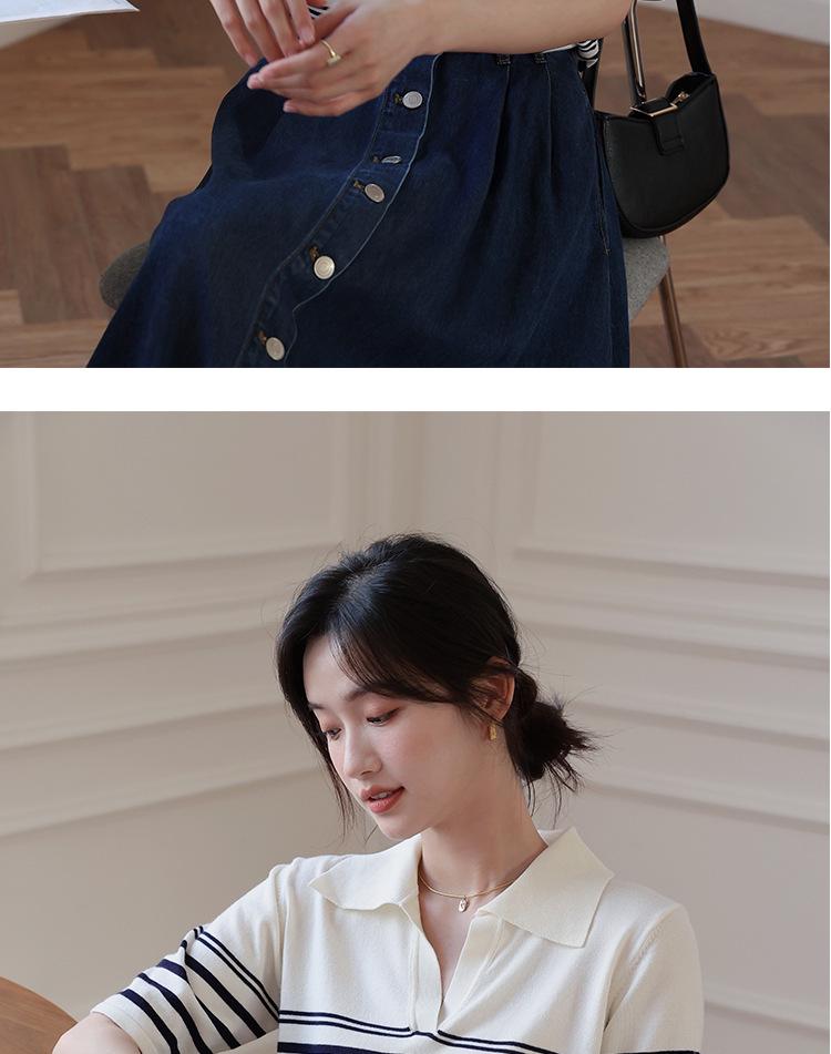 2024 Nueva Camiseta de Punto de Manga Corta de Alta Gama a Rayas con Cuello Polo para Mujer Diseño de Verano Nicho Top Holgado